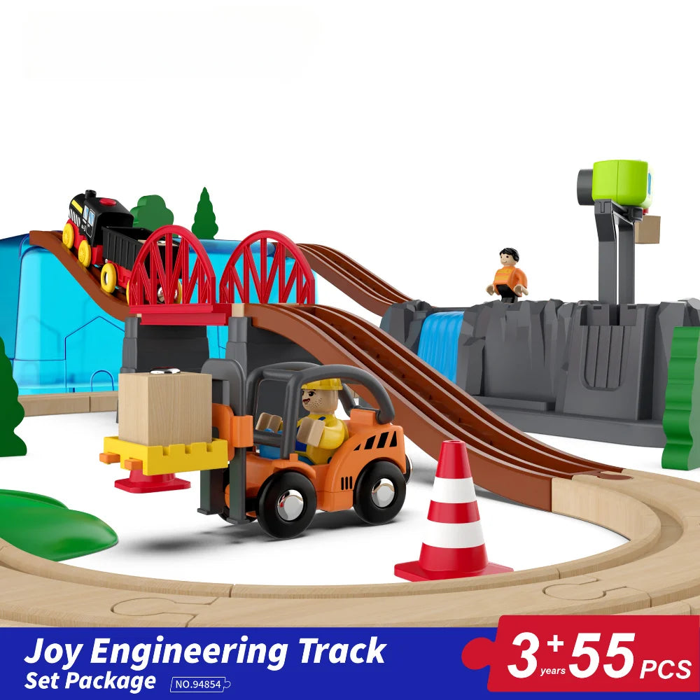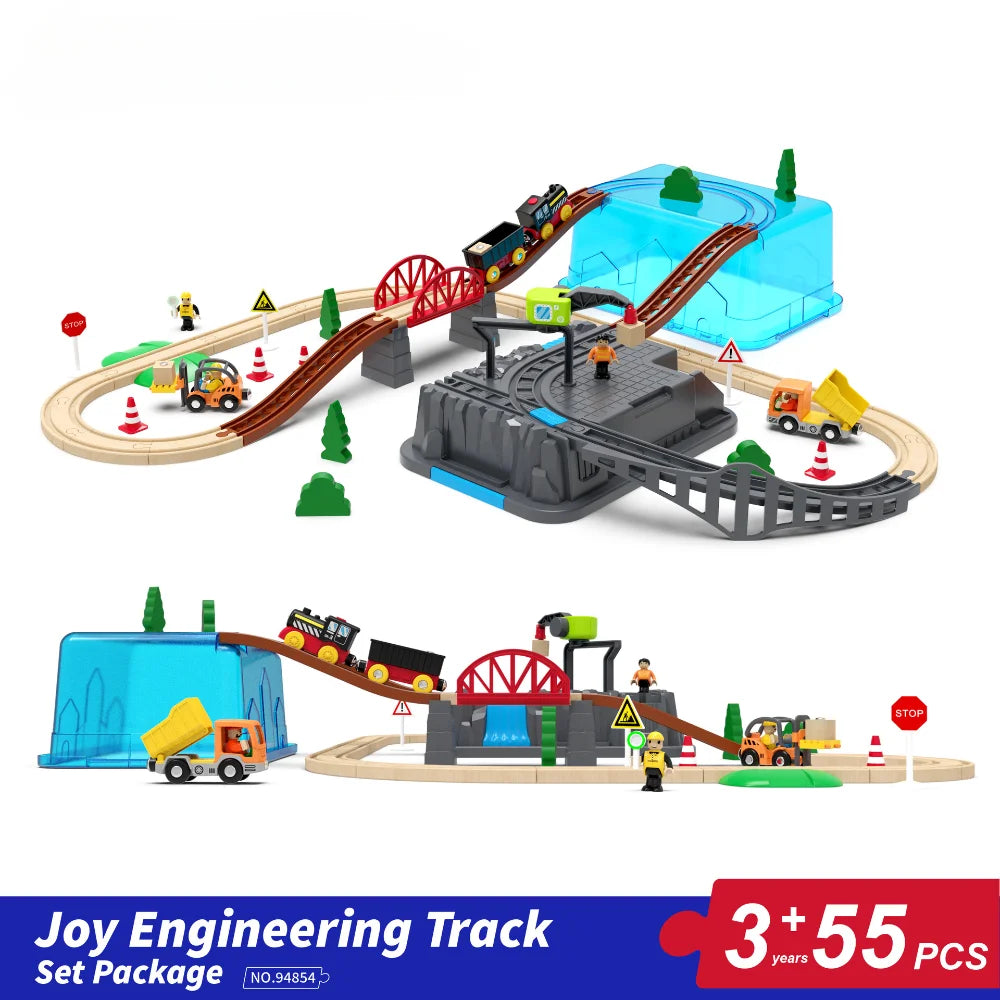 Set di binari ferroviari in legno Treno elettrico Modello magnetico per auto Slot pressofuso Adatto a tutte le marche Biro Pista in legno Assemblare Toy Boy Gift