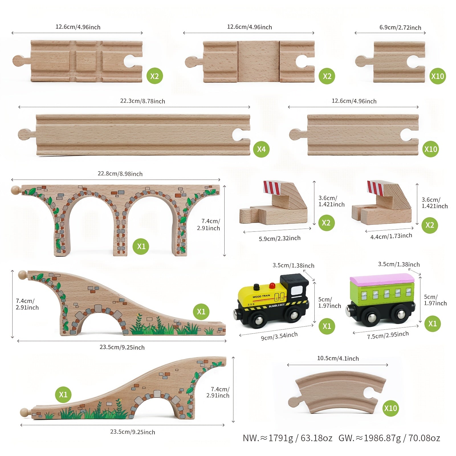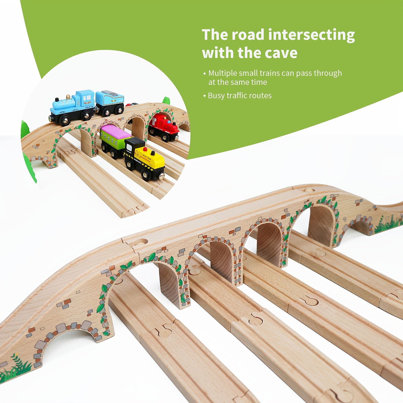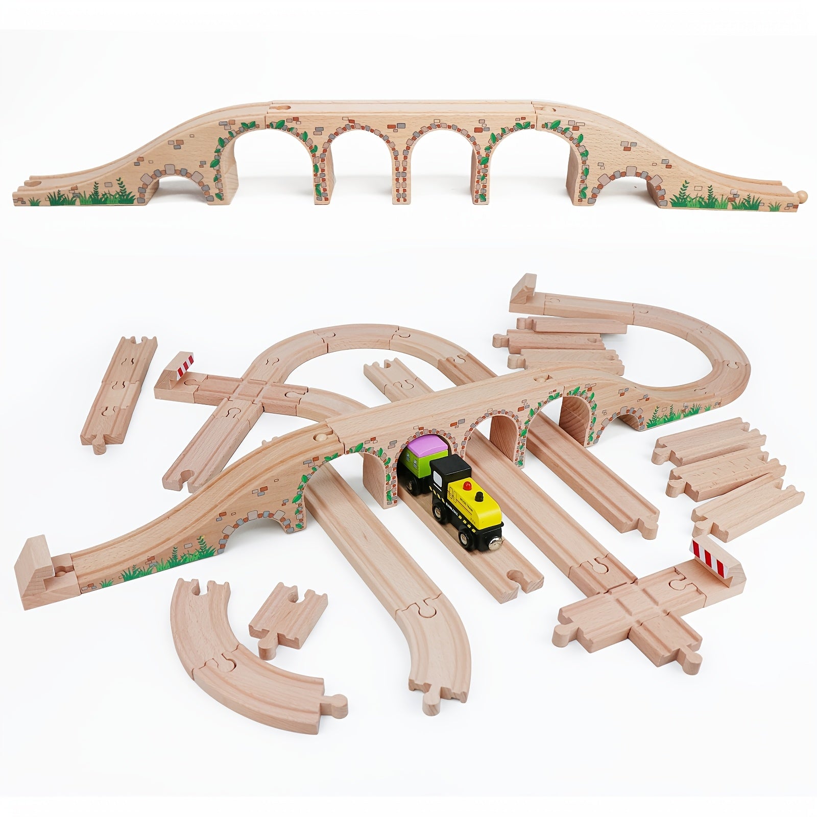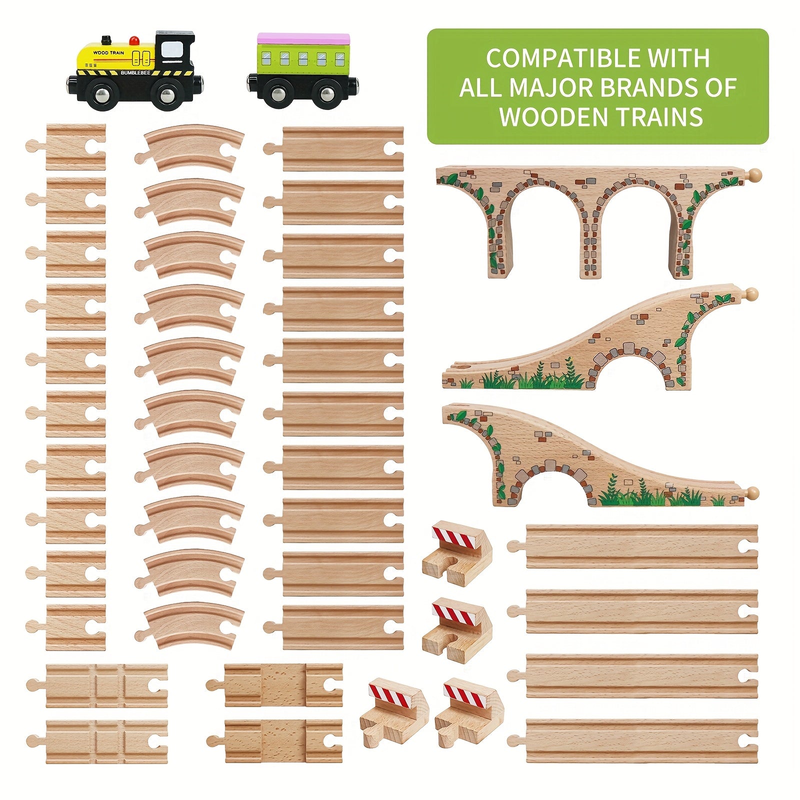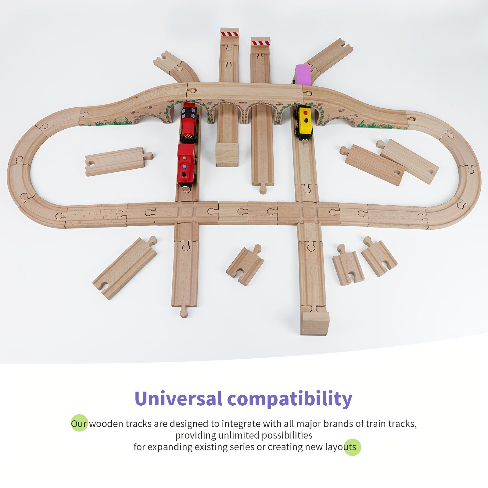 Set di Binari in Legno da 47 Pezzi con 2 Mini Treni - Compatibile con le Principali Marche, Set di Gioco Creativo per Bambini