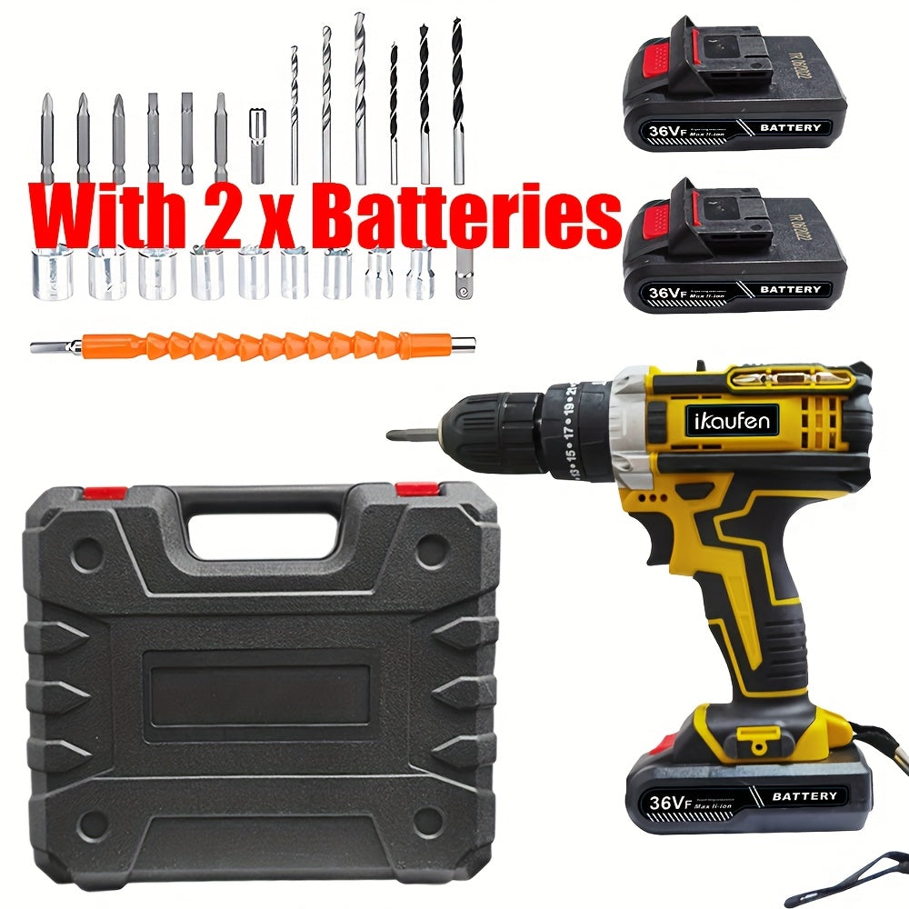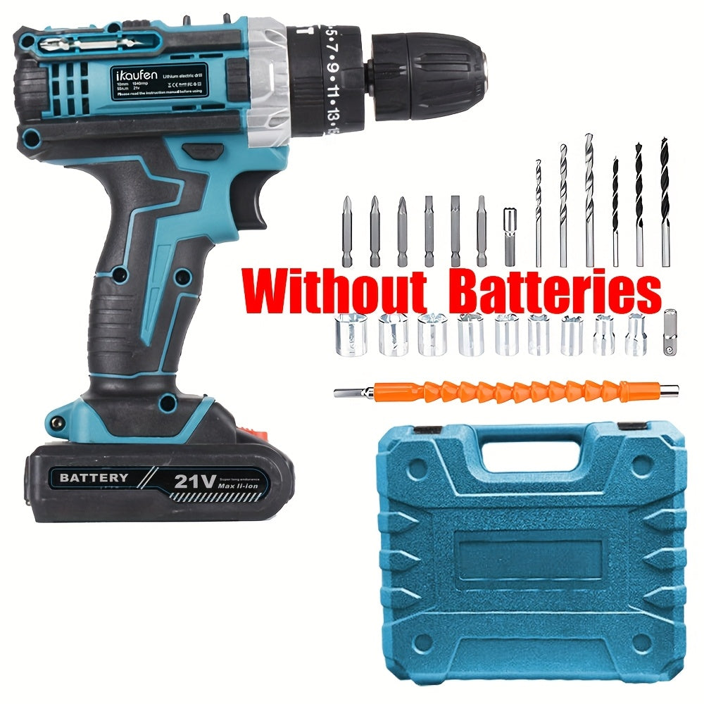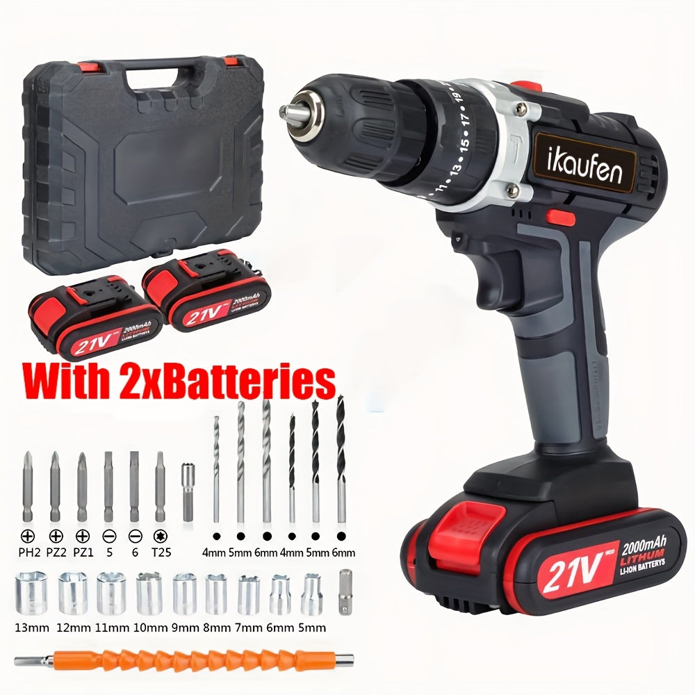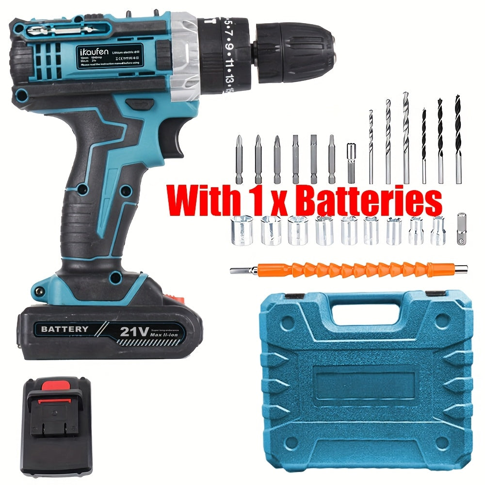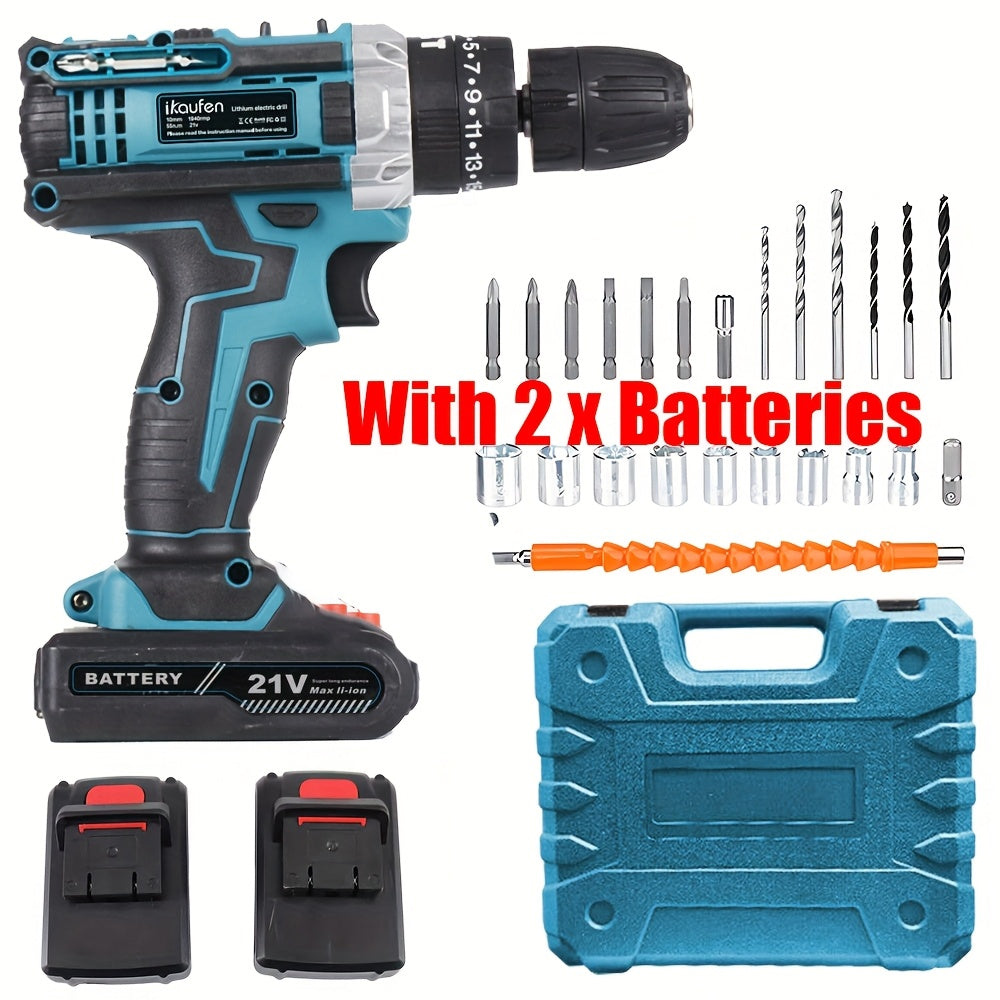 Set di Cacciaviti Senza Fili da 21V, Trapano Senza Fili con 2 Batterie da 1500mAh, Impatto Massimo di 38 N.m, 2 Velocità, Coppia su 25 + 1, Trapano Senza Fili con Accessori da 30 Pezzi Nero Blu Giallo