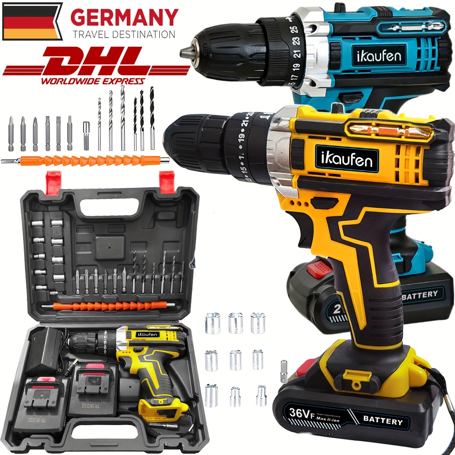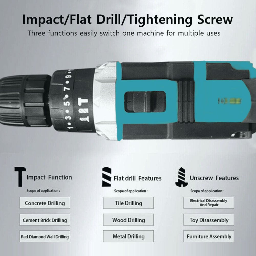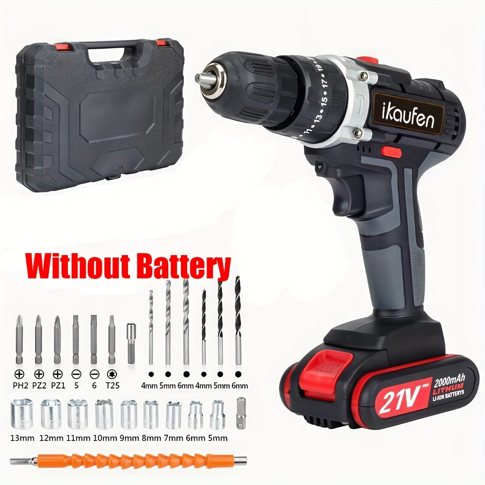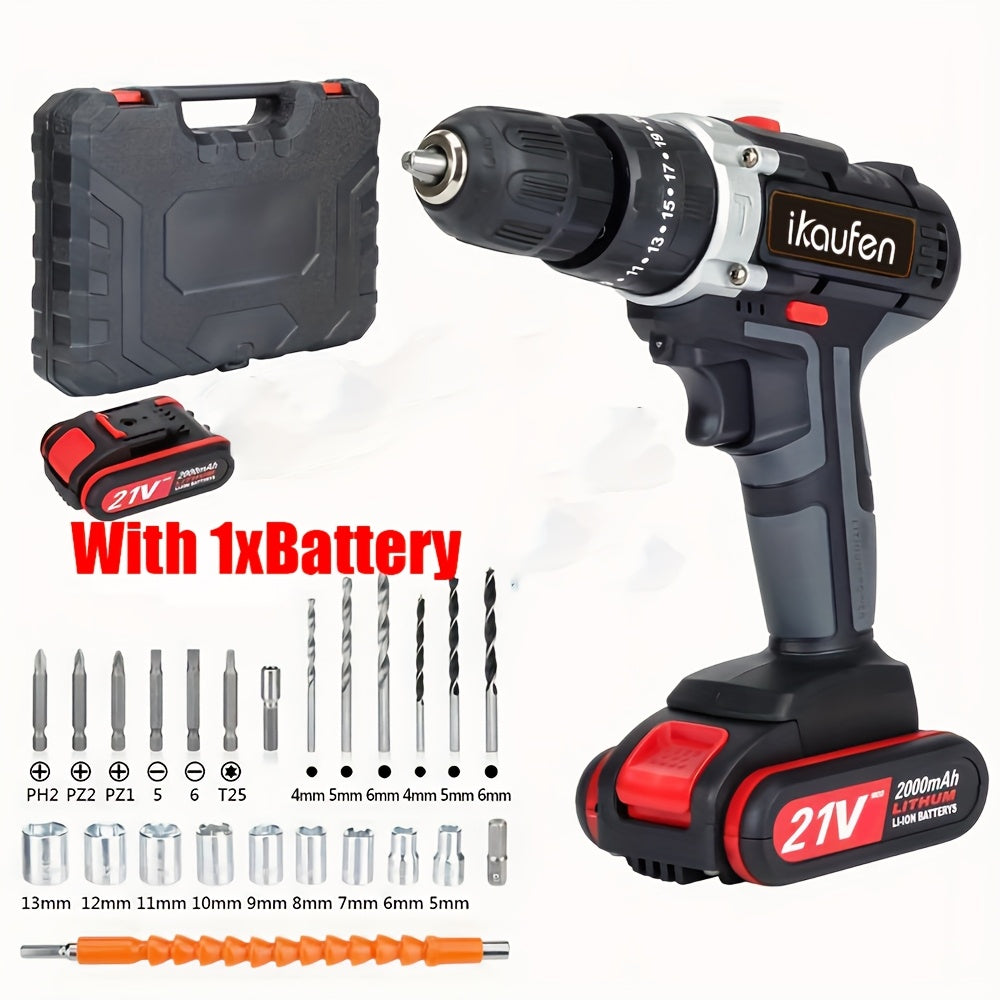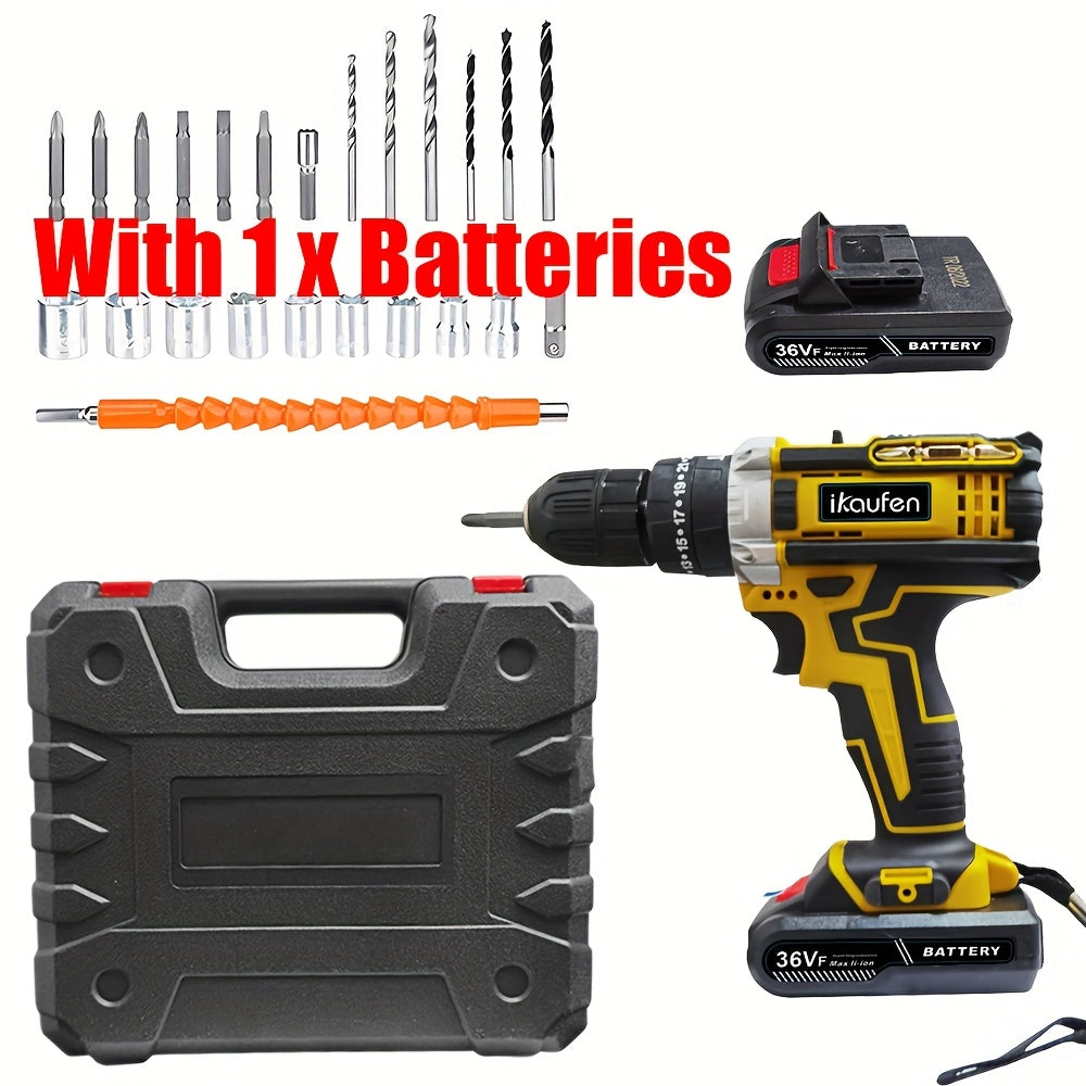 Set di Cacciaviti Senza Fili da 21V, Trapano Senza Fili con 2 Batterie da 1500mAh, Impatto Massimo di 38 N.m, 2 Velocità, Coppia su 25 + 1, Trapano Senza Fili con Accessori da 30 Pezzi Nero Blu Giallo