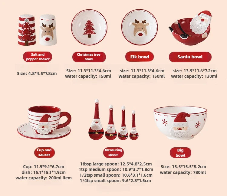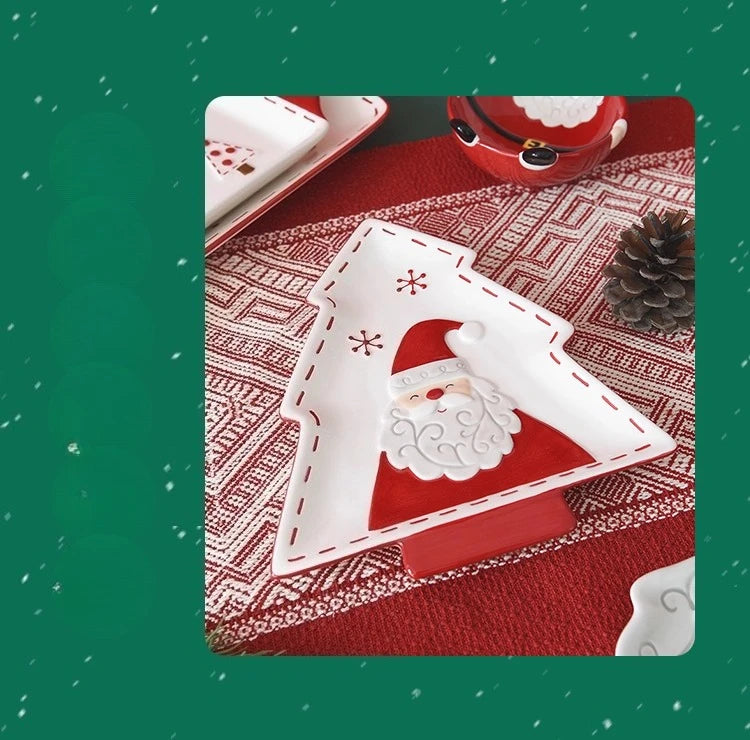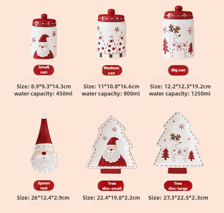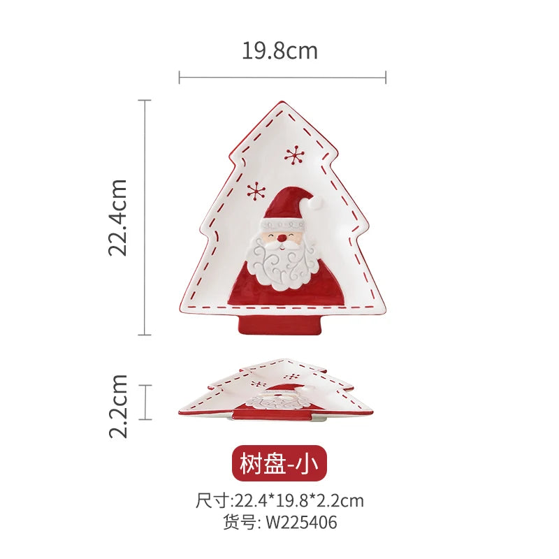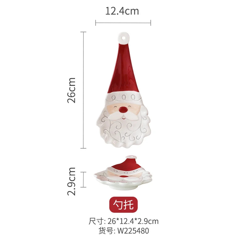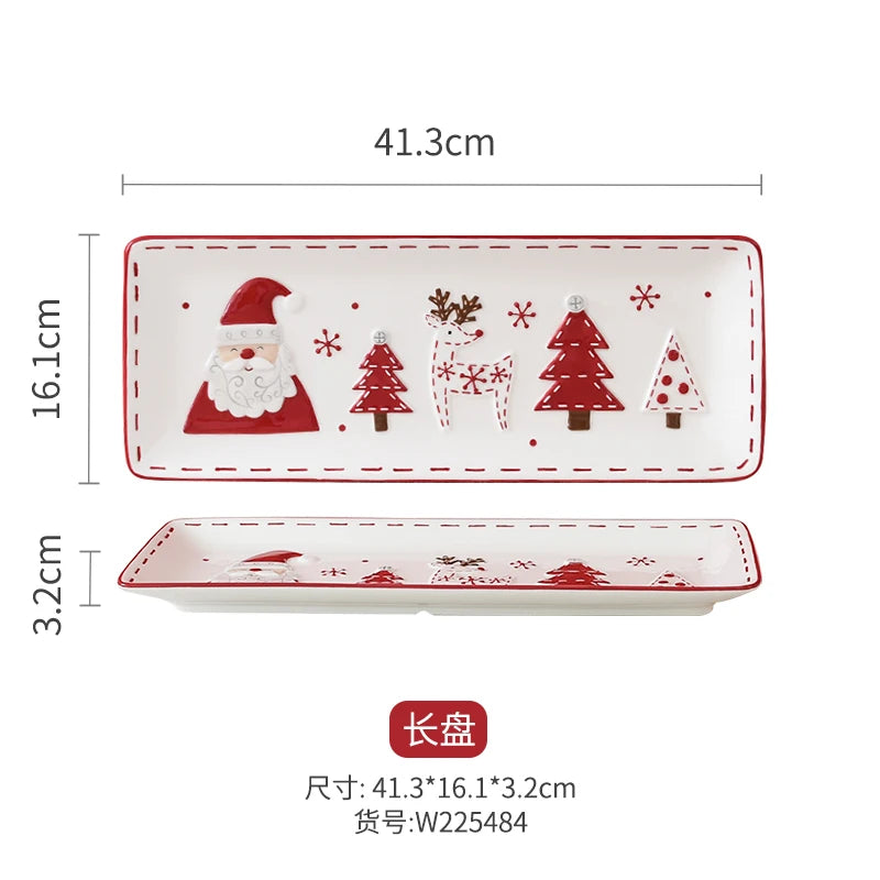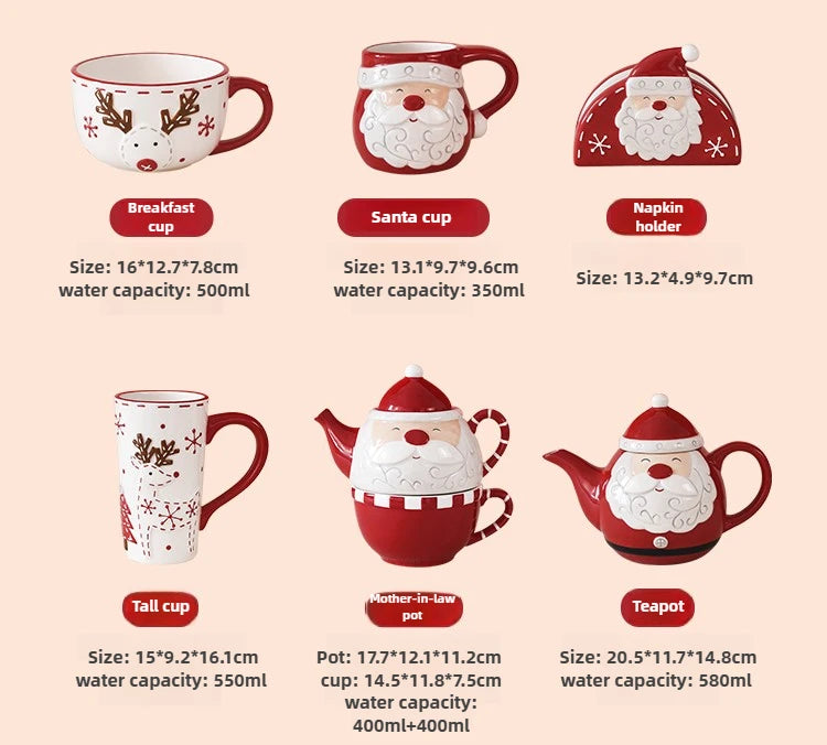 Set di piatti di Babbo Natale dipinti a mano nordici Set di stoviglie per tazze d'acqua con teiera sigillata in ceramica a rilievo rosso
