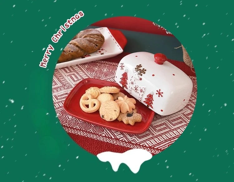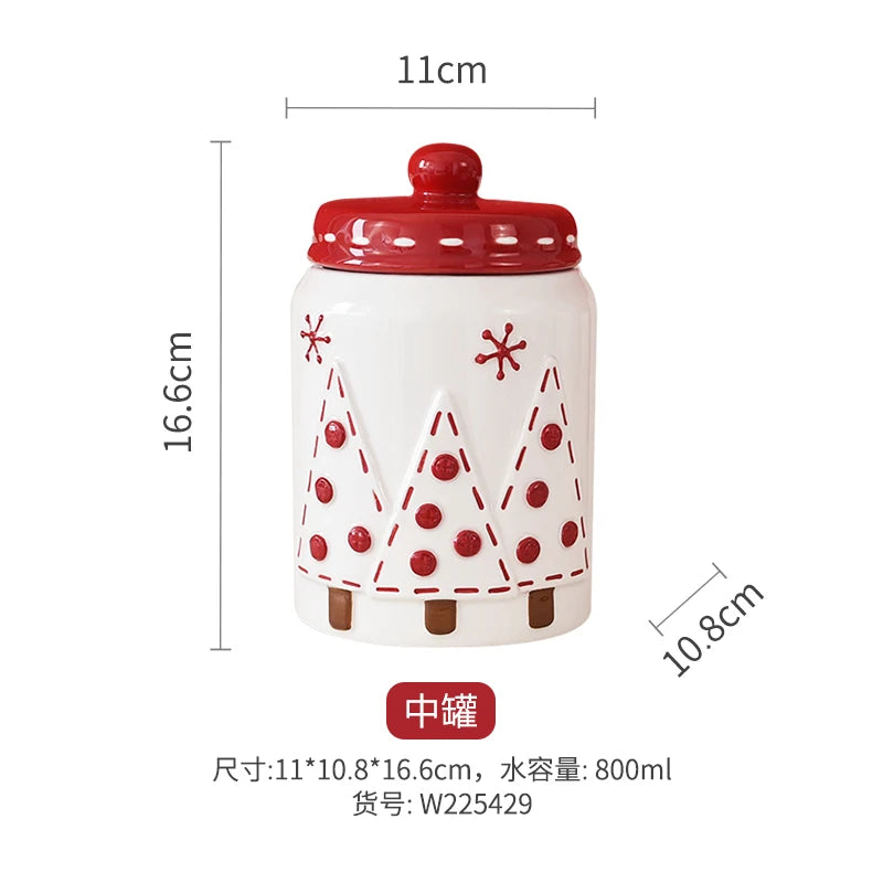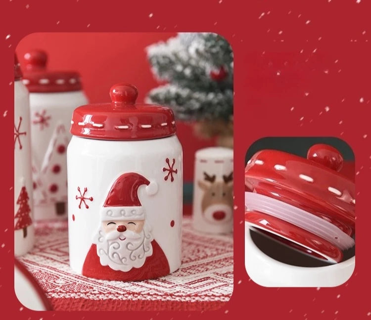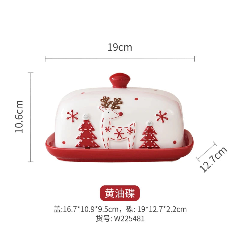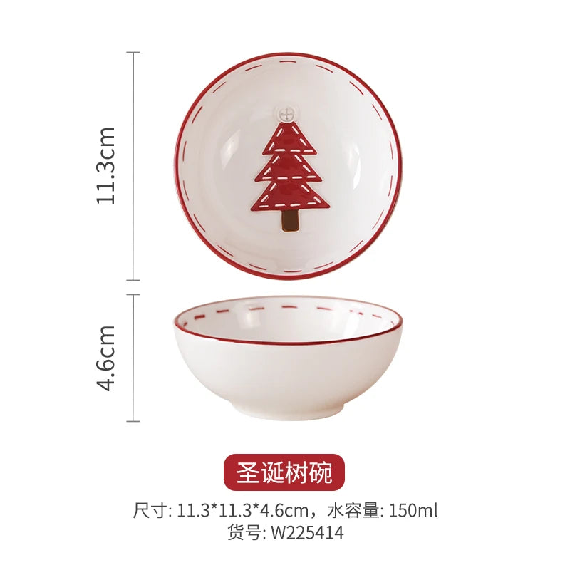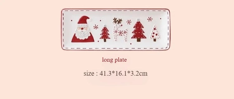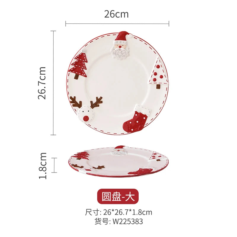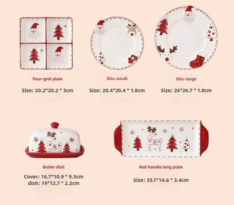 Set di piatti di Babbo Natale dipinti a mano nordici Set di stoviglie per tazze d'acqua con teiera sigillata in ceramica a rilievo rosso