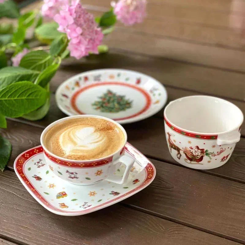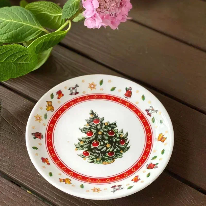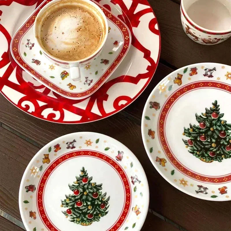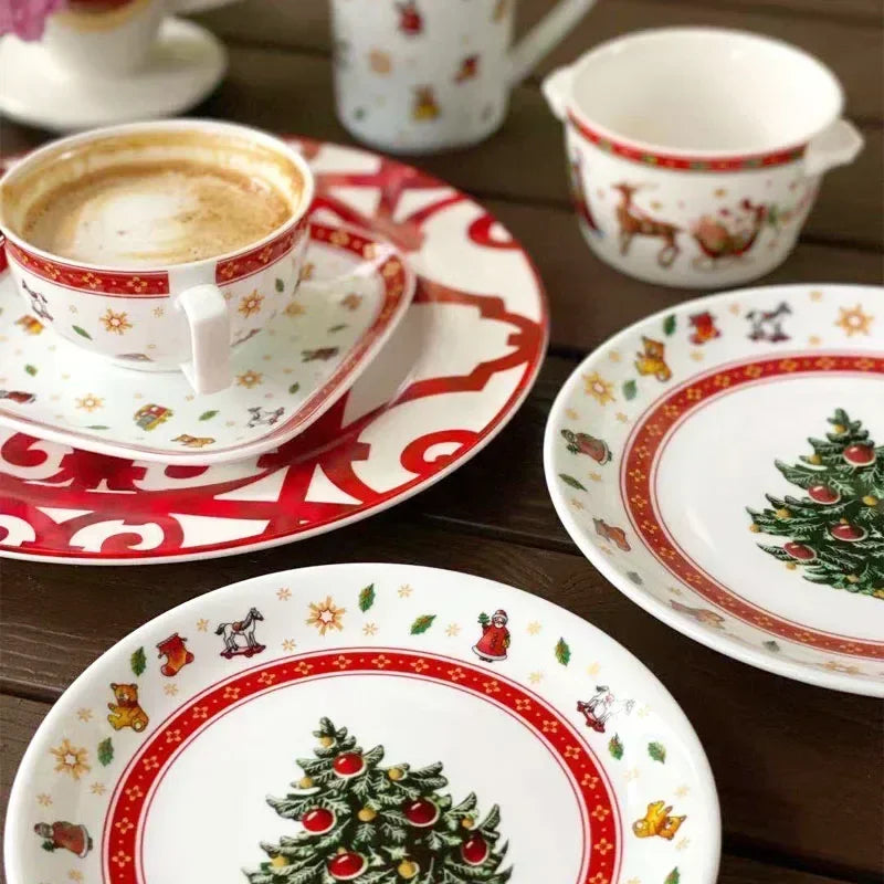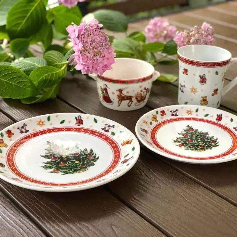 Set di piatti natalizi in ceramica ad alta temperatura, albero di Natale, piatto per cibo occidentale, bella tazza da caffè, ciotola, set natalizio di varietà ricca