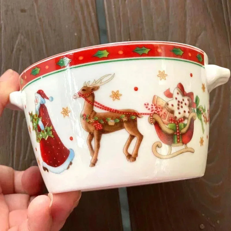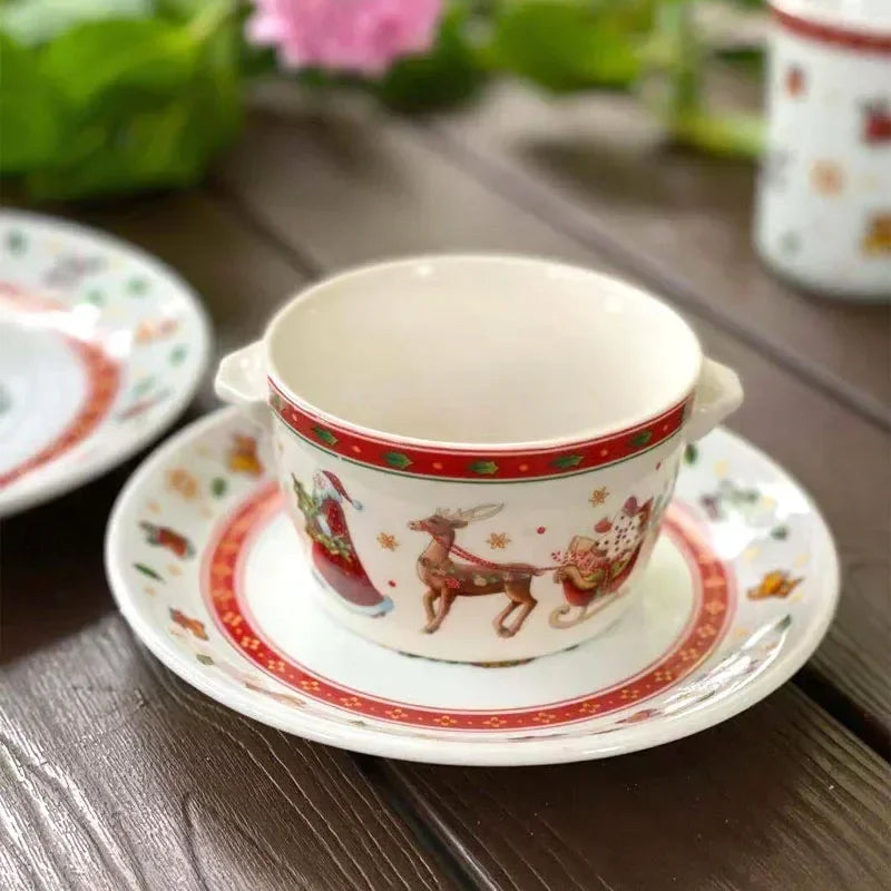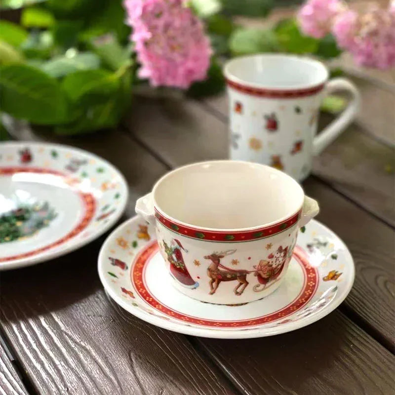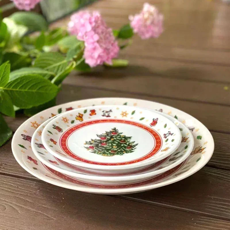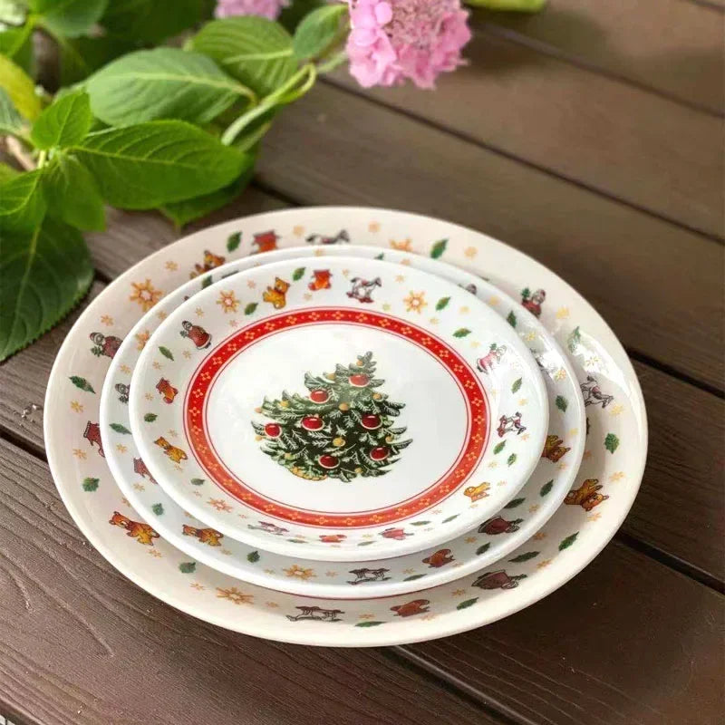 Set di piatti natalizi in ceramica ad alta temperatura, albero di Natale, piatto per cibo occidentale, bella tazza da caffè, ciotola, set natalizio di varietà ricca