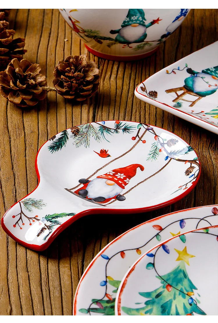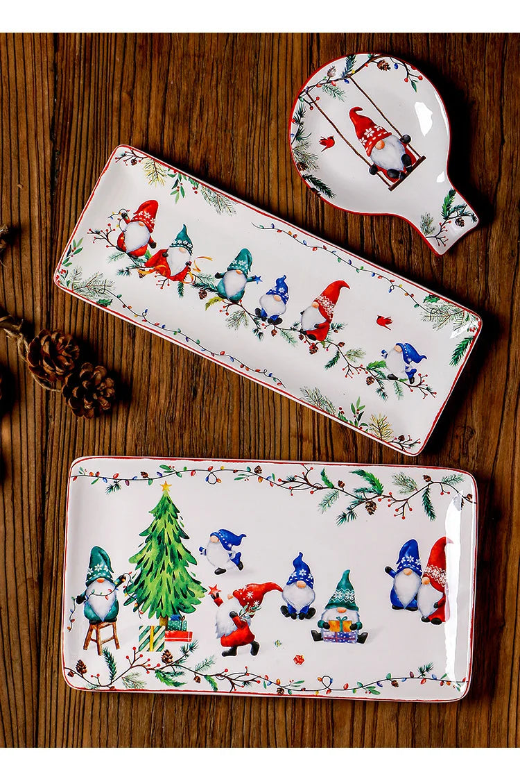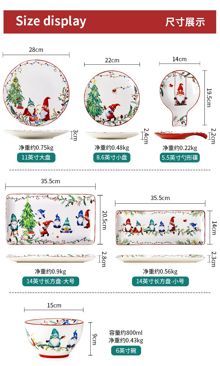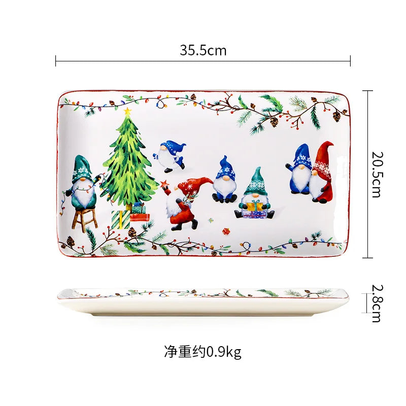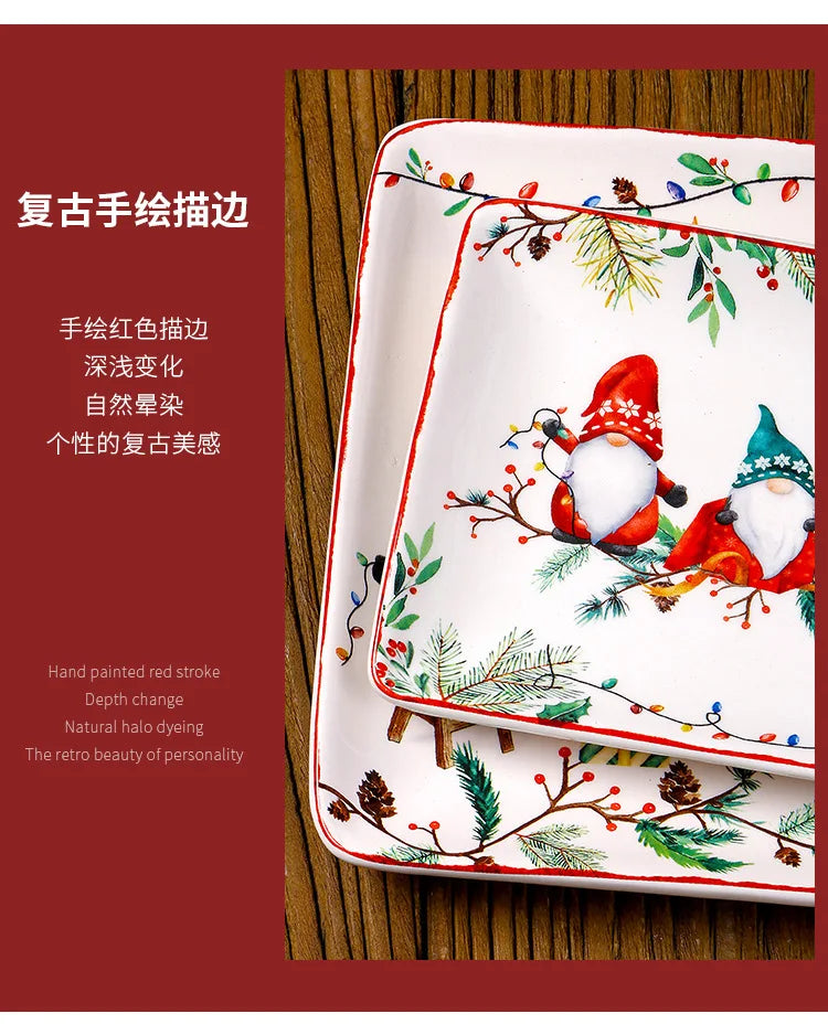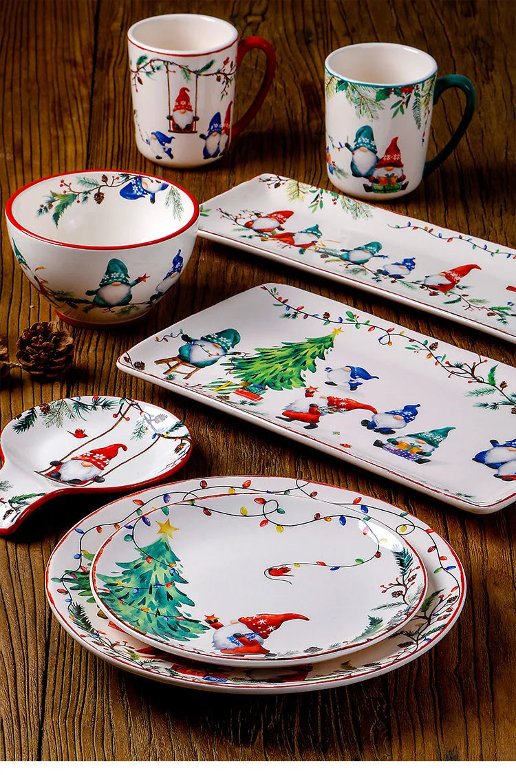 Set di stoviglie in ceramica serie Goblin Piatto da pranzo grande Vassoio rettangolare Stoviglie natalizie Piatti da bistecca Piatti da dessert Ciotola Tazza Tazza