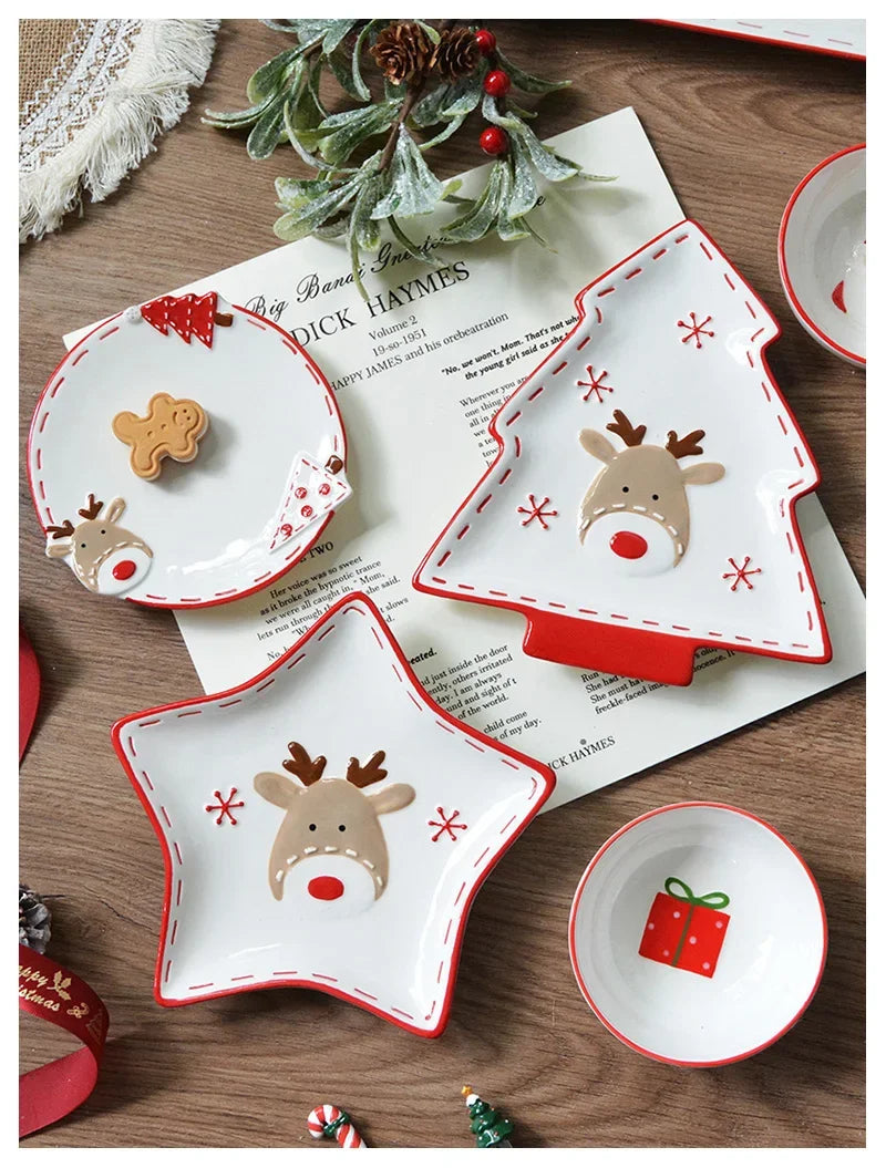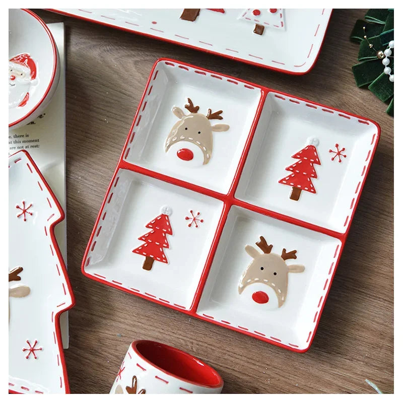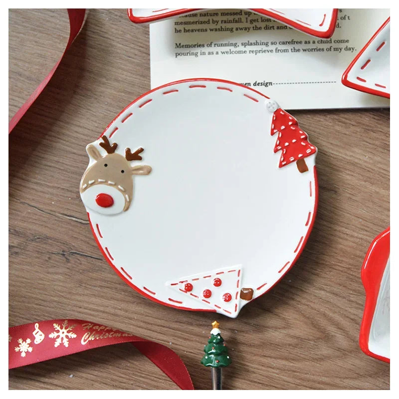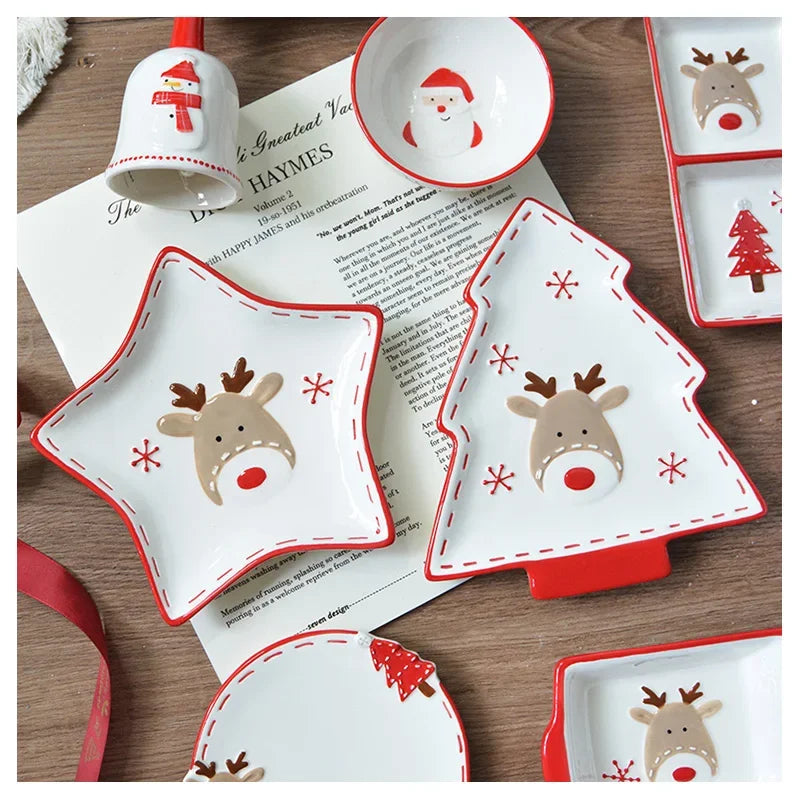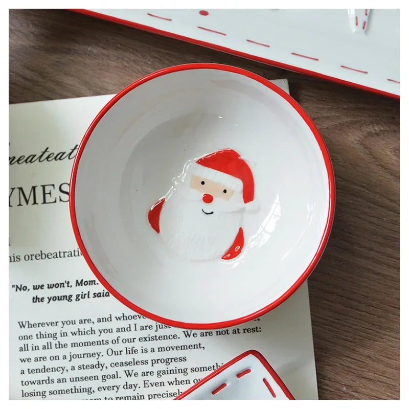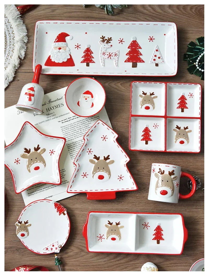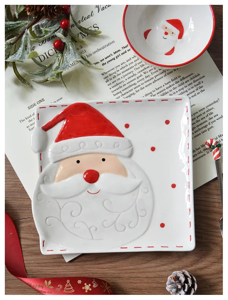 Set di stoviglie natalizie in ceramica dipinta a mano Simpatico piatto da bistecca natalizio Piatto piatto sottosmalto in rilievo