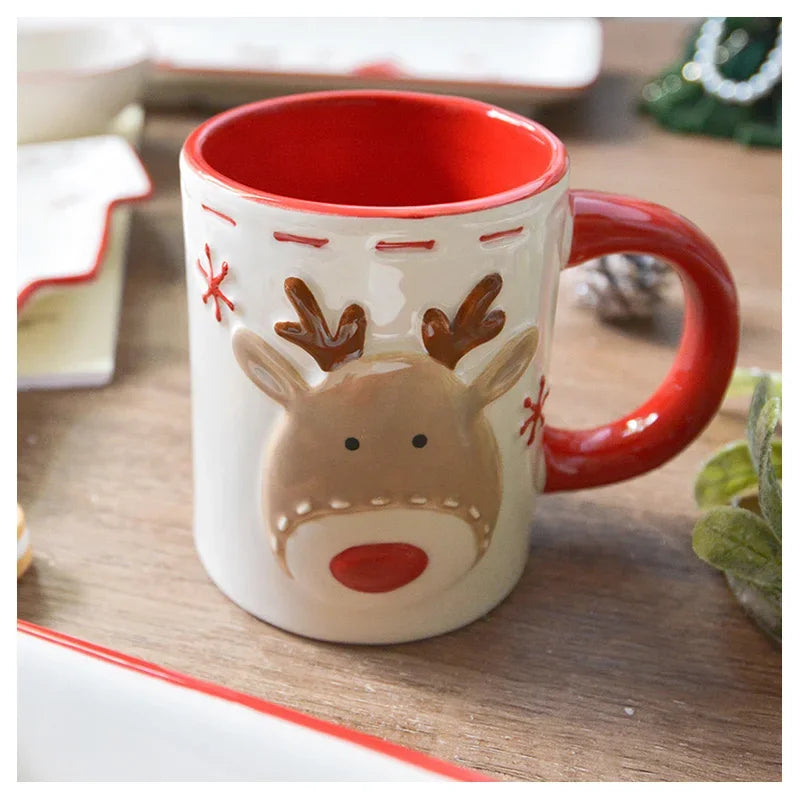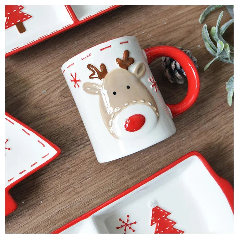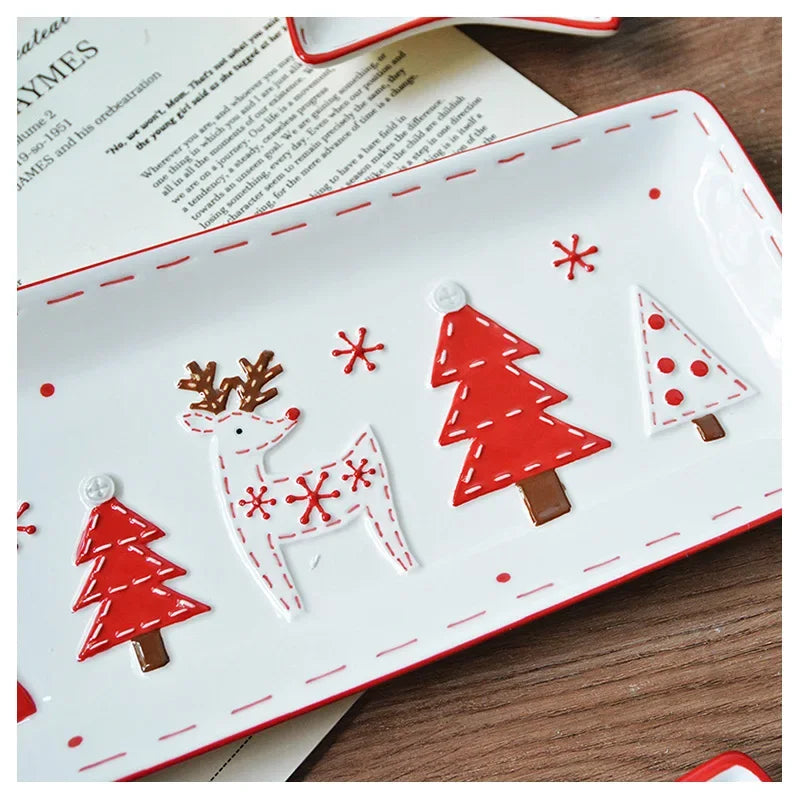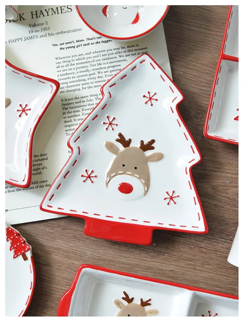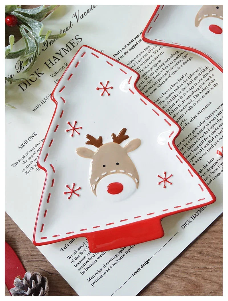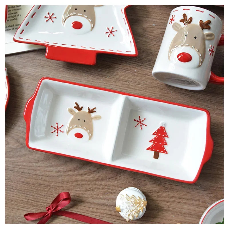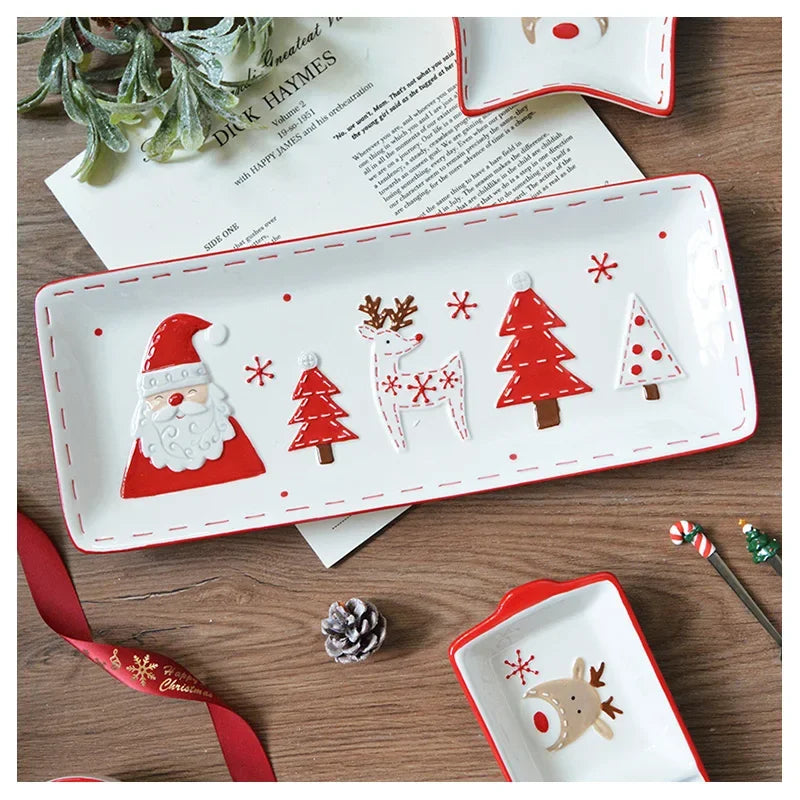 Set di stoviglie natalizie in ceramica dipinta a mano Simpatico piatto da bistecca natalizio Piatto piatto sottosmalto in rilievo
