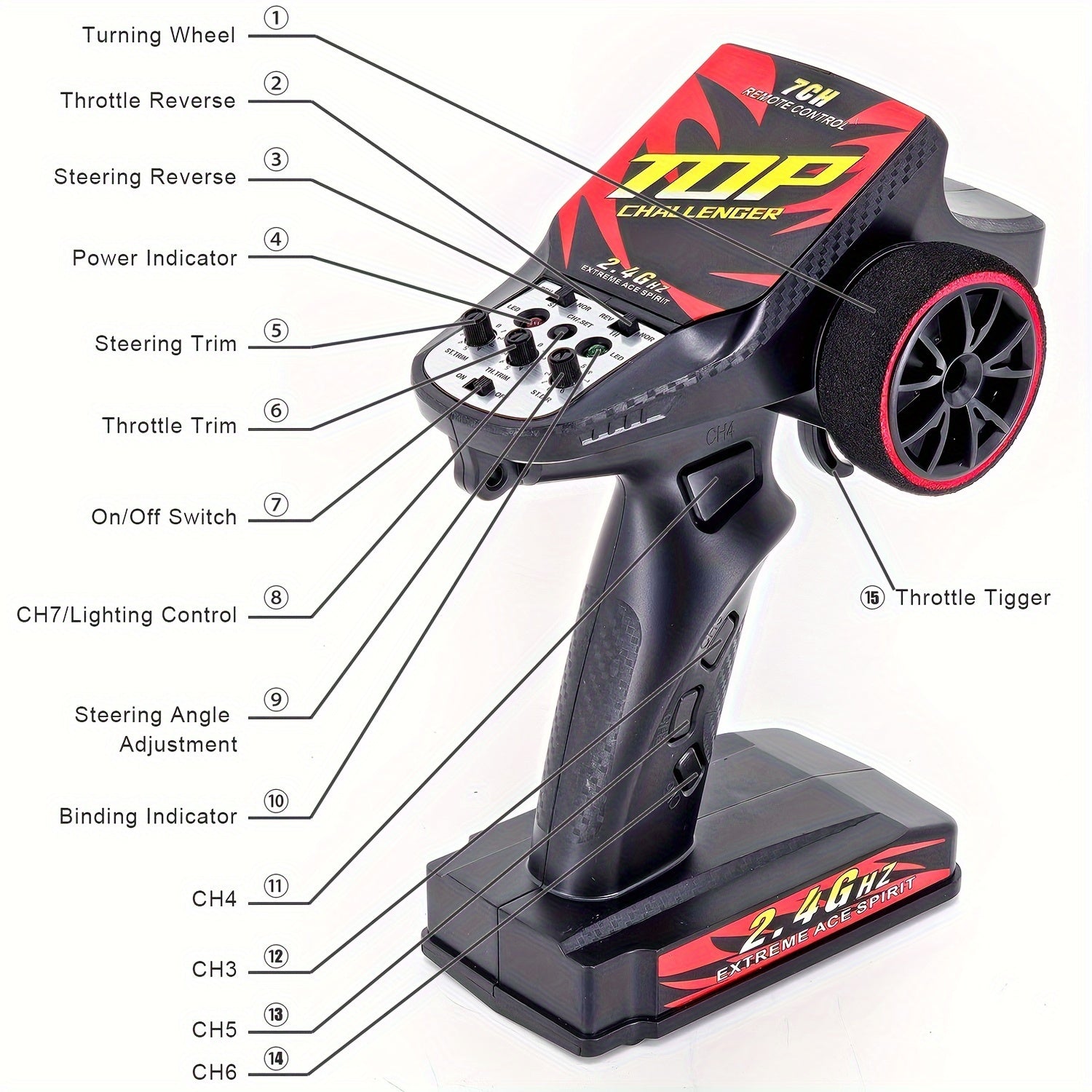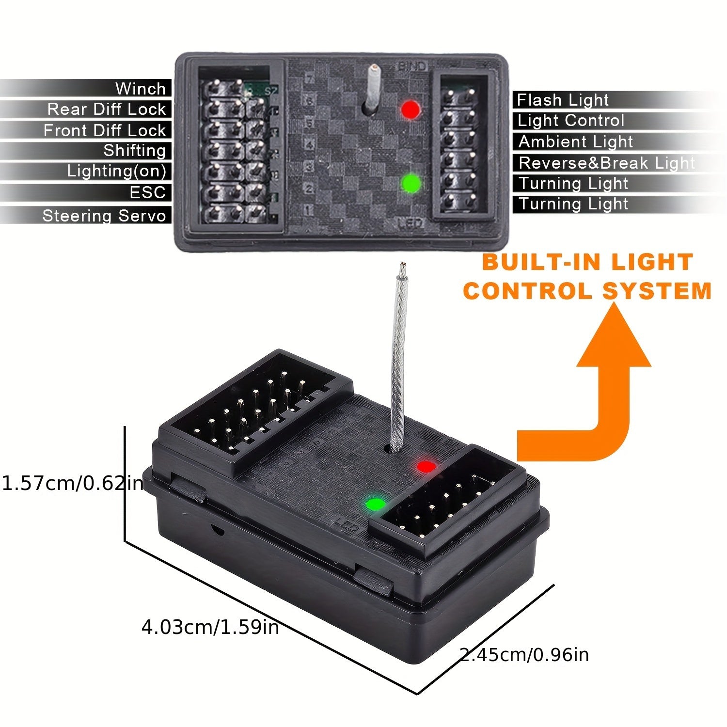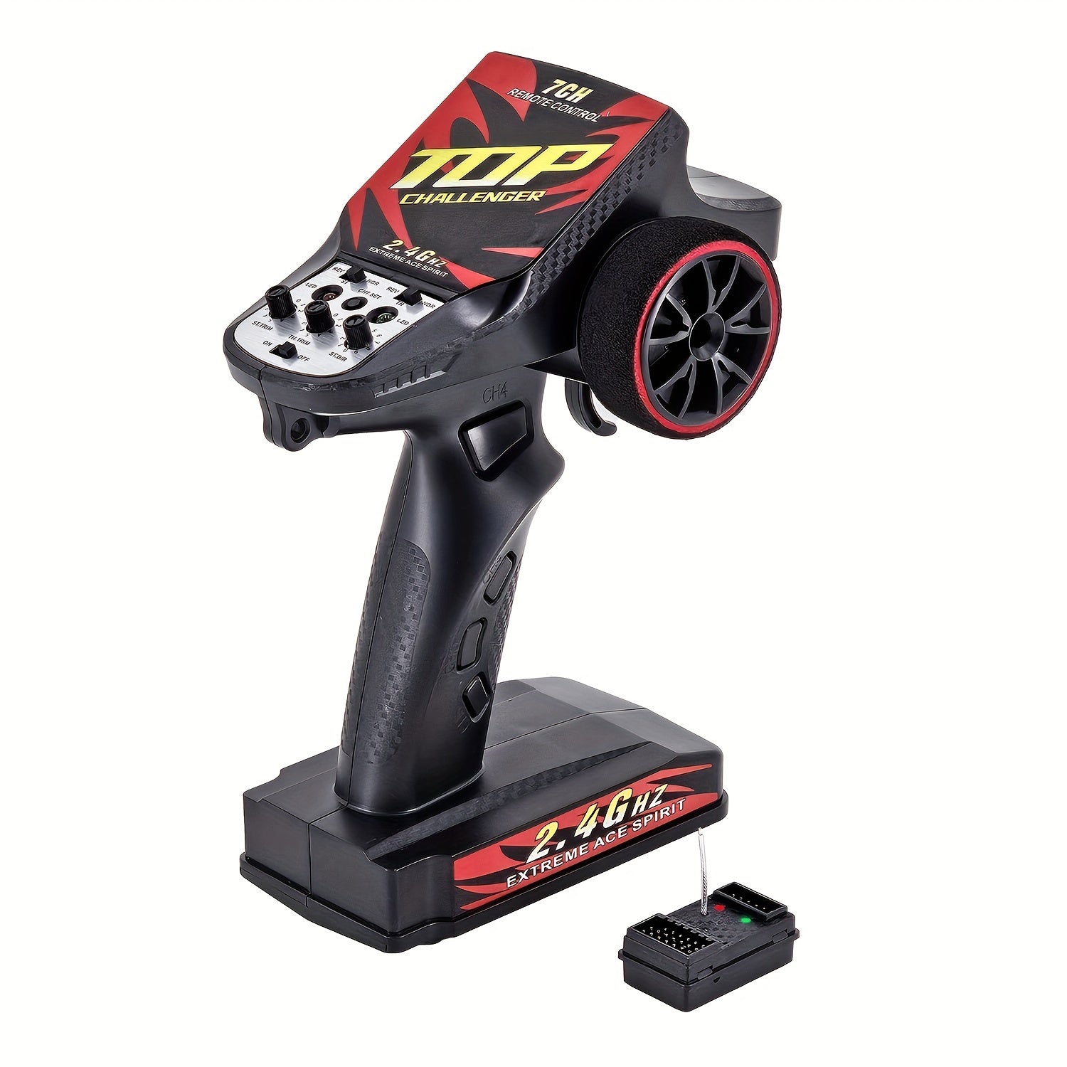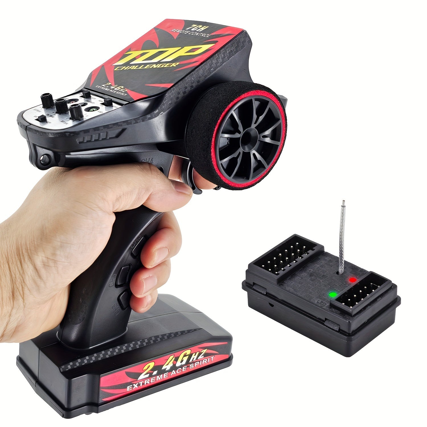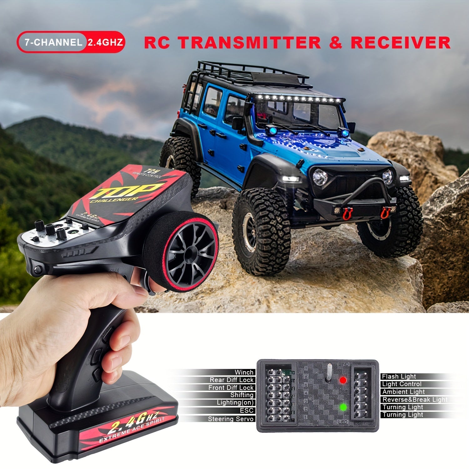 Set di trasmettitore e ricevitore RC a 7 canali 2.4GHz con funzione di inversione, sistema di controllo della luce, raggio di 120m, per RC Crawler, auto brushless ad alta velocità, barca, carro armato - alimentato a batteria, materiale ABS, wireless 2.4gh