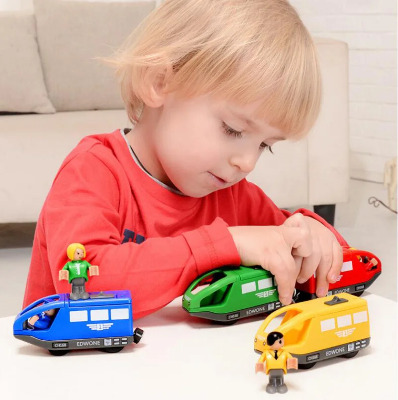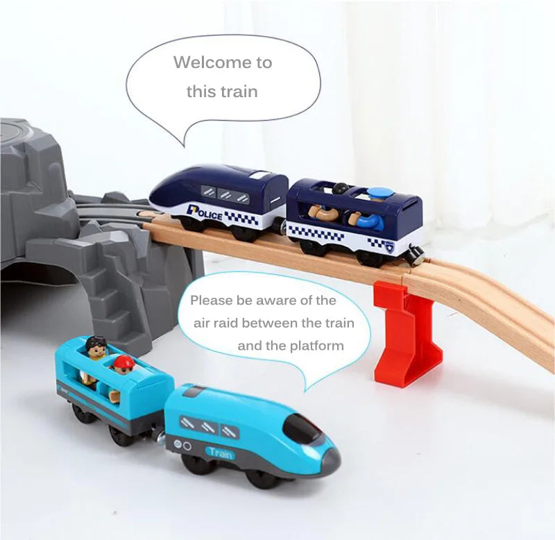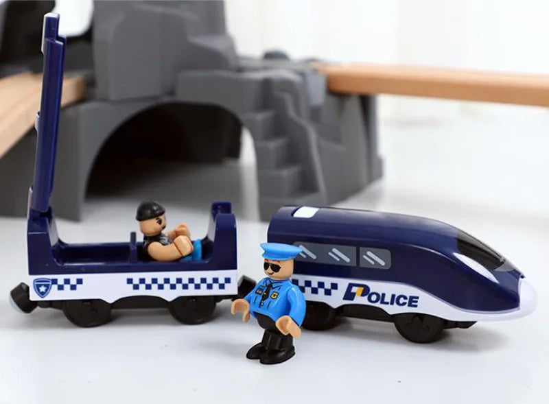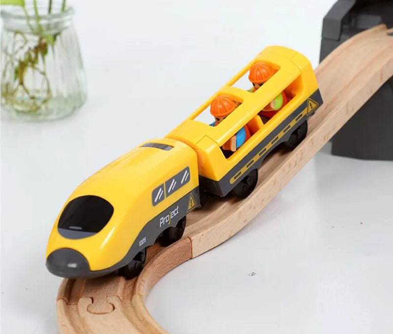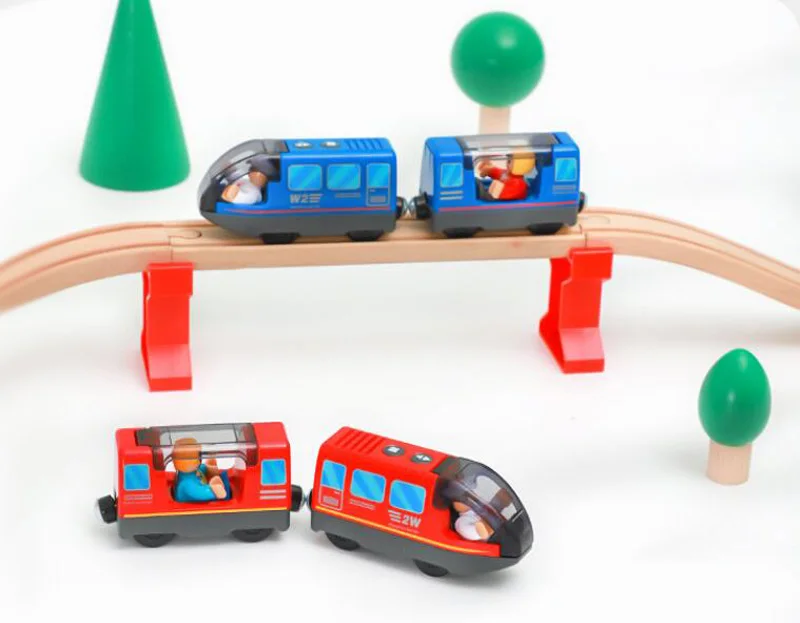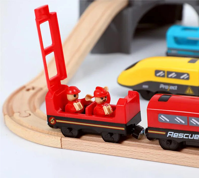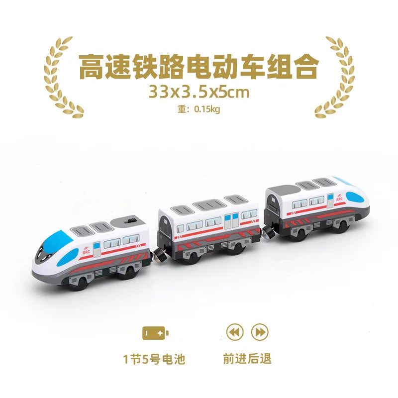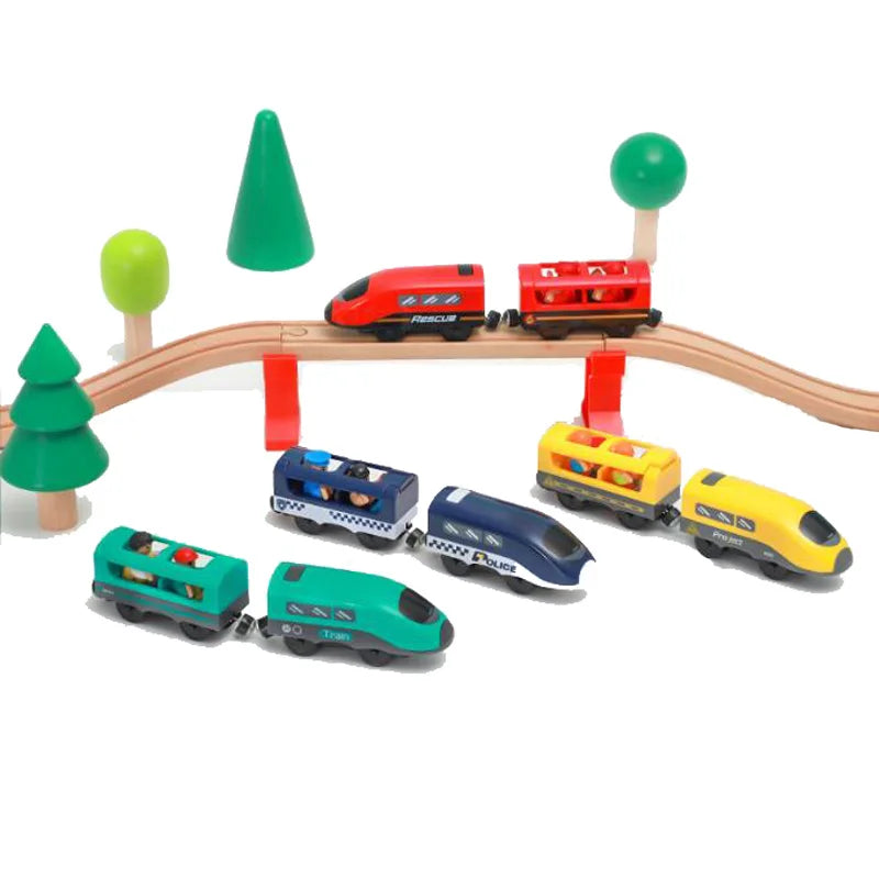 Set di treni elettrici Giocattoli Modello di treno Auto elettrica adatta per ferrovia in legno Pista del treno in legno Regalo di Natale per bambini
