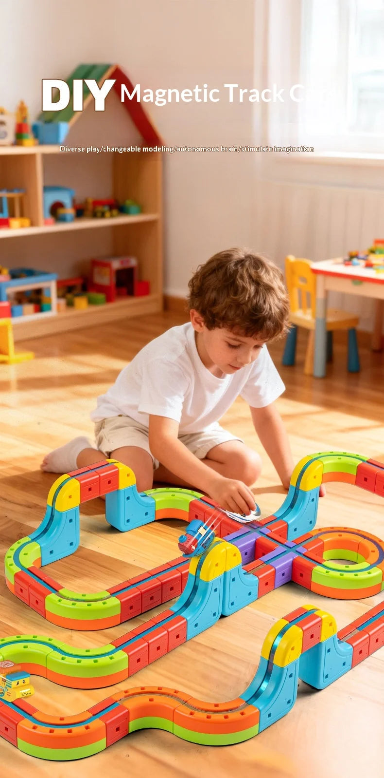 Set di vagoni con pista magnetica elettrica - Giocattolo puzzle per bambini versatile Blocchi magnetici antigravità Veicolo da gioco Regalo di compleanno