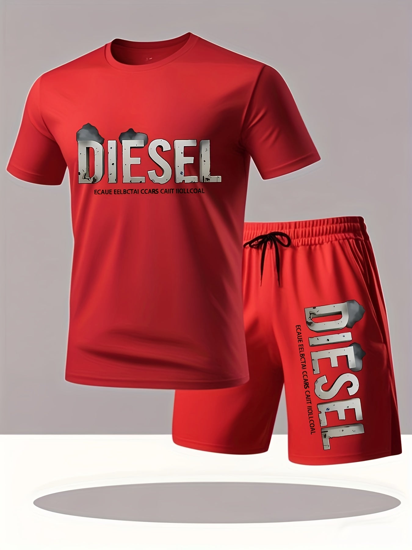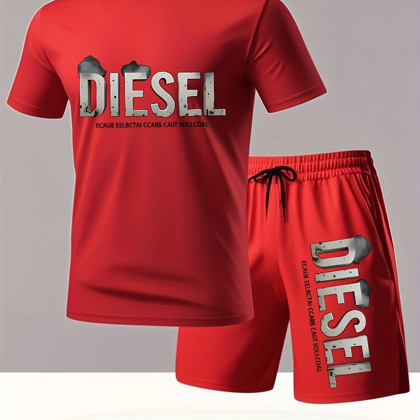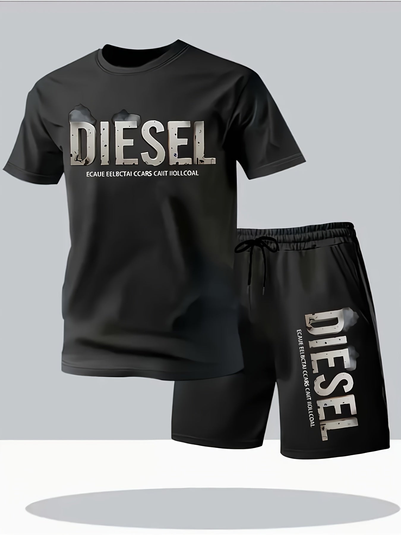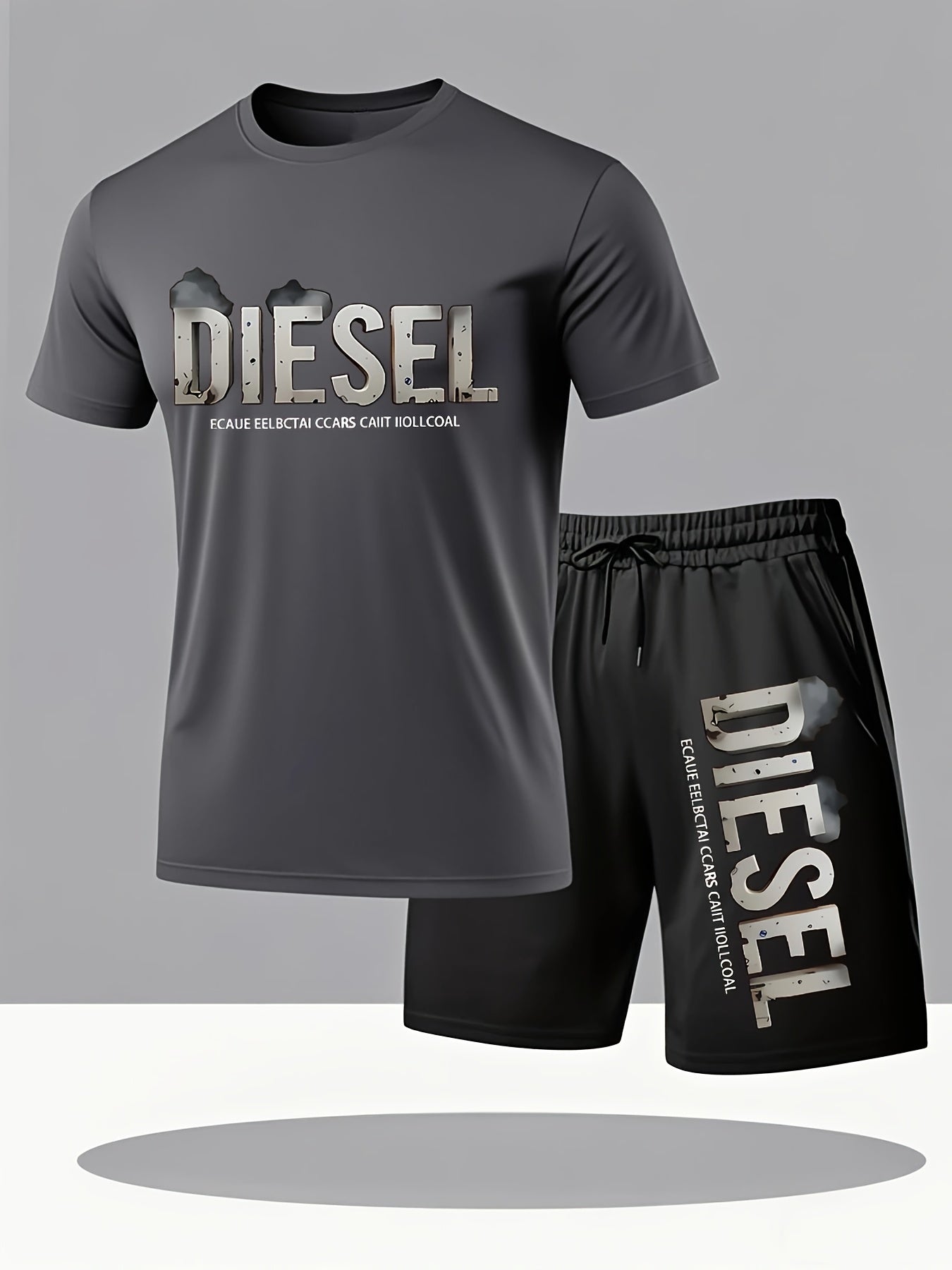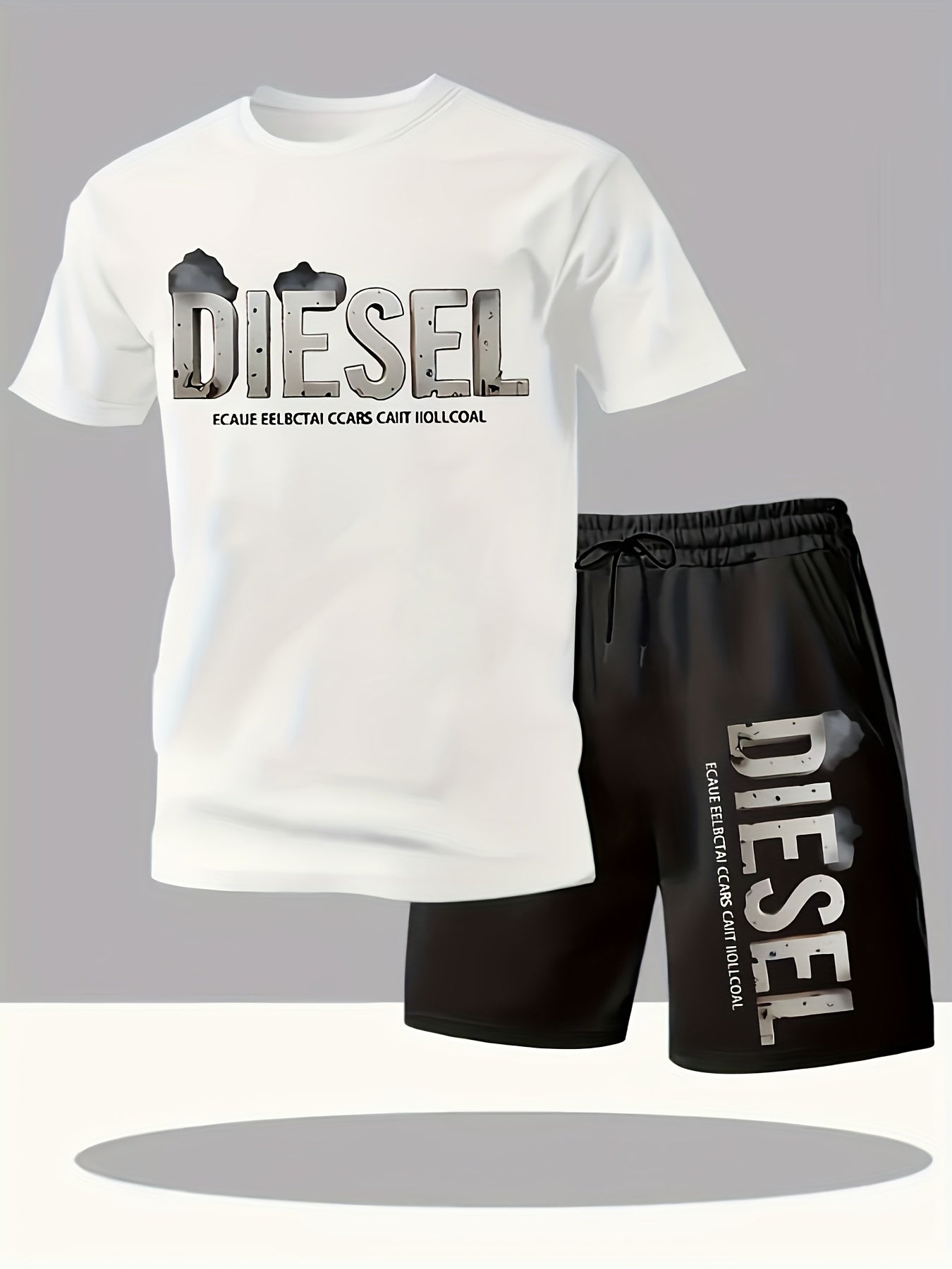 Set estivo da uomo con maglietta e pantaloncini sportivi casual, comodi e traspiranti, adatti per jogging e corsa all'aperto, design con stampa di lettere Diesel - Set da 2 pezzi