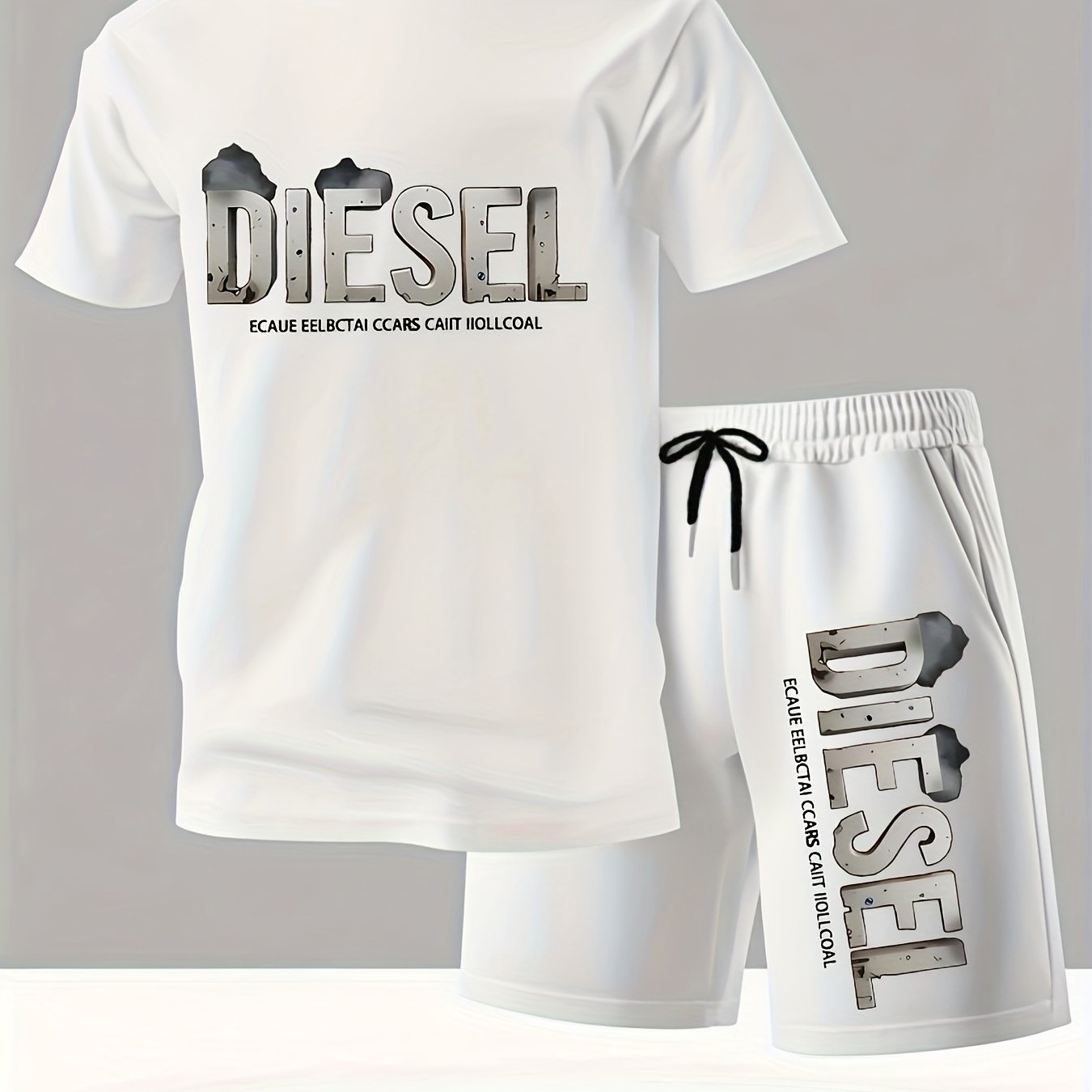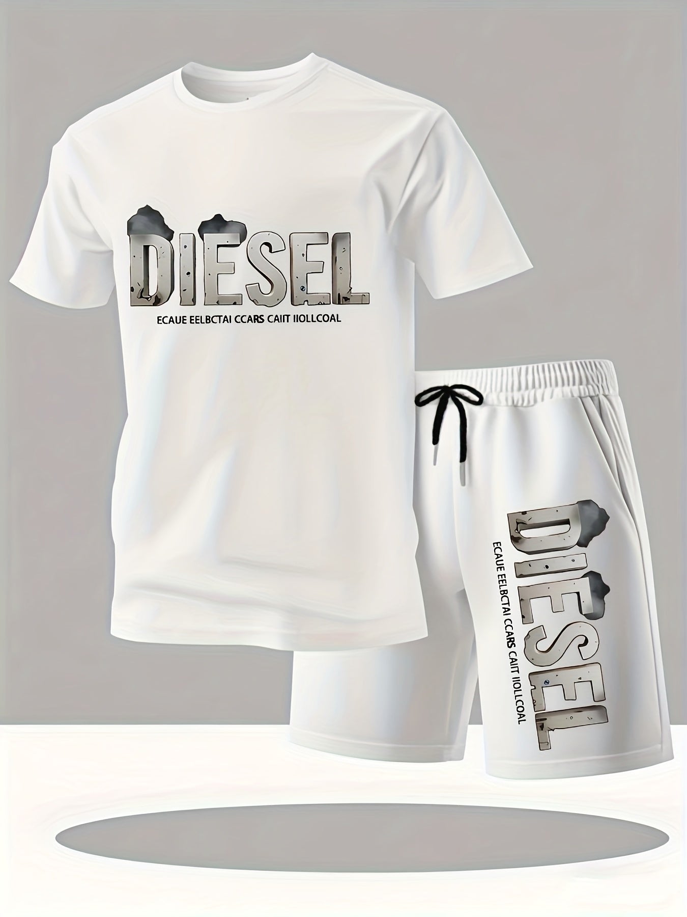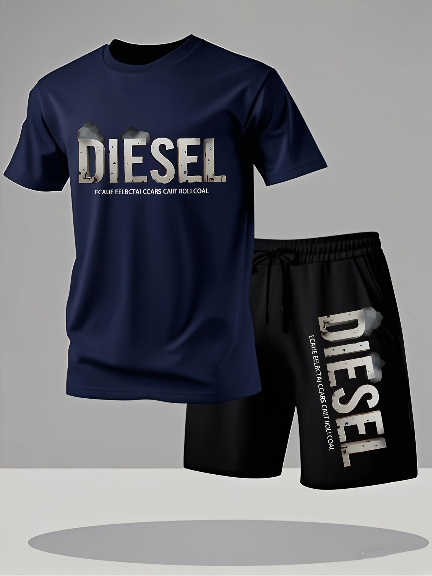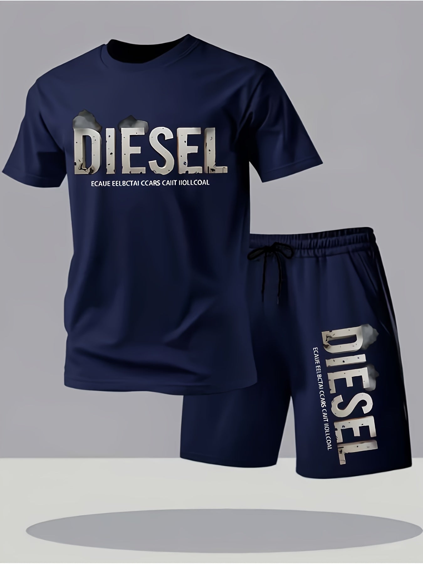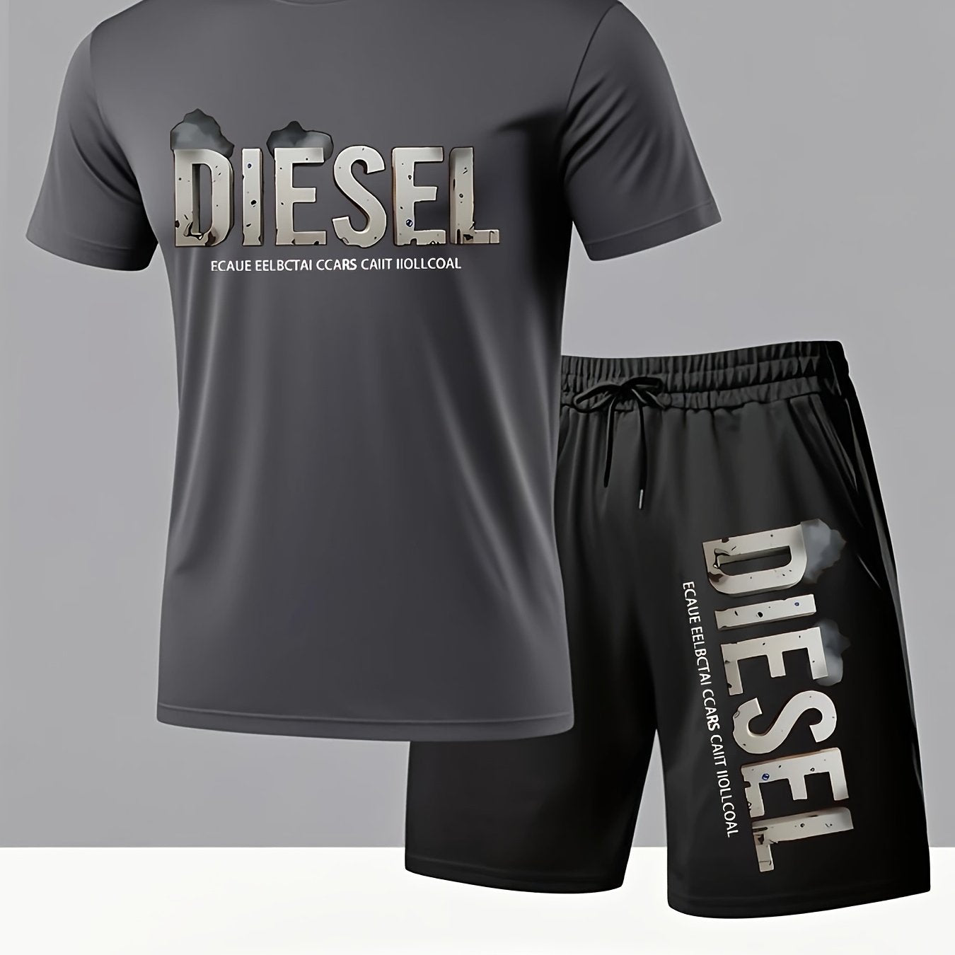 Set estivo da uomo con maglietta e pantaloncini sportivi casual, comodi e traspiranti, adatti per jogging e corsa all'aperto, design con stampa di lettere Diesel - Set da 2 pezzi