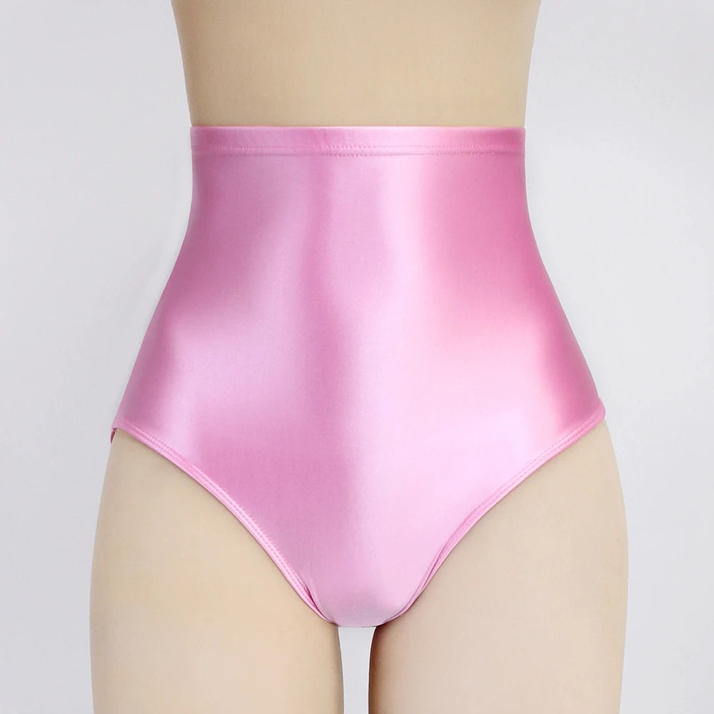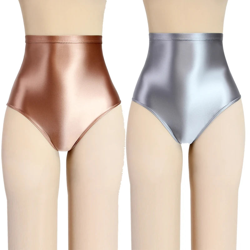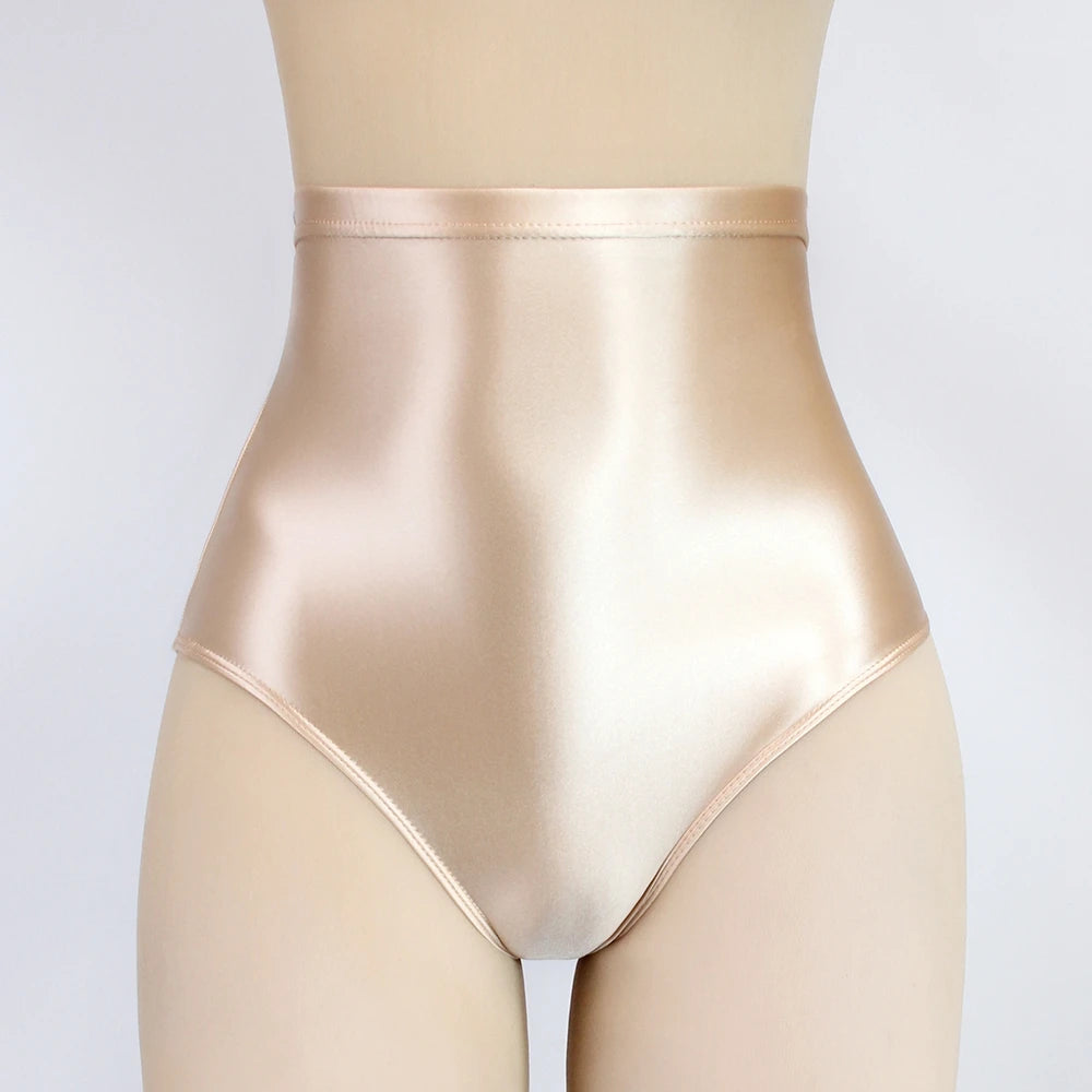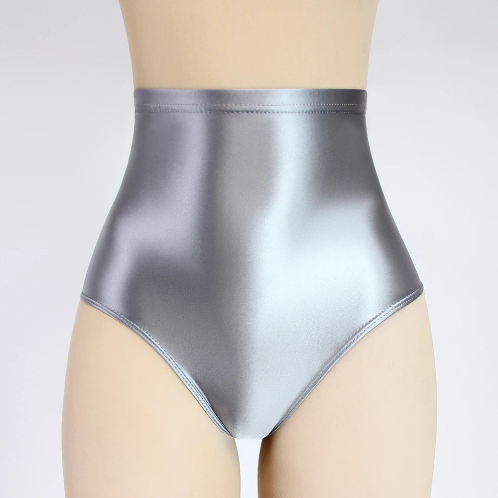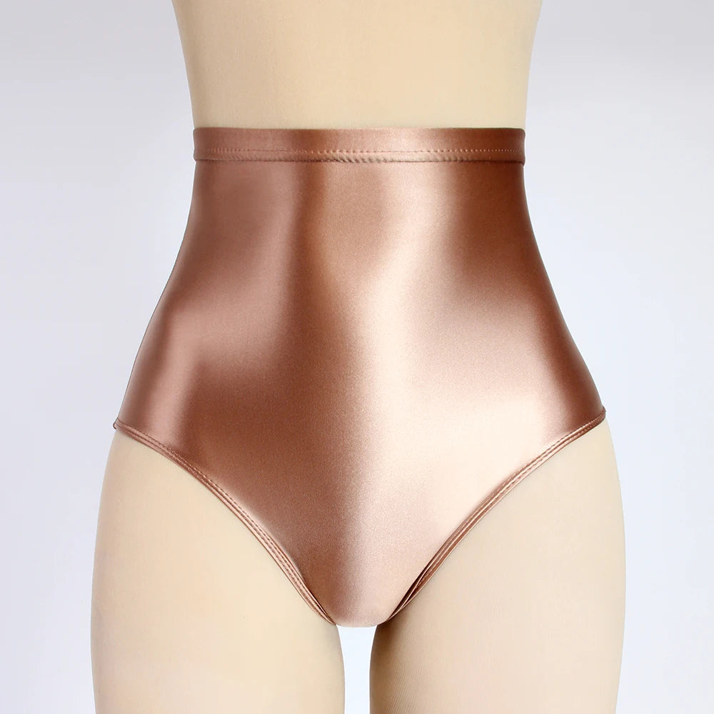 Sexy MEN gloss underwear Briefs Bikini Bottoms with Buttocks Silky Oily swimsuit big size super High Waist Tights Underpants