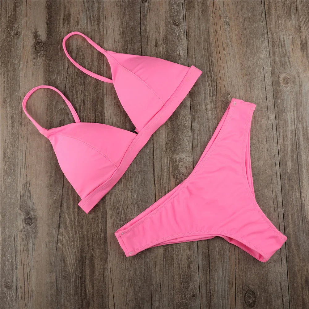 Sexy Triangle Swimsuit Tie Bikini Push Up Women Swimwear High Cut Bathing Suit Brazilian Biquini Sexy Solid Bandage Beachwear