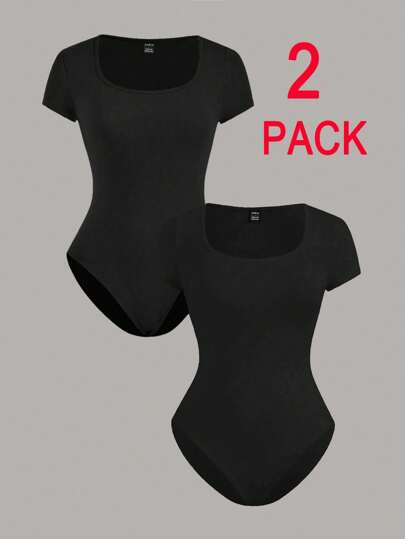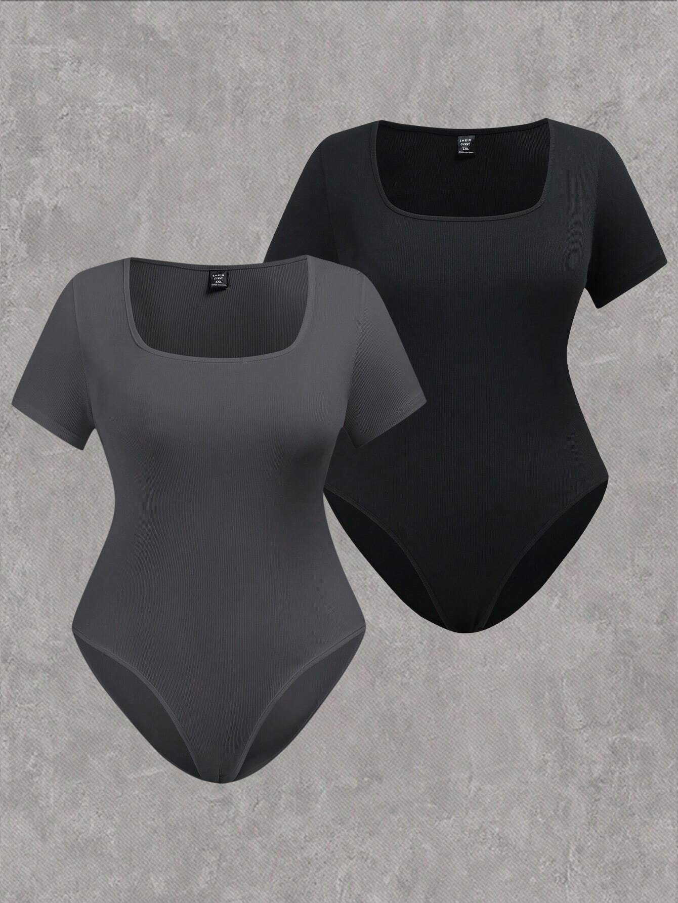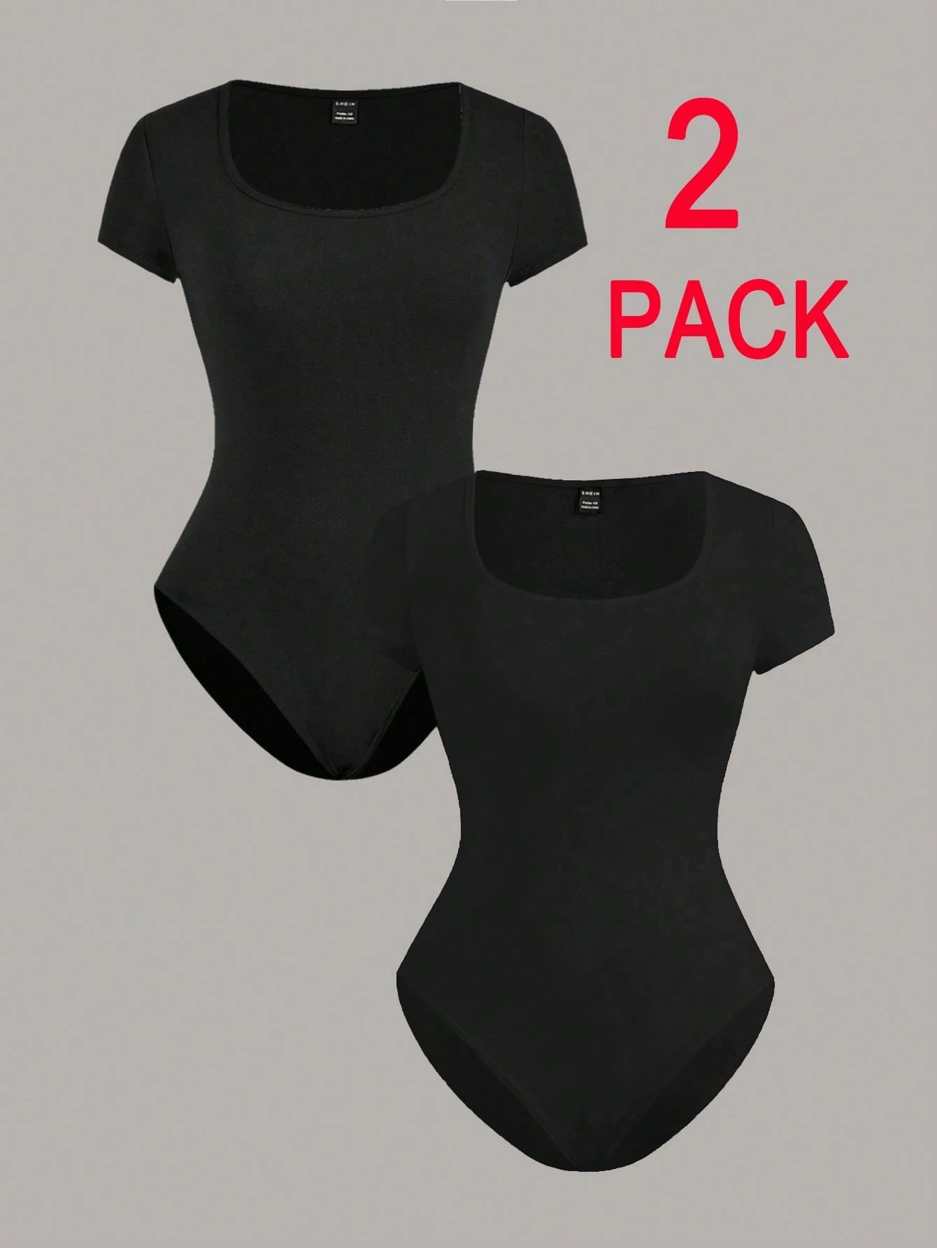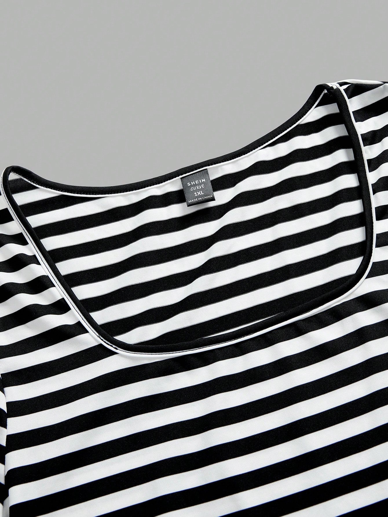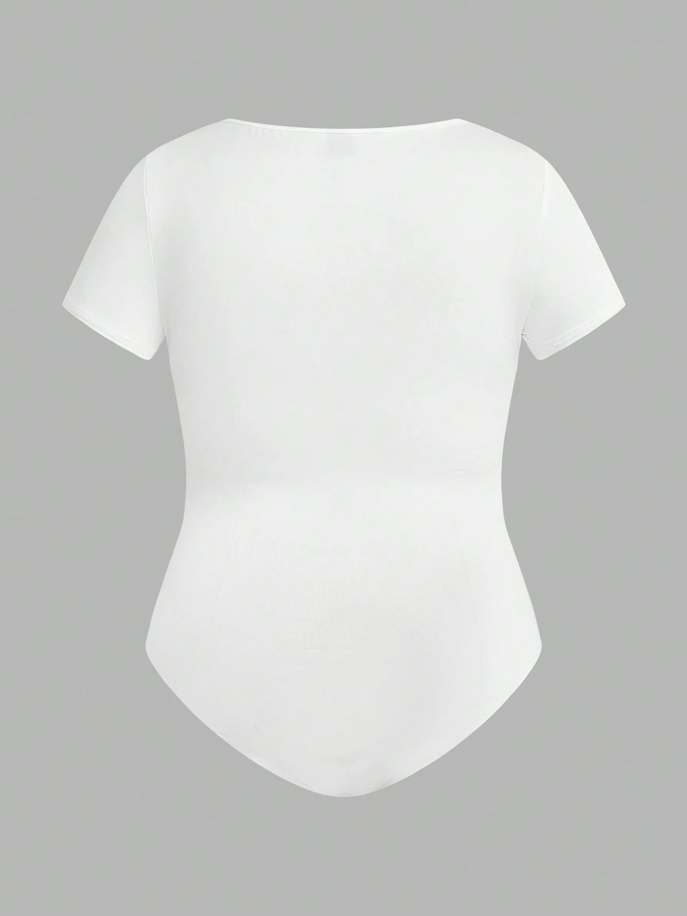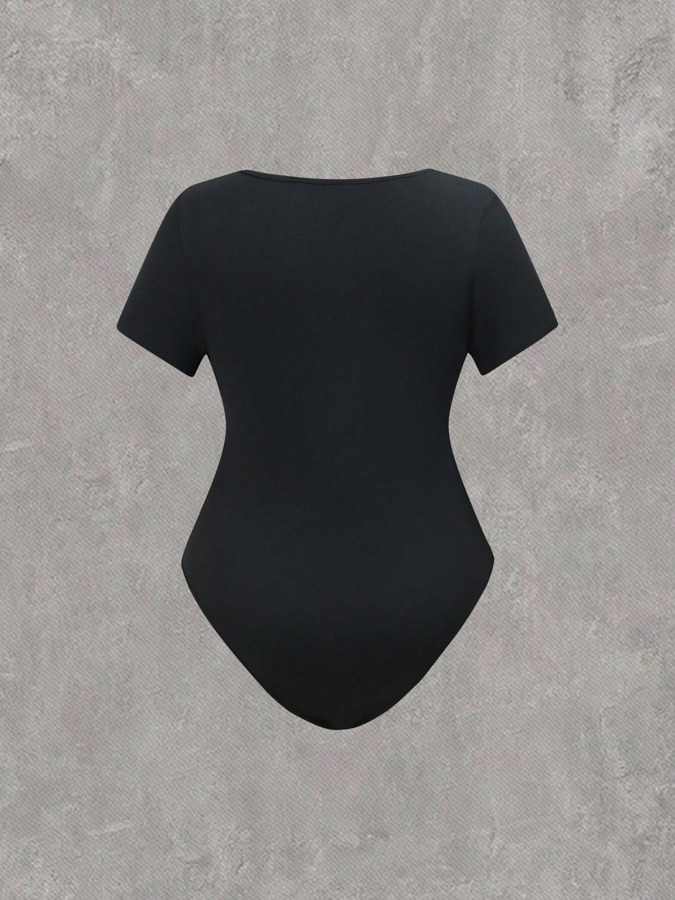 EZwear 2pcs/Set Plus Size Black & White Short Sleeve Bodysuit