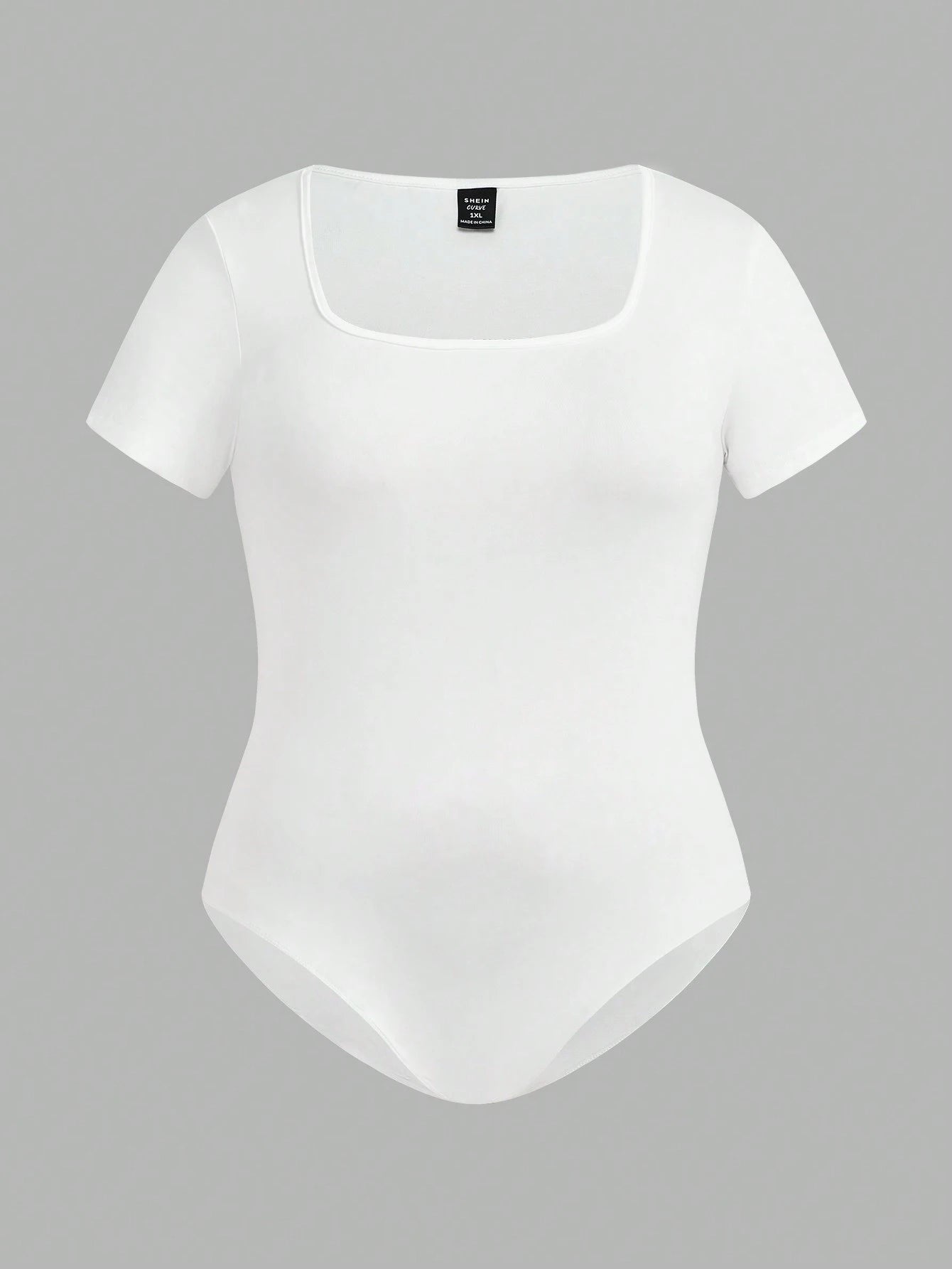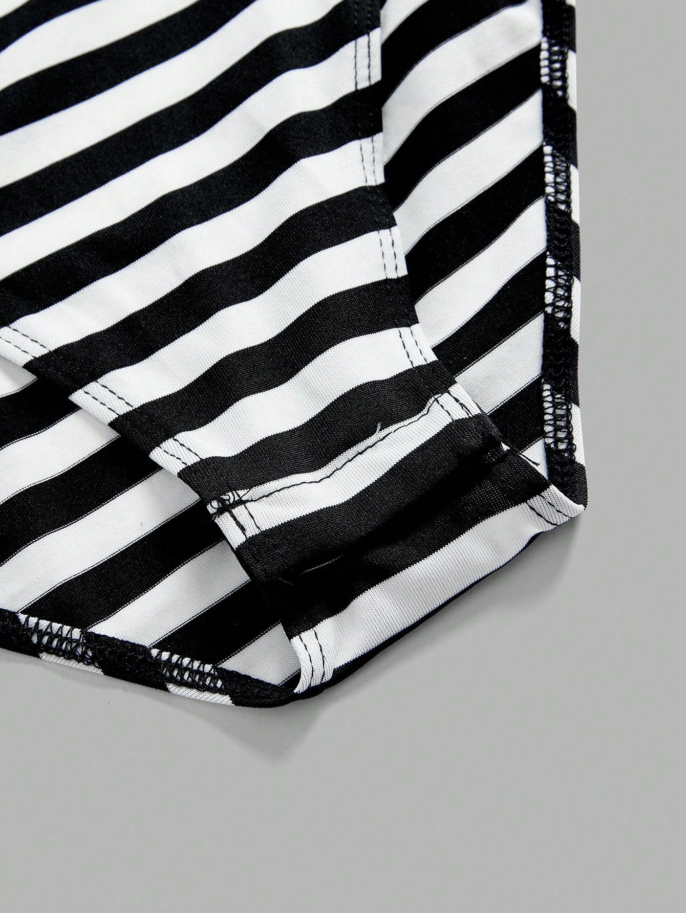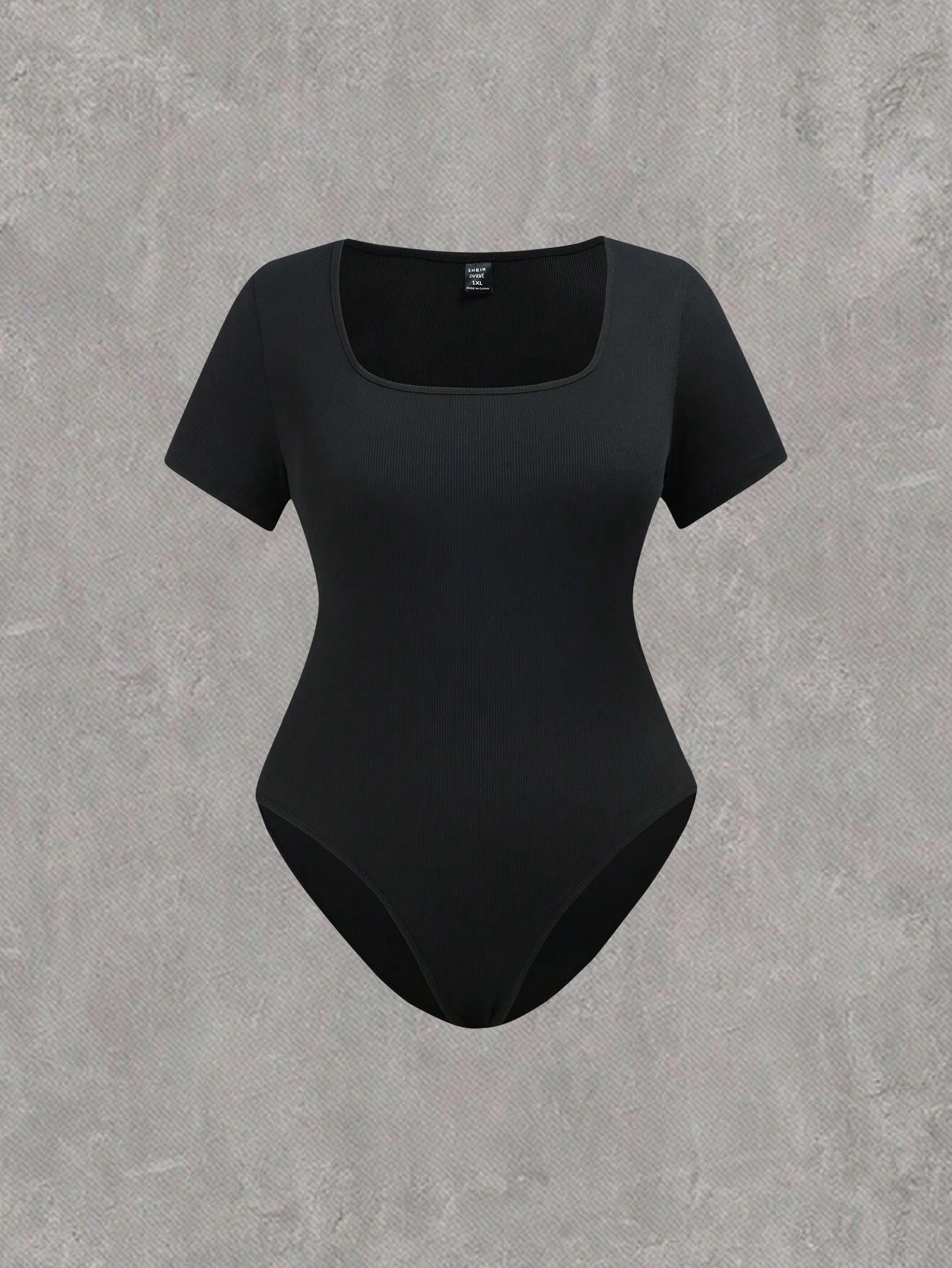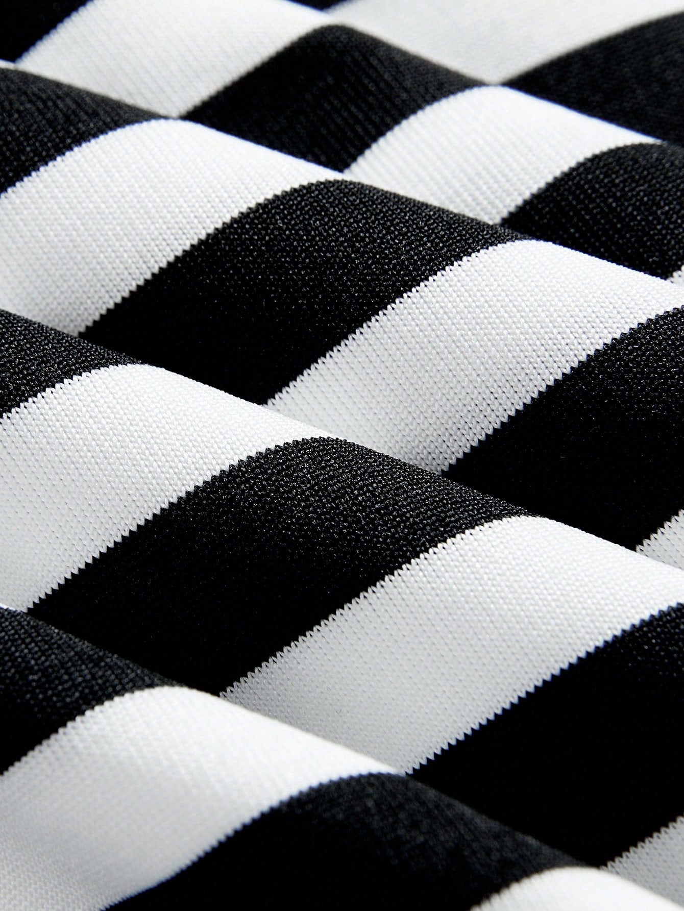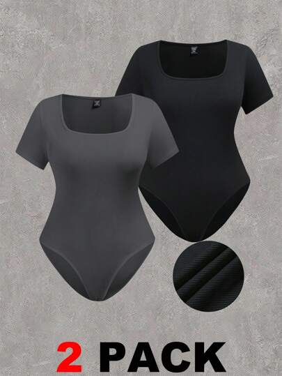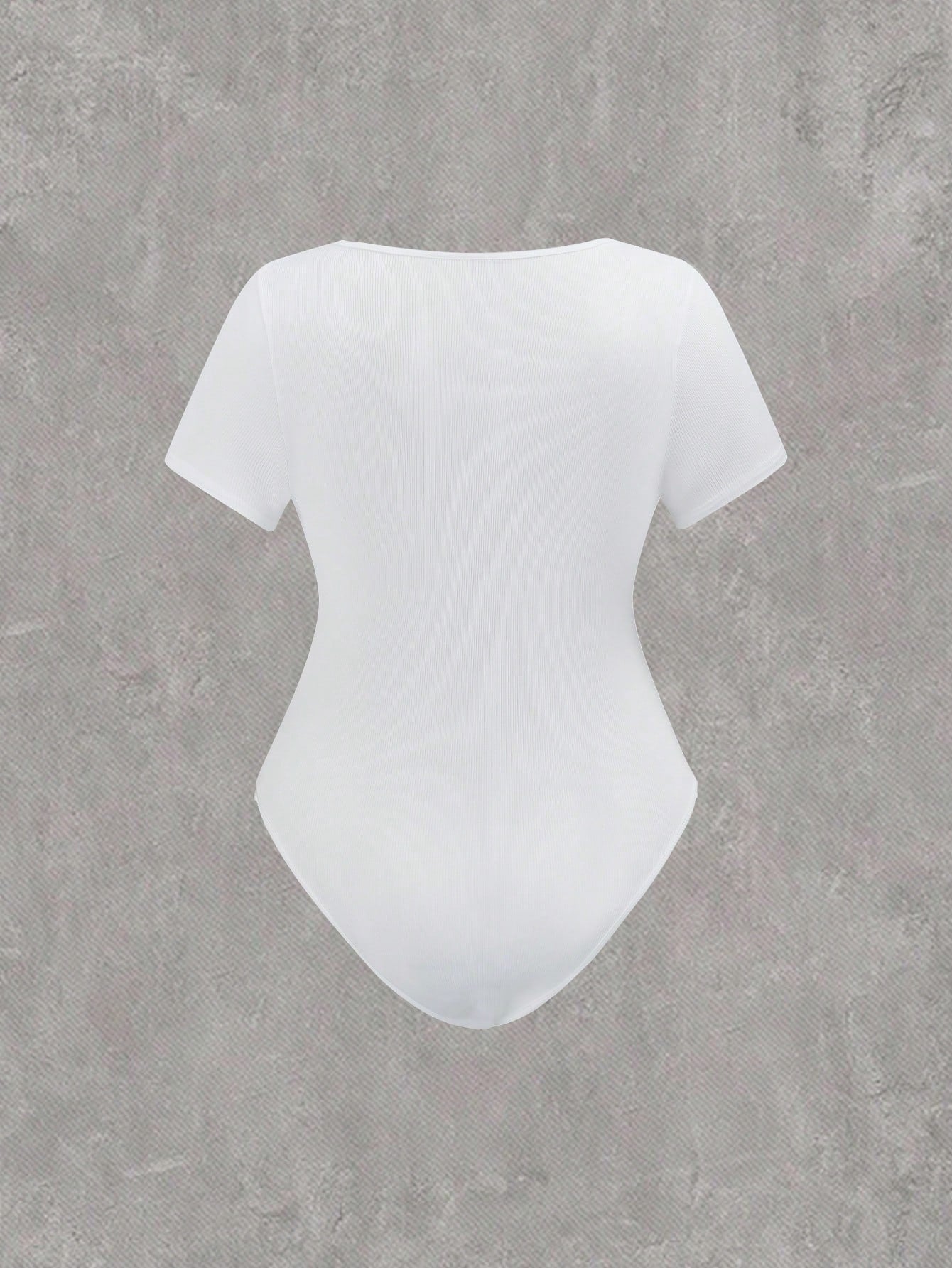 EZwear 2pcs/Set Plus Size Black & White Short Sleeve Bodysuit