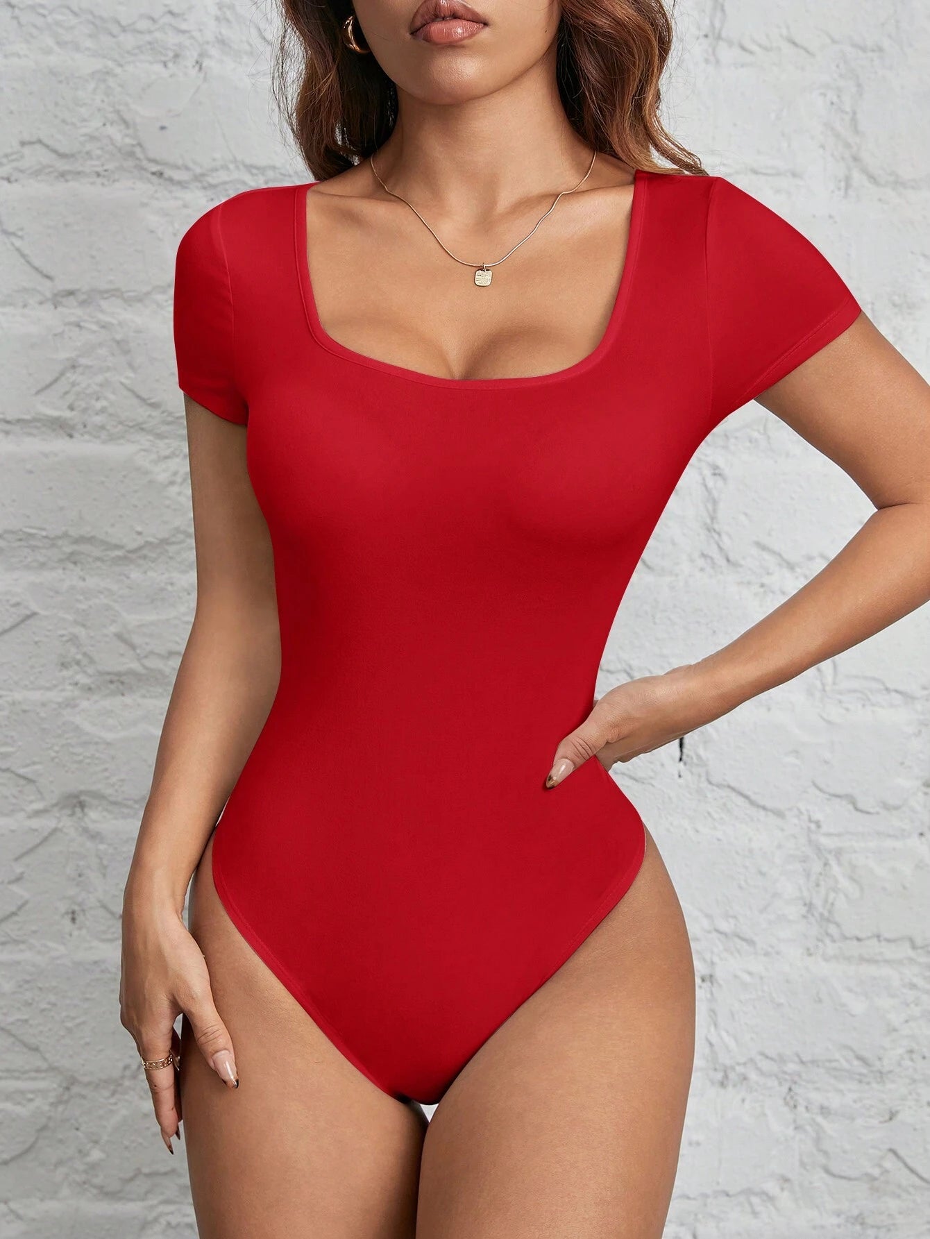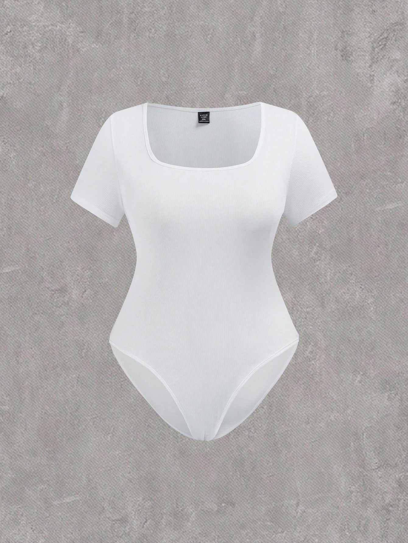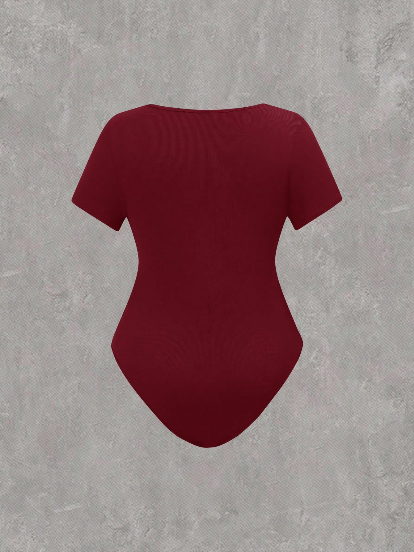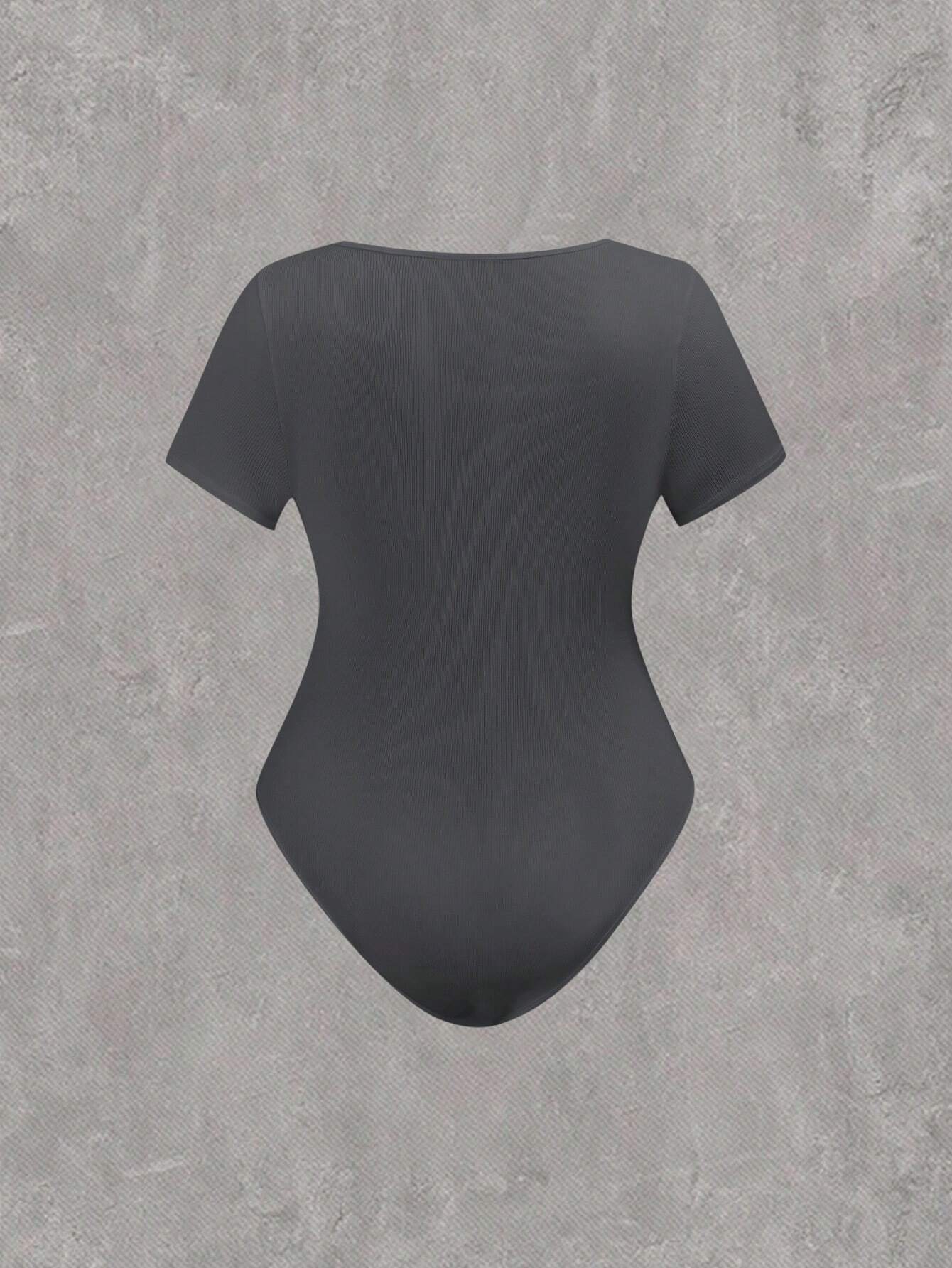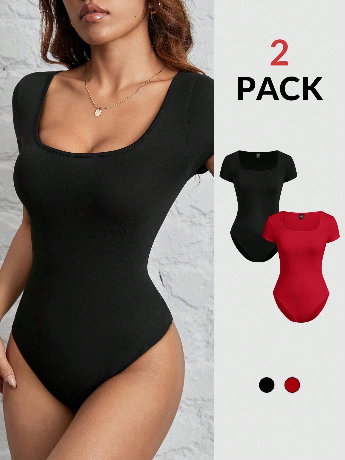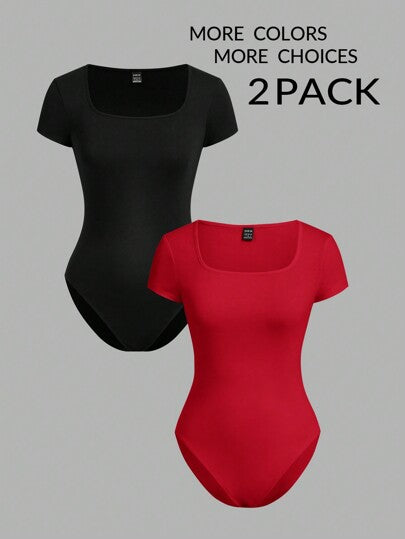 EZwear 2pcs/Set Plus Size Black & White Short Sleeve Bodysuit