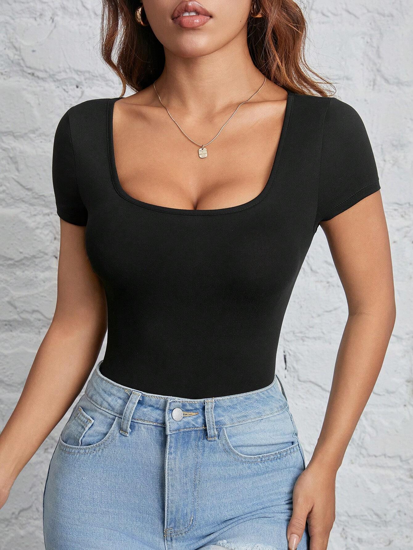 Neckline:Scoop Neck Occasion:Daily Sleeve Type:Regular Sleeve Type:Tee Details:Rib-Knit Pattern Type:Plain Bodysuits Body:Unlined Lined For Added Warmth:No Style:Casual Color:Black and White... Per saperne di più