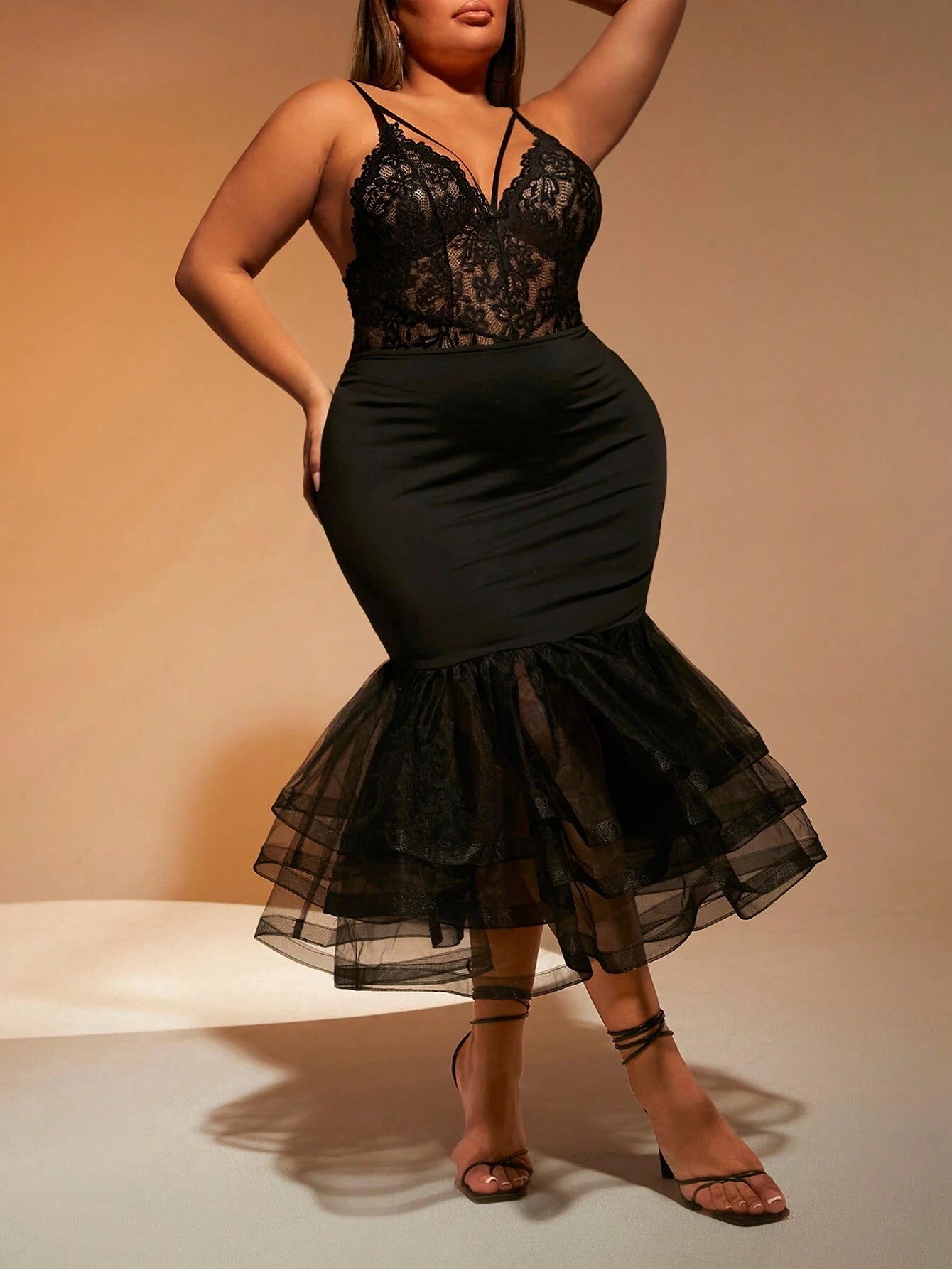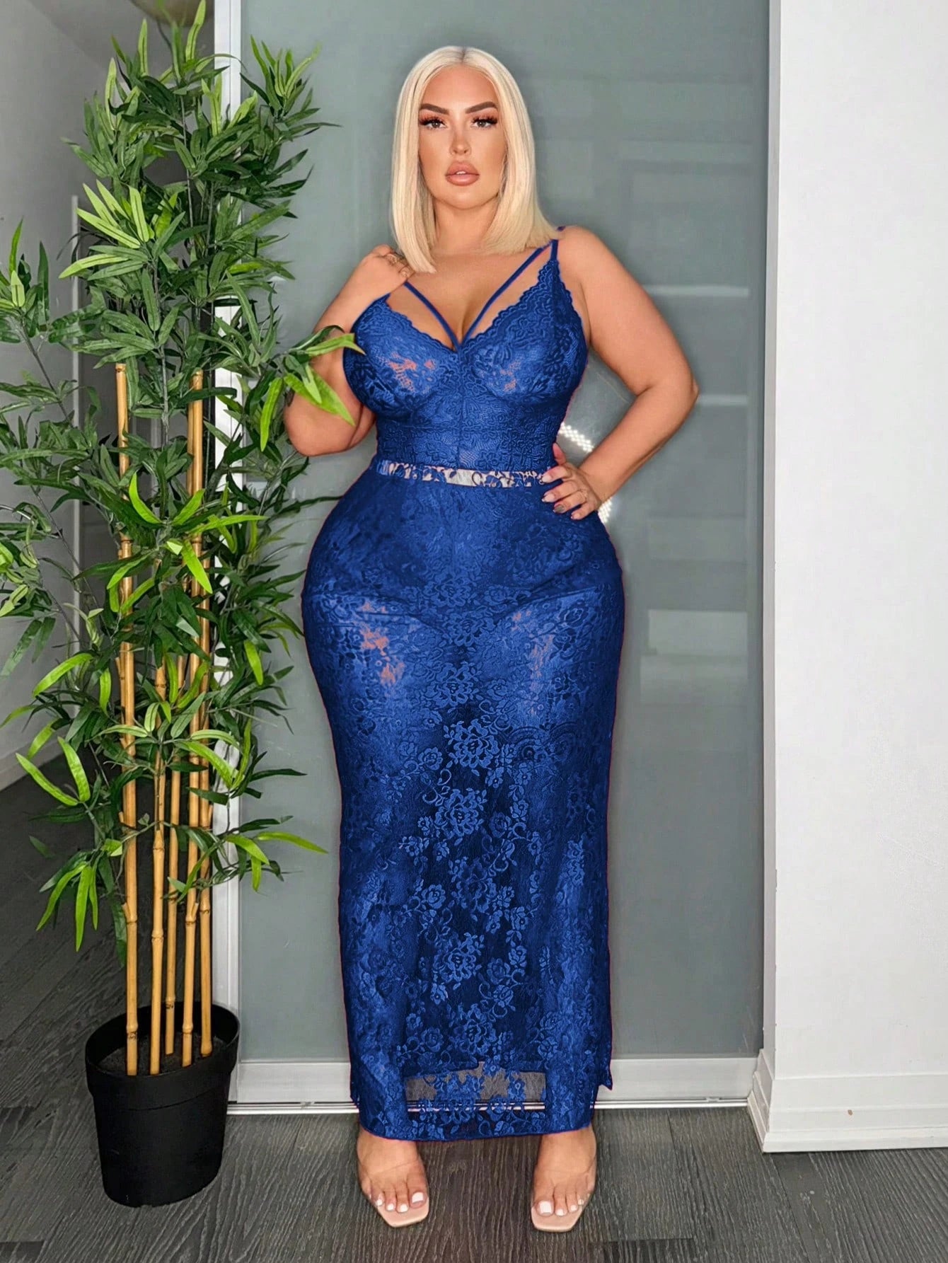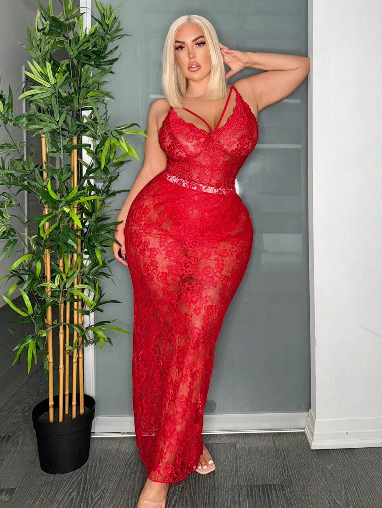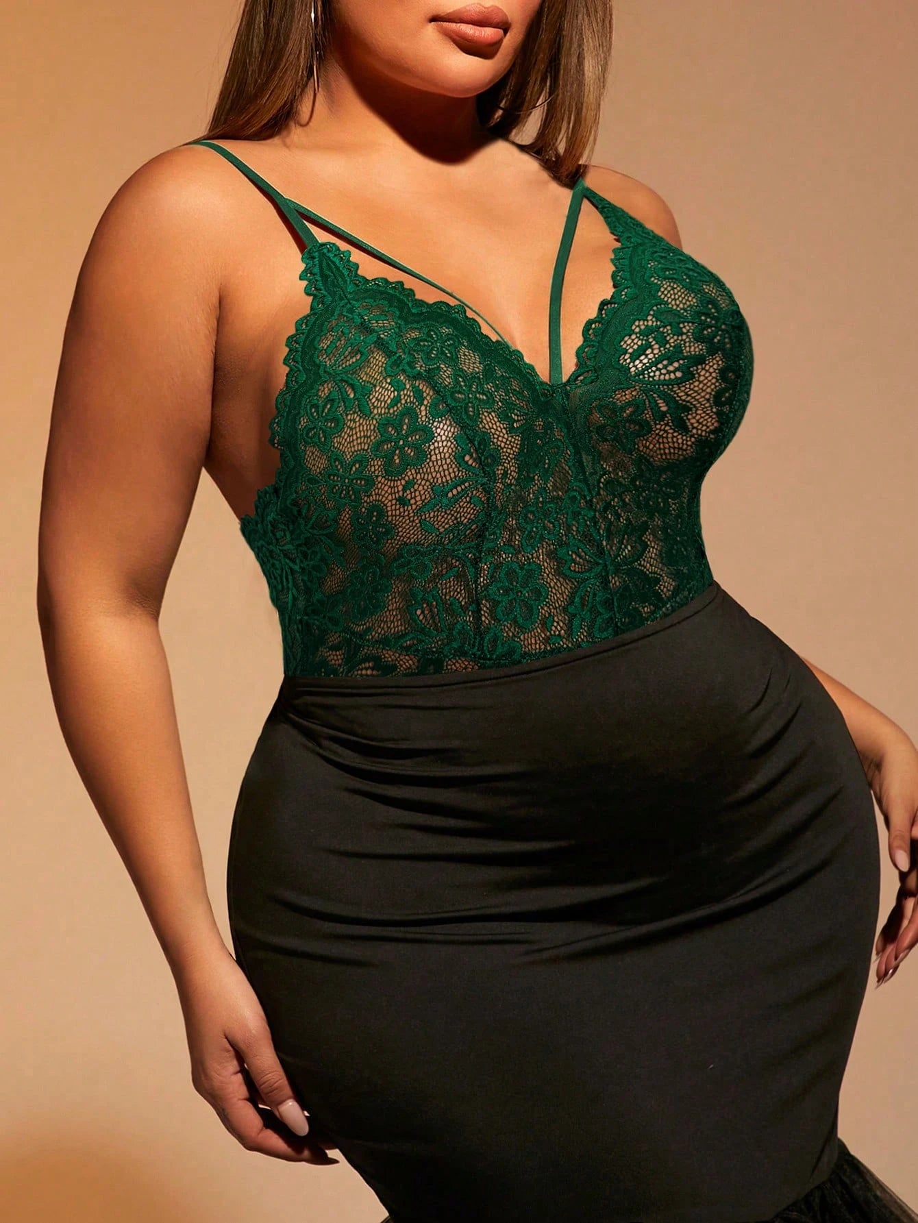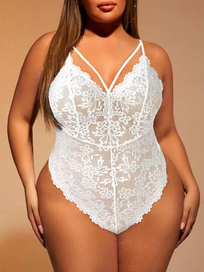 Plus Size Women Fashion Solid Color Lace Bodysuit