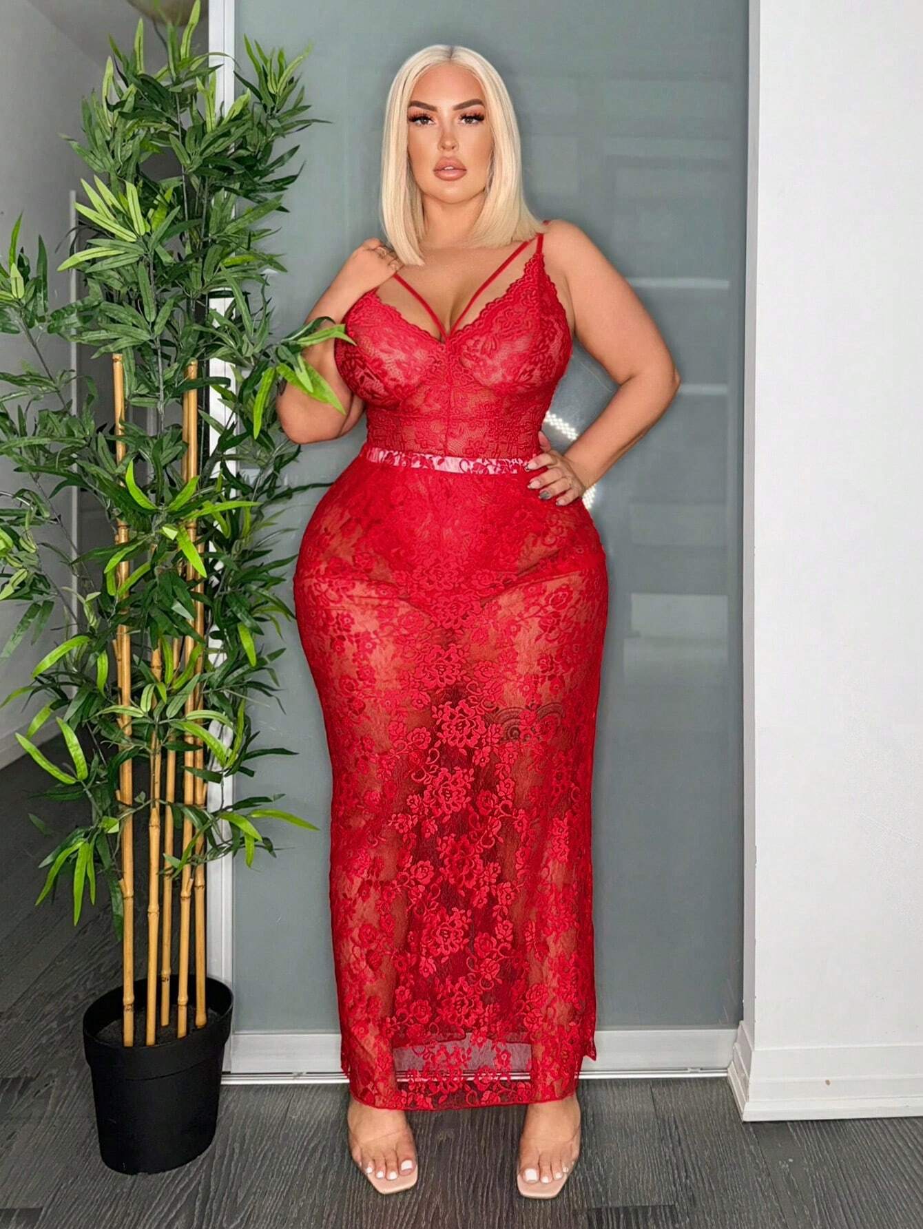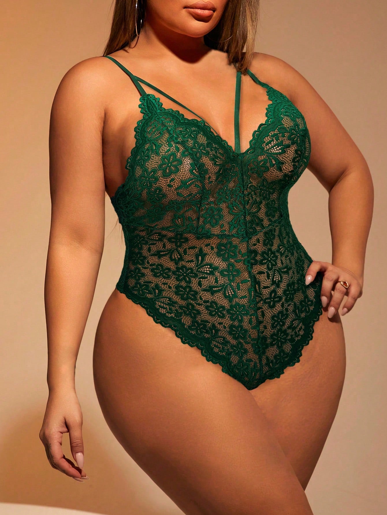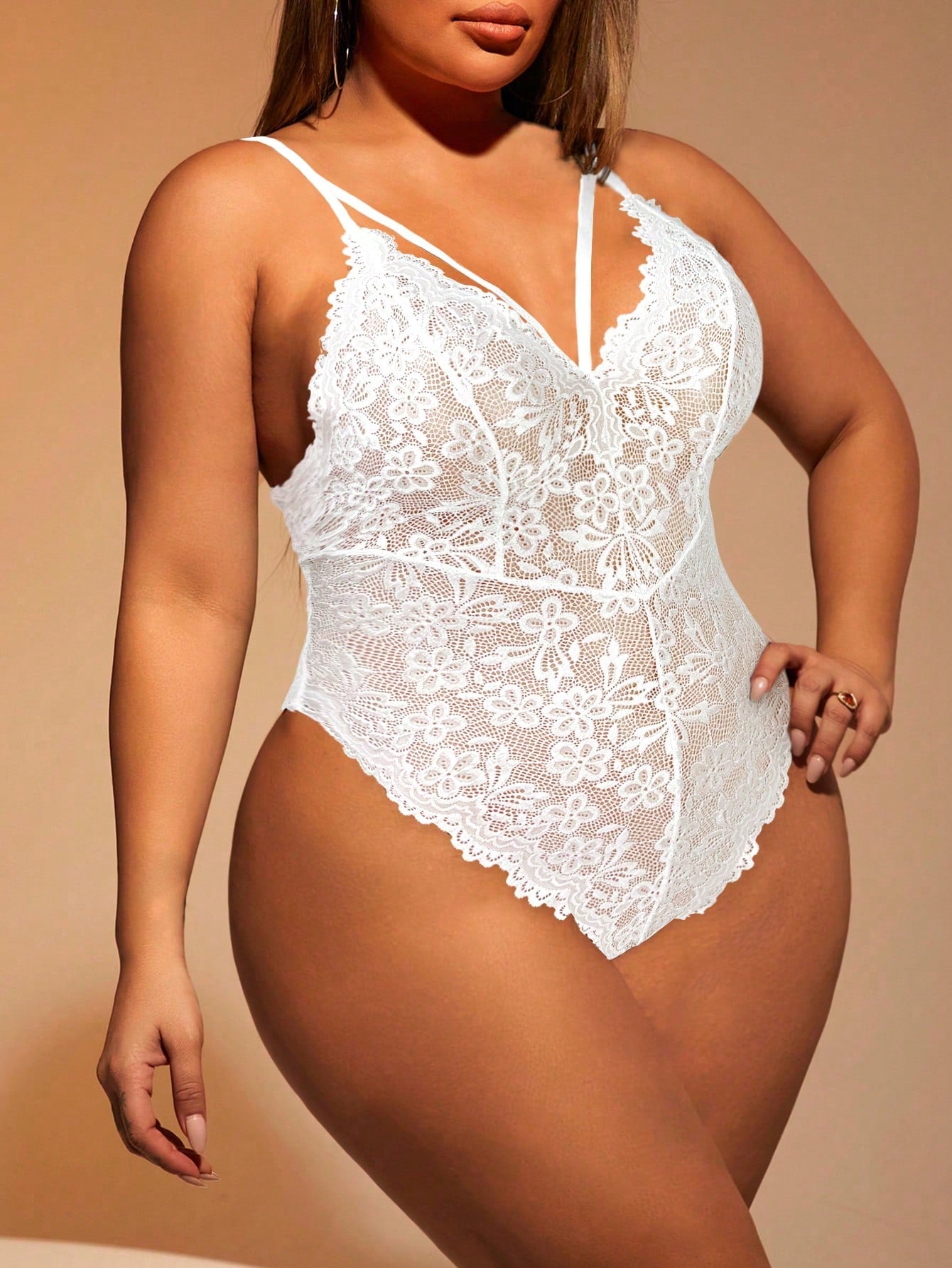 This plus size lace bodysuit combines elegance and comfort with its solid color design and delicate lace detailing. Crafted to... Per saperne di più