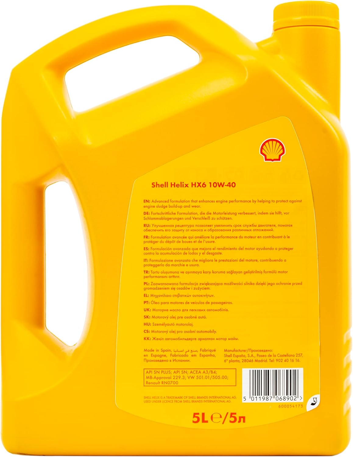 Shell Olio lubrificante per motori Helix HX6 10W-40 5 litri