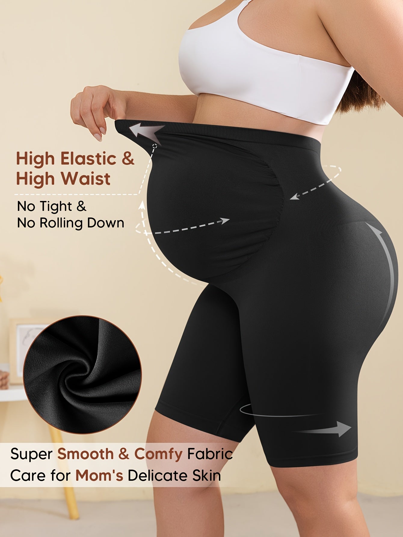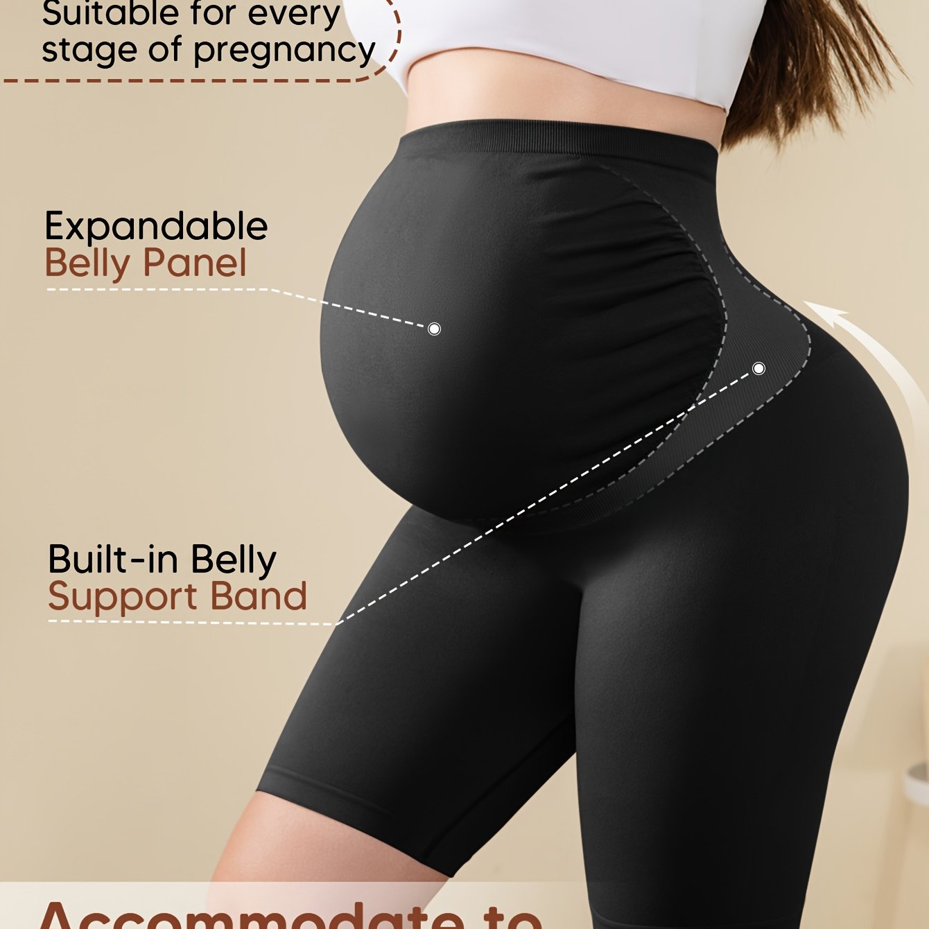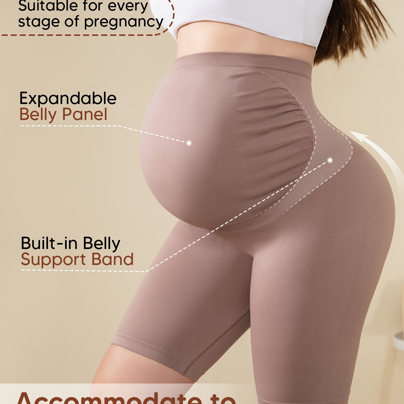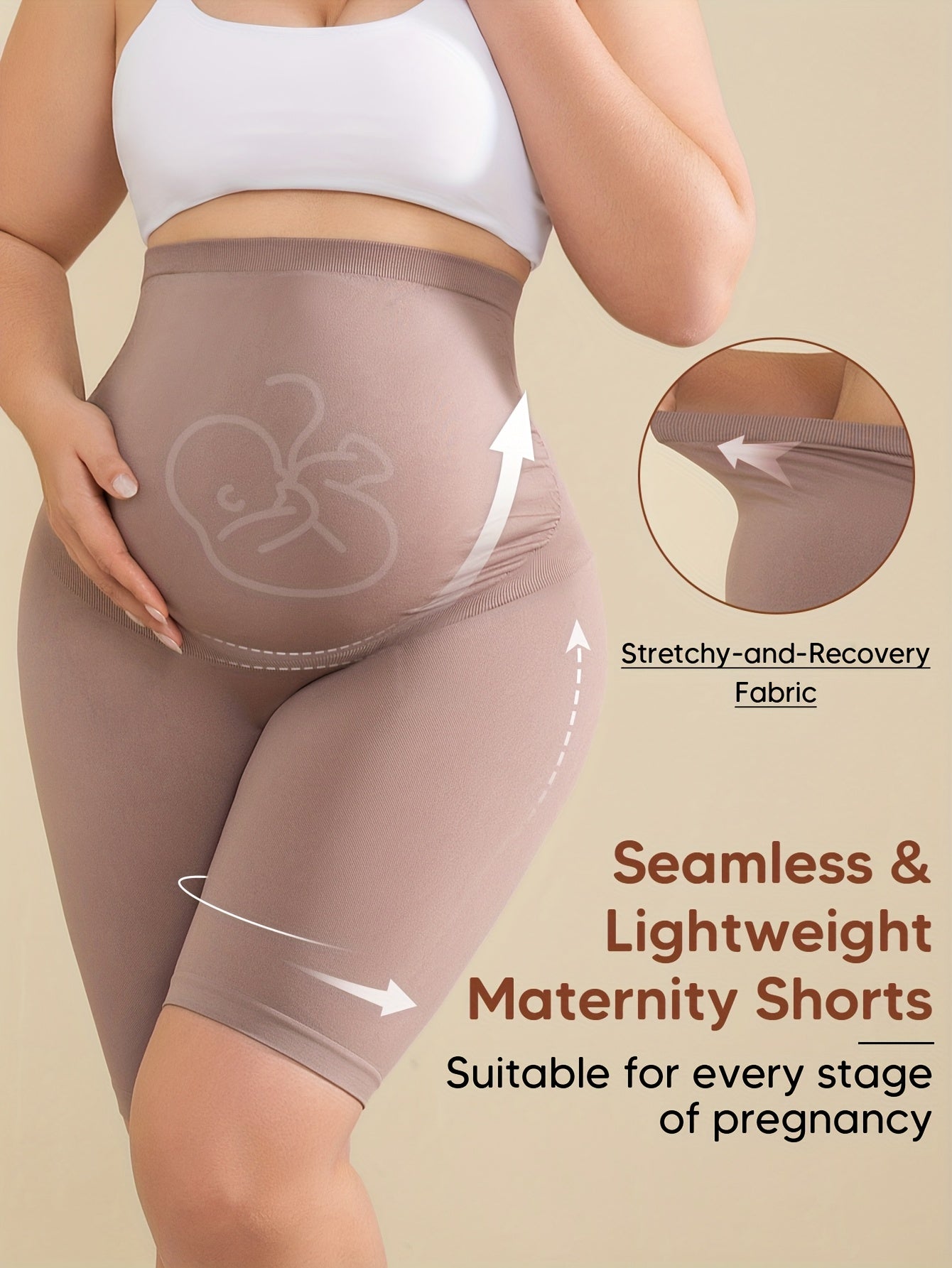 Shorts Premaman a Vita Alta con Supporto Posteriore, Pannello Espandibile per il Corpo & Fascia Integrata per Comfort in Gravidanza, Design Costolato Traspirante e Elasticizzato, Ideali per Yoga & Abbigliamento Casual - Beige, Pantaloni da Maternità, Vest