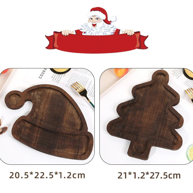 Simpatico vassoio per stoviglie natalizie, piatto da frutta in legno per albero di Natale, piatto in legno per scomparto per torte e dessert