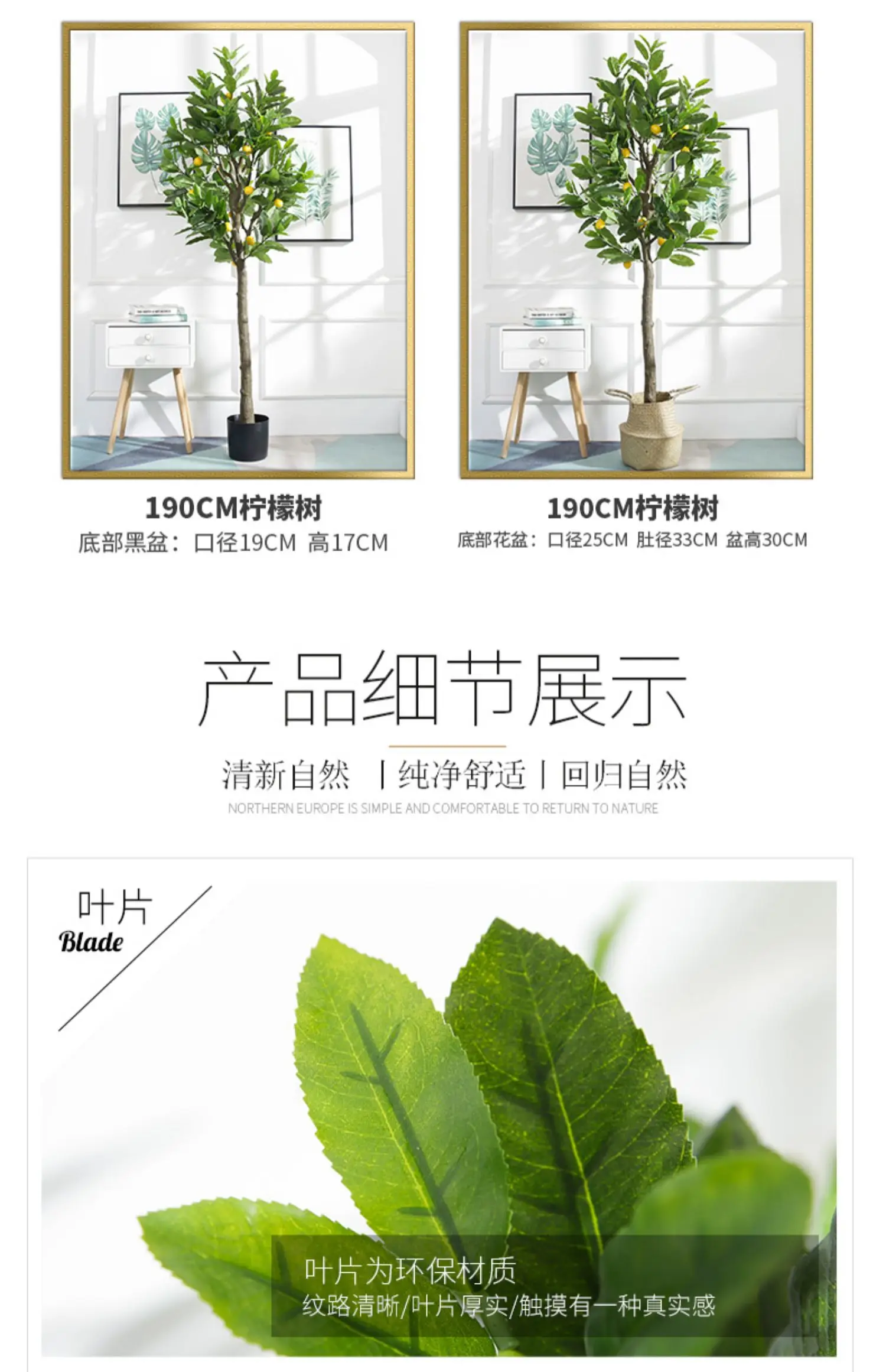 Simulation Green Plant Simulation Lemon Tree Pot Large Green Plant Bonsai Shopping Mall Restaurant Decoration on The Ground