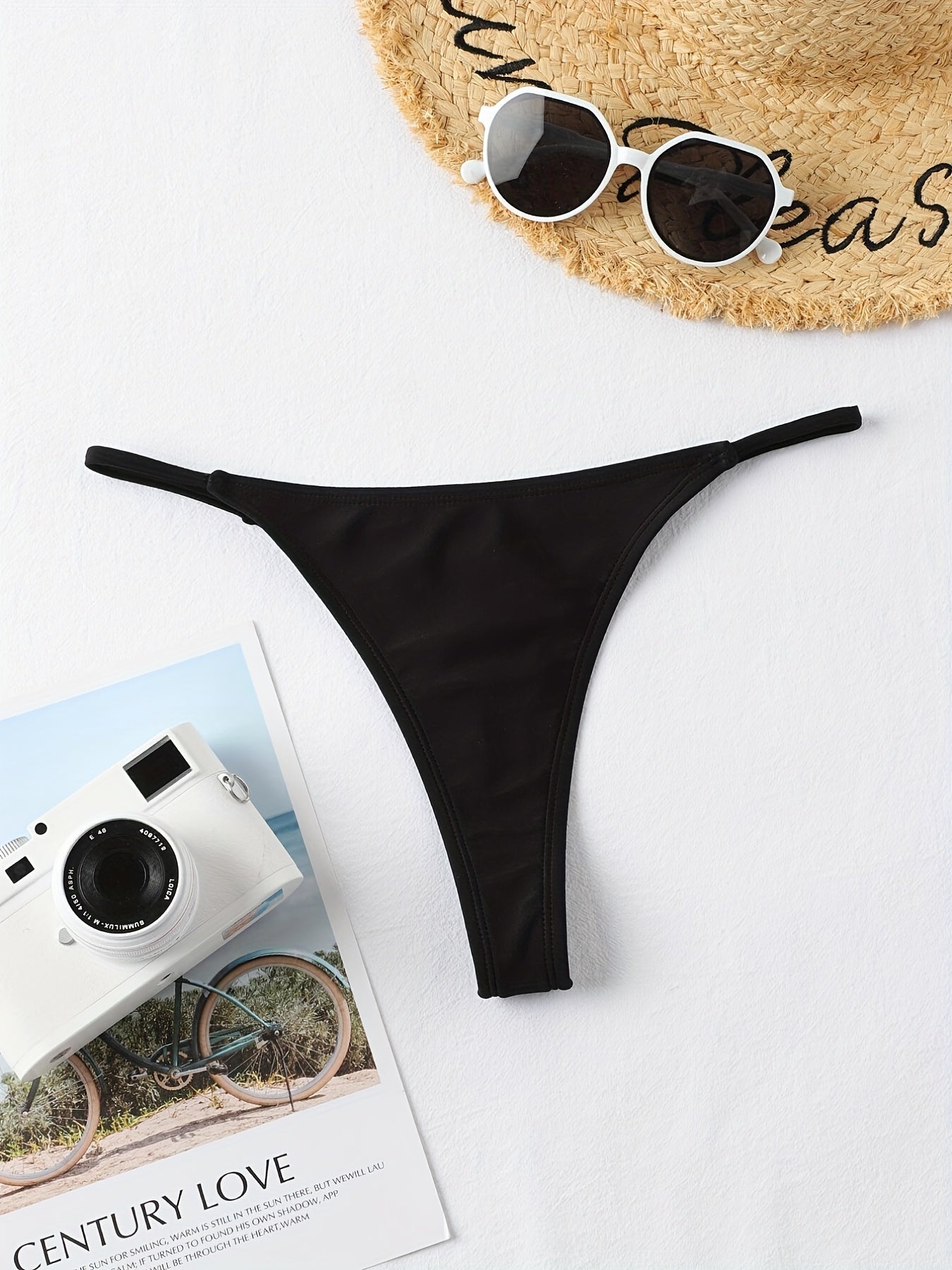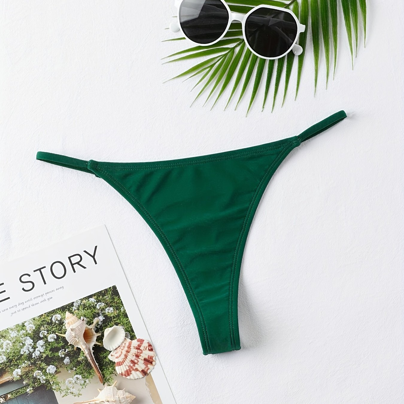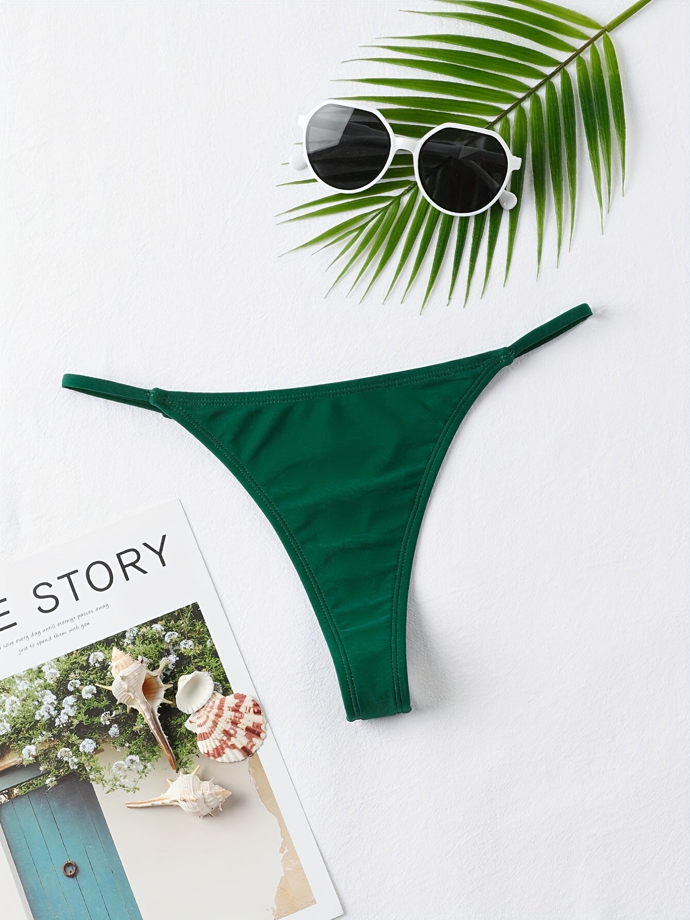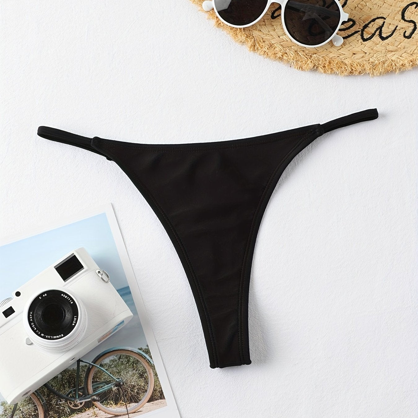 Slip Da Bagno Perizoma A Vita Bassa In Tinta Unita, Slip Da Bagno Sexy Versatili Con Stringhe A V Elastiche, Costumi Da Bagno E Abbigliamento Da Donna