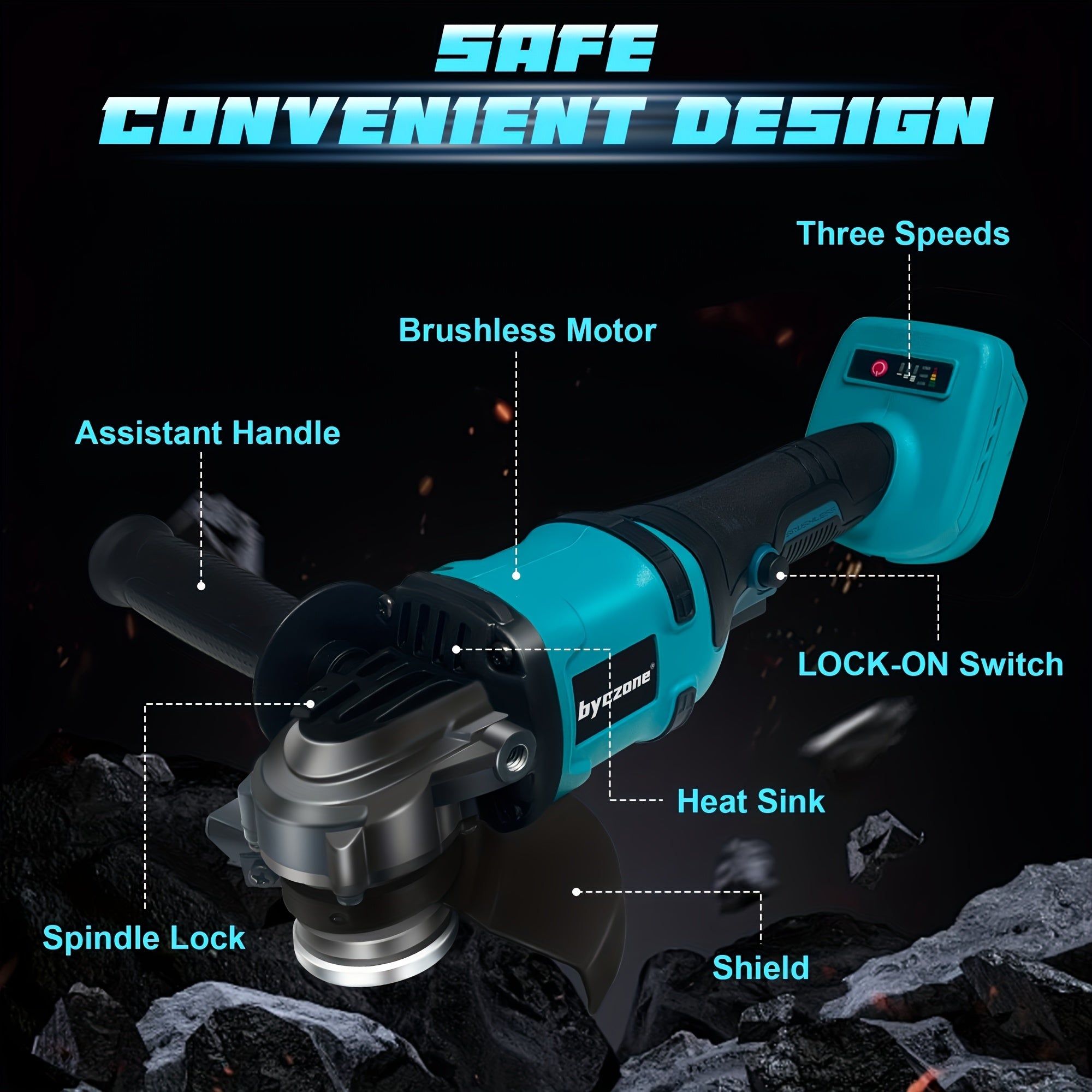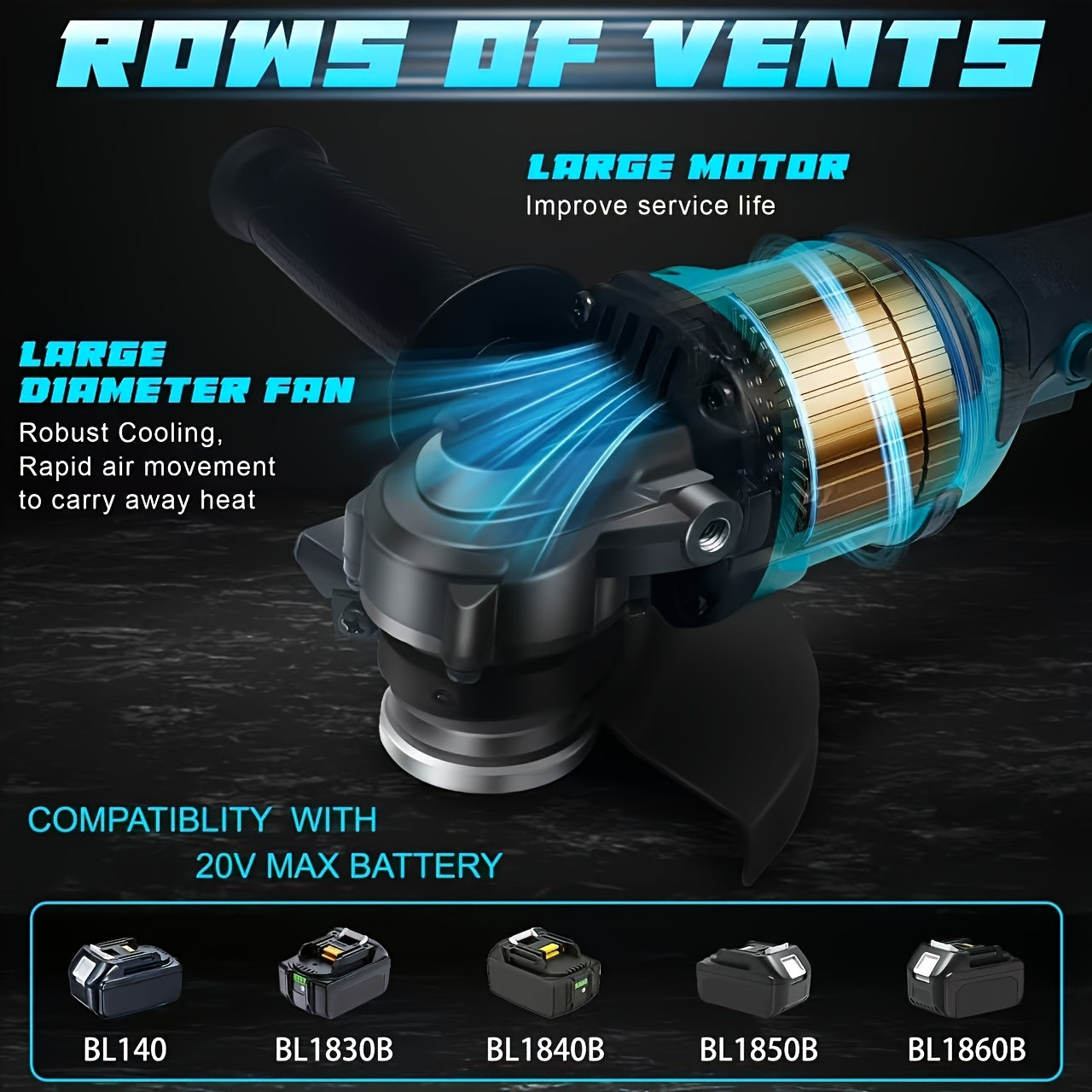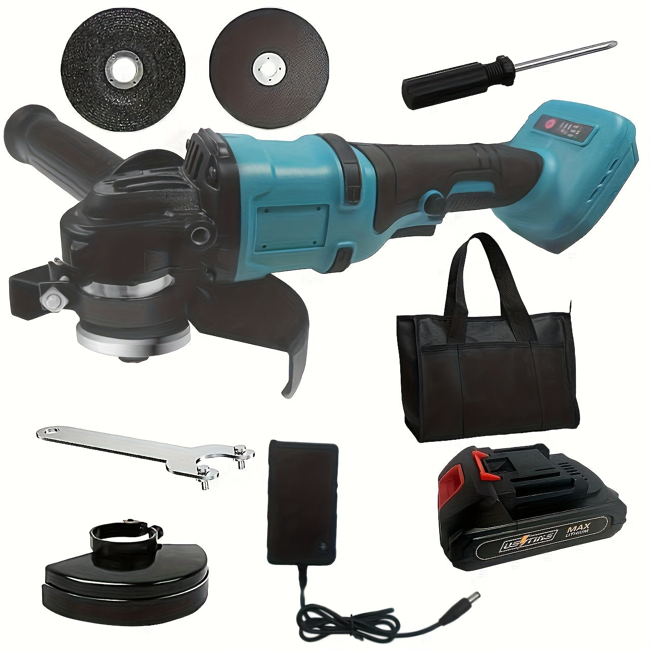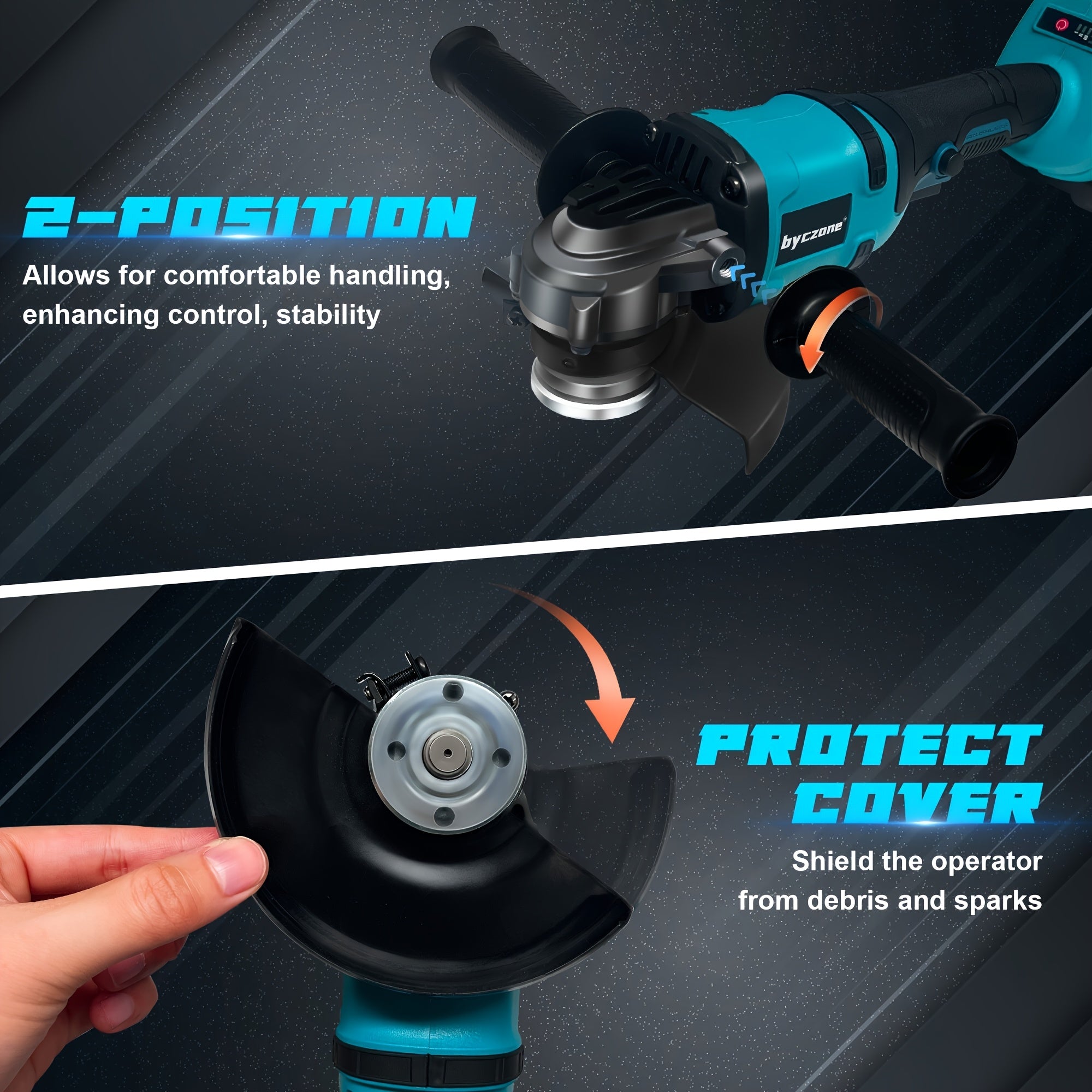 Smerigliatrice angolare senza fili 21V 4-1/2 pollici, batteria da 3.0Ah e 1 caricabatterie rapido standard europeo, motore brushless da 8500 giri/min, con mola, disco a ventaglio per legno, metallo e smerigliatrice angolare per la rimozione della ruggine