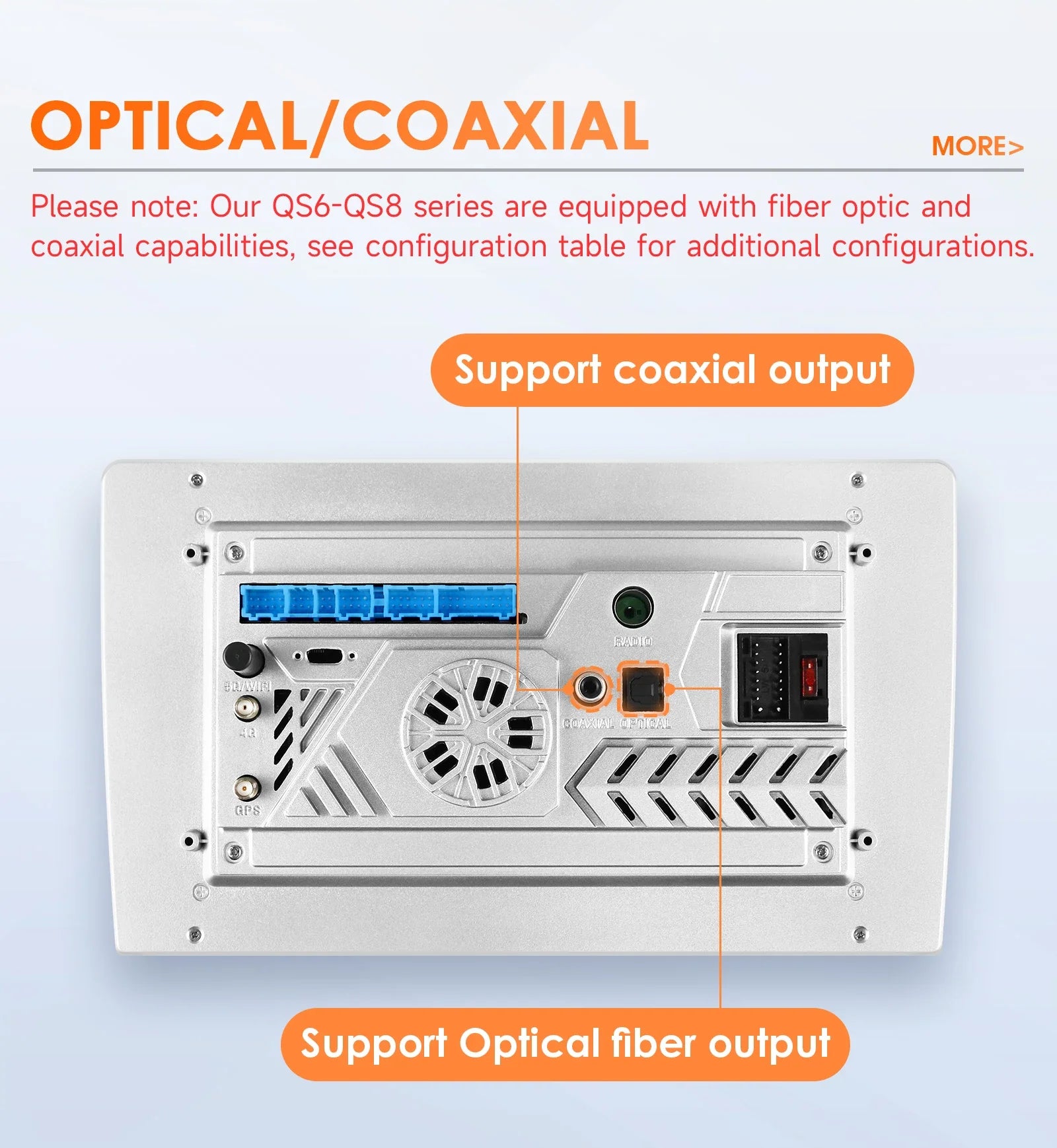 Please note: Our QS6-QS8 series are equipped with fiber optic and coaxial capabilities,see configuration table for additional configurations. Carplay and Android Auto