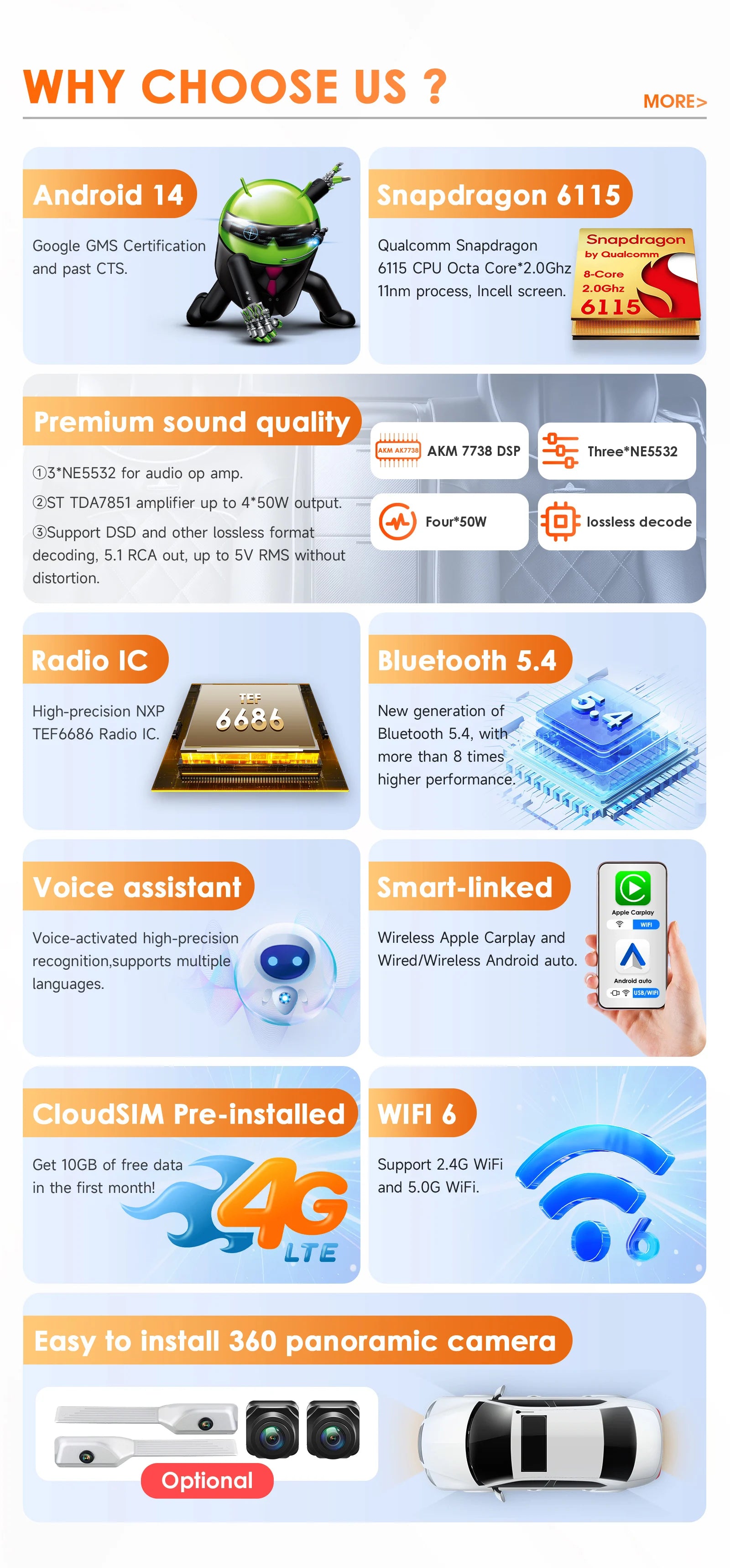 We have hired professional sound engineers to optimise and adjust the audio parameters of our products, ensuring that the audio performance is no less impressive than most original car audio systems. DSP AKM AK7738