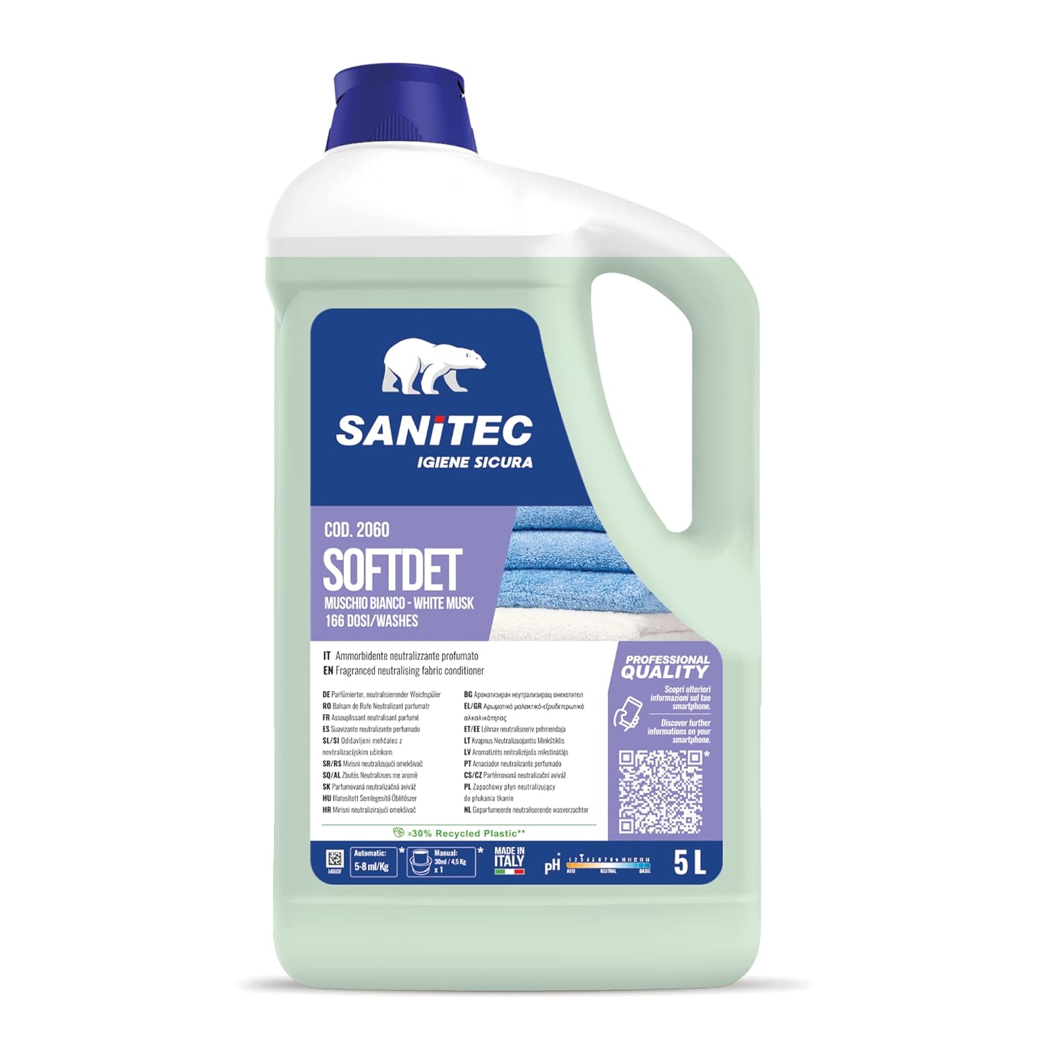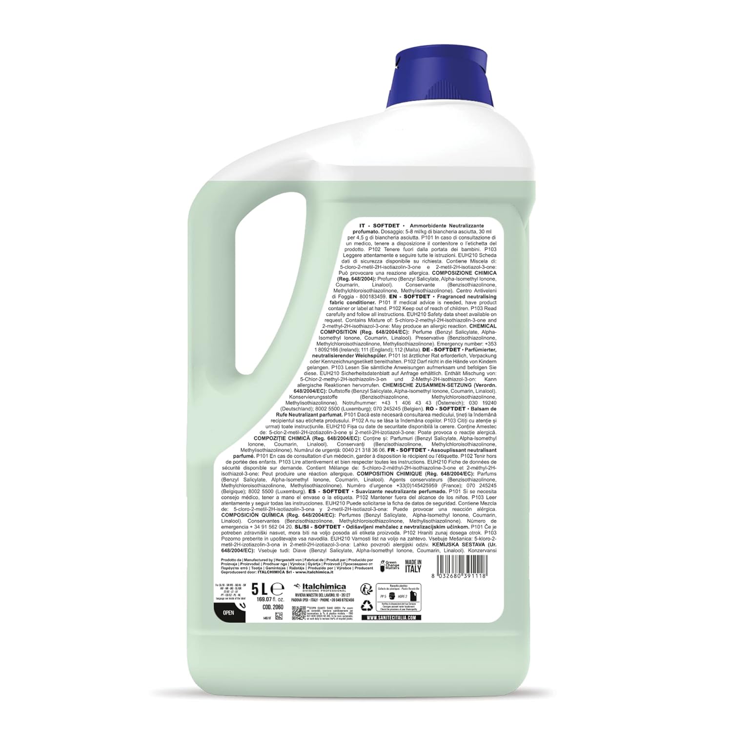 Softdet - Additivo Ammorbidente Profumato Igienizzante per Lavaggio a Mano e in Lavatrice - Bianchi e Colorati - Orchidea e Muschio - 5 kg