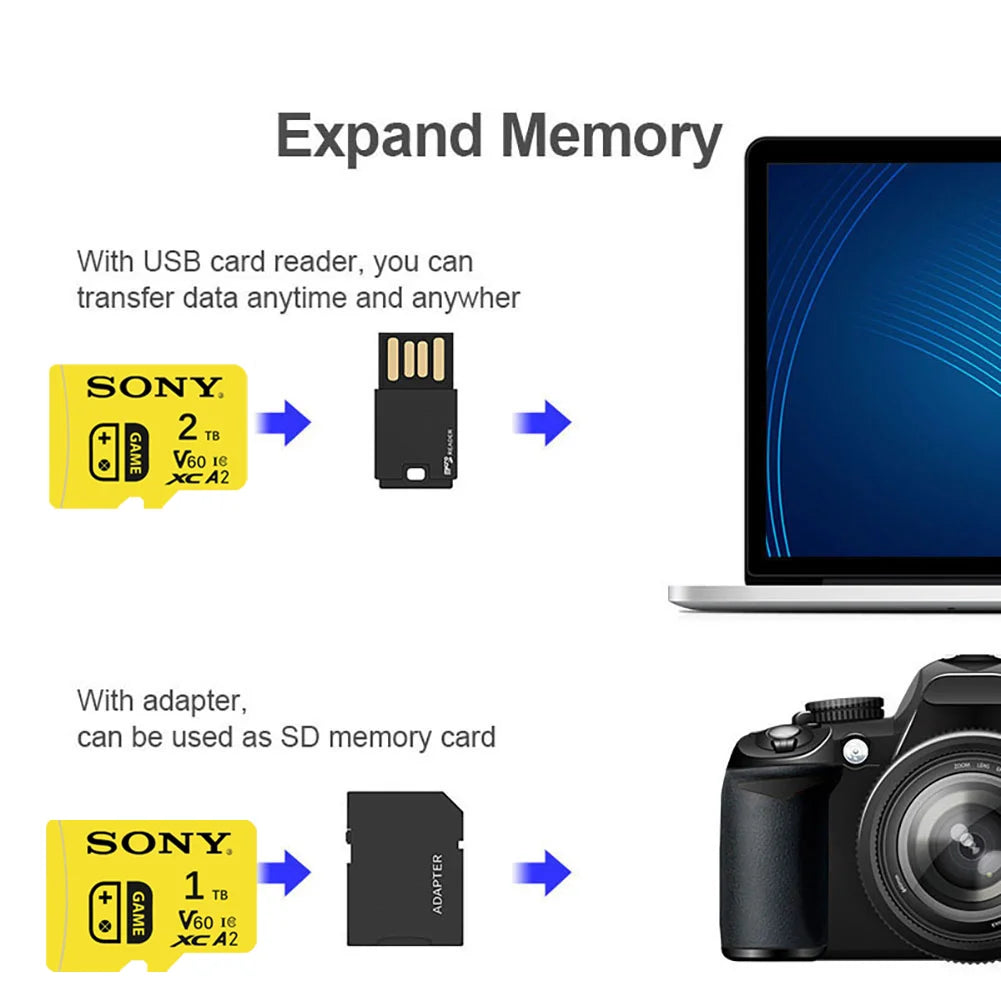 SONY Scheda TF ad alta velocità Memorie Micro Sd A2 V60 U3 Scheda Micro Sd 2TB 1TB 512GB 256GB 128GB per telefono Drone Monitor