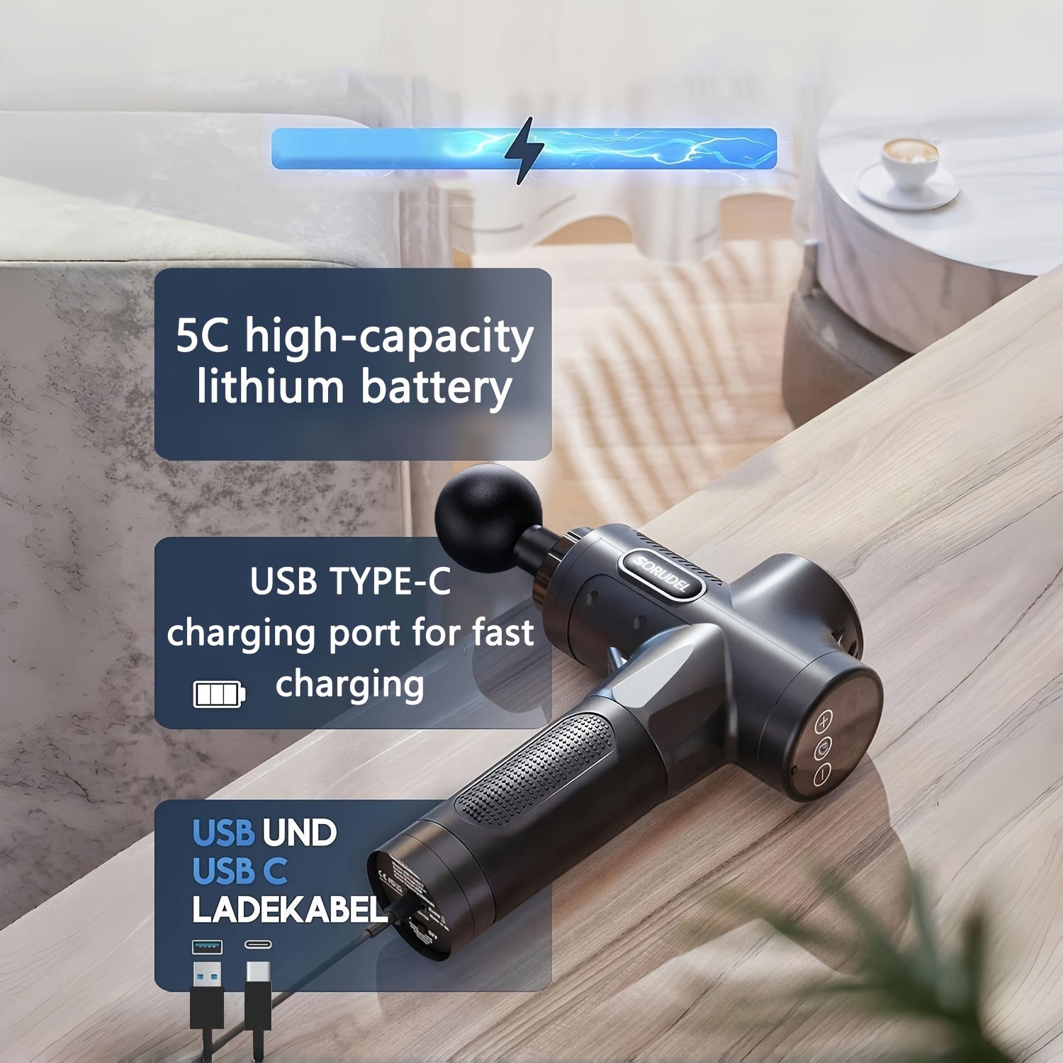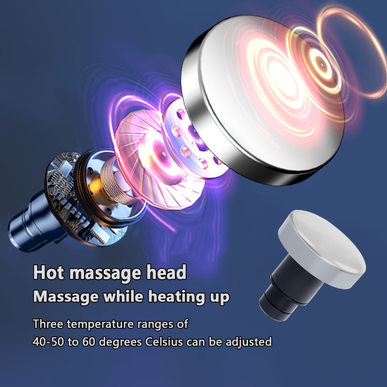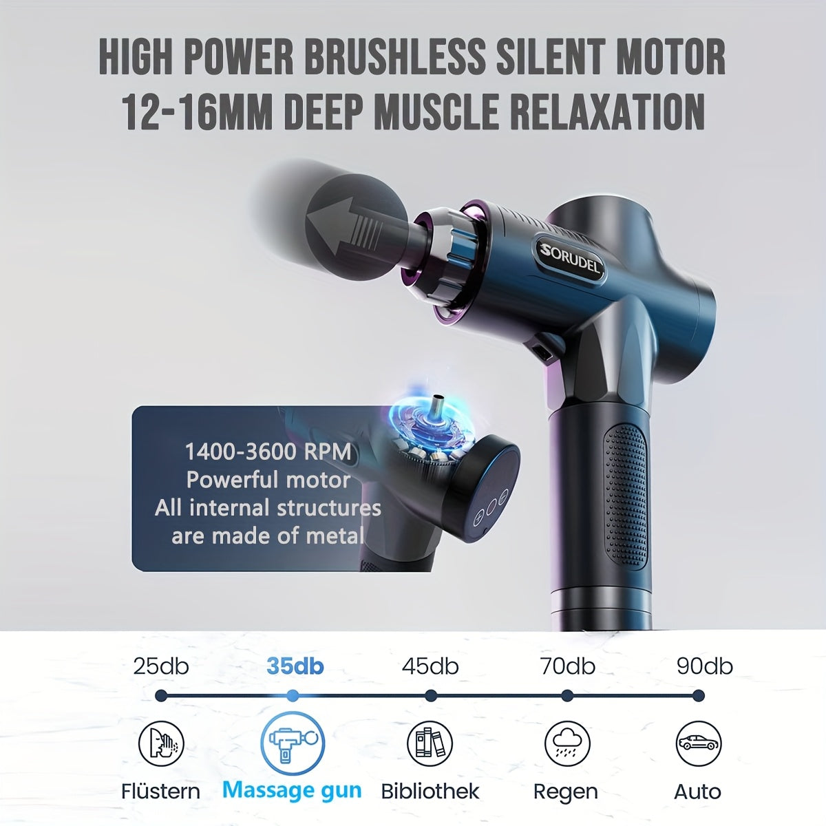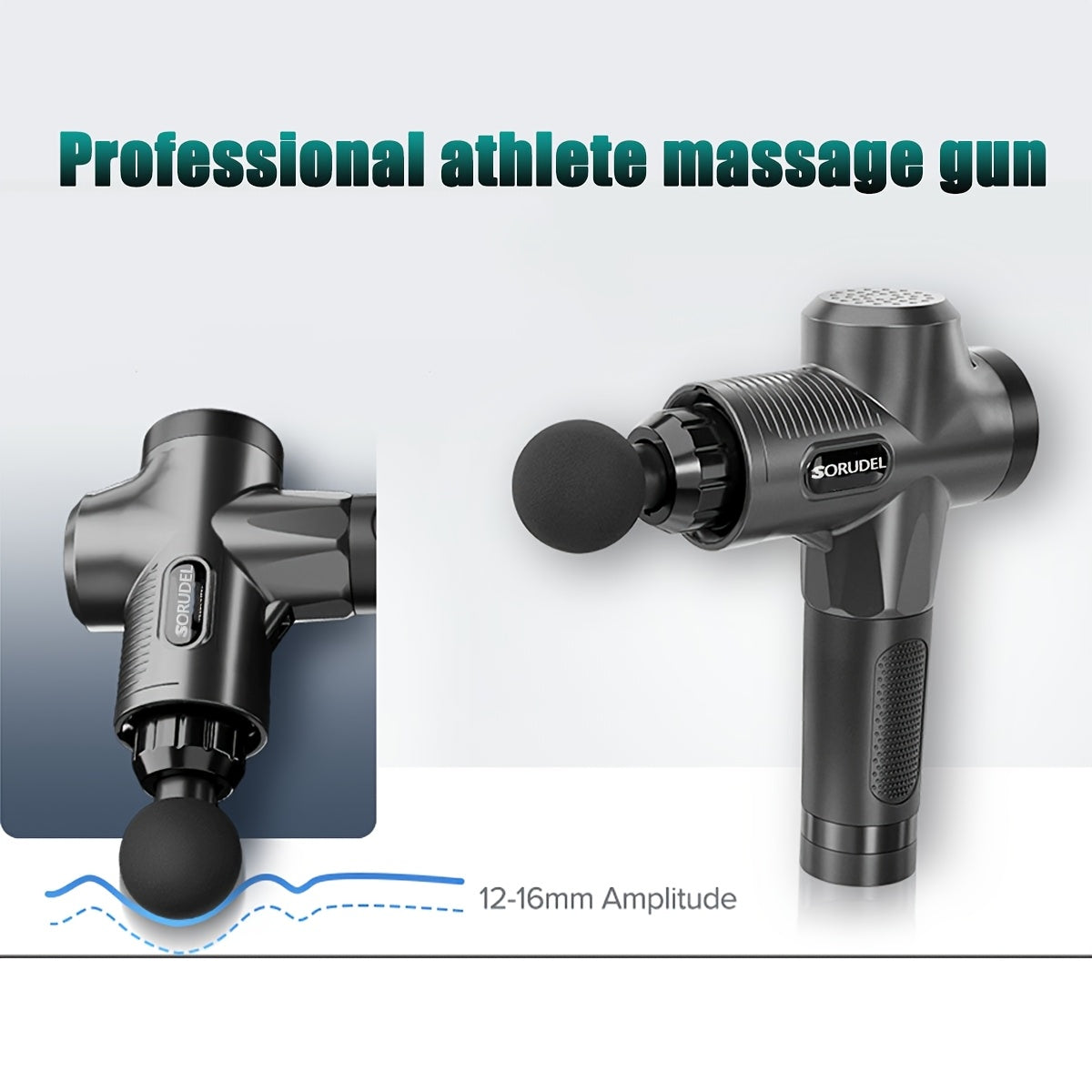 SORUDEL Pistola Massaggiante Riscaldante, Stimolatore Muscolare Elettrico Portatile con 11 Testine di Massaggio, Fascia Gun ad Alta Potenza, Motore Senza Spazzole, Ricarica Rapida USB, Include Borsa per il Trasporto, Adatto per l'Allenamento delle Gambe
