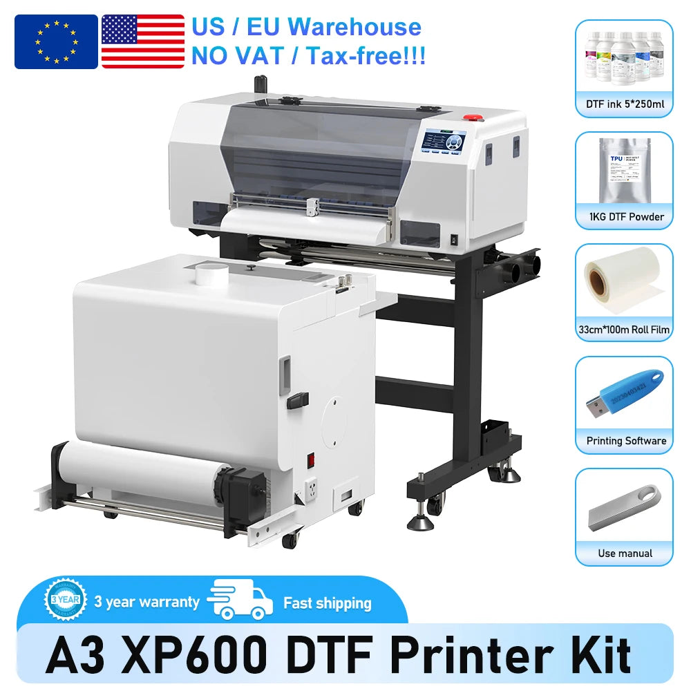 Stampante XP600 DTF + forno A3 + 250 ml *5 inchiostro + 1 kg di polvere + pellicola in rotolo da 100 m + software di stampa RFID + istruzioni video + portarotolo