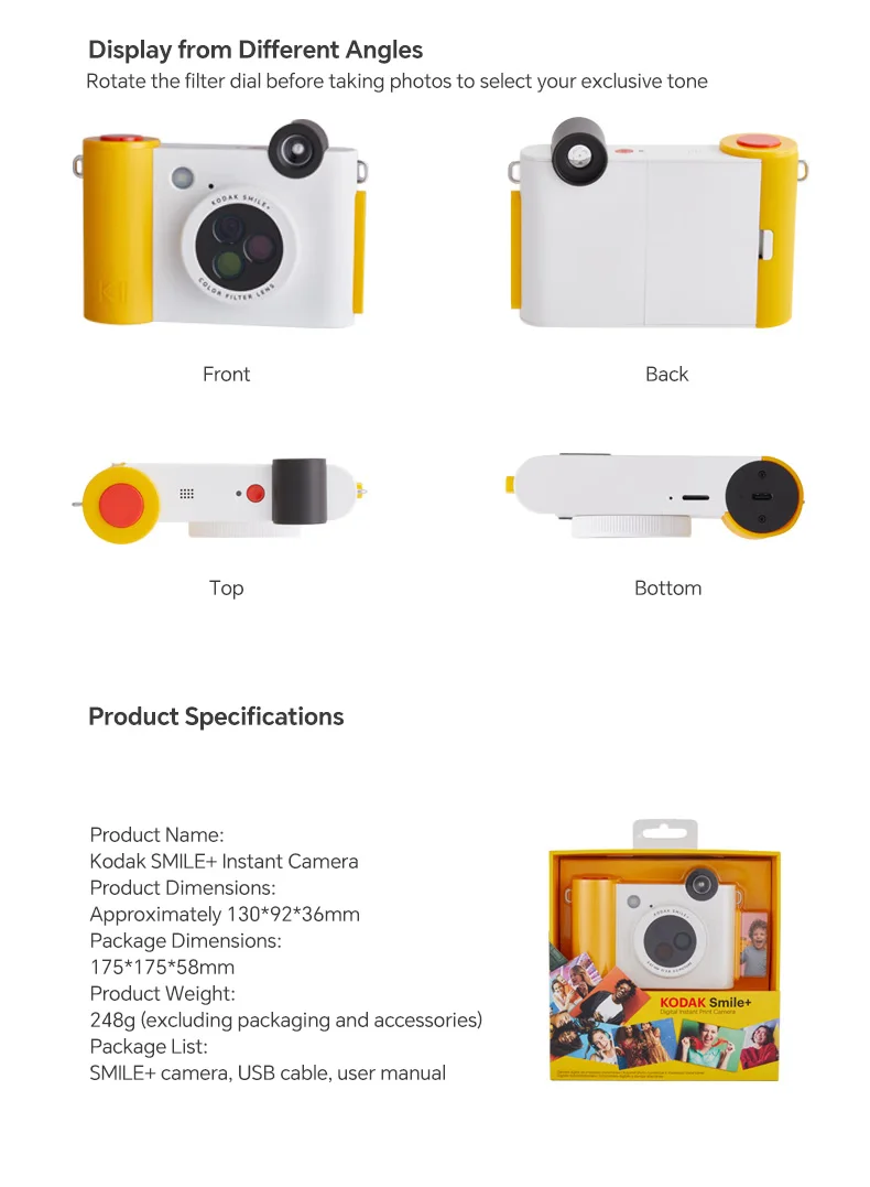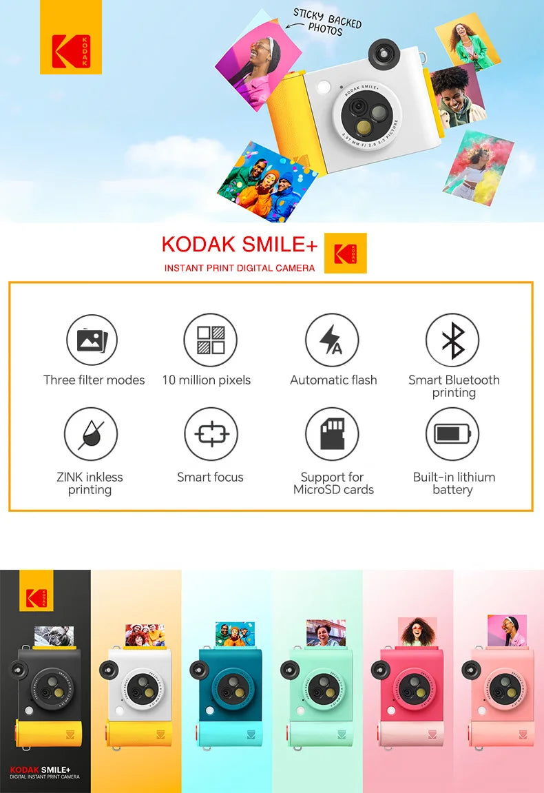 Stampante fotografica Kodak Smile+ Instant Camera da 10 MP con fotocamera e stampante All-in-One Stampa senza inchiostro ZINK Carta fotografica opzionale