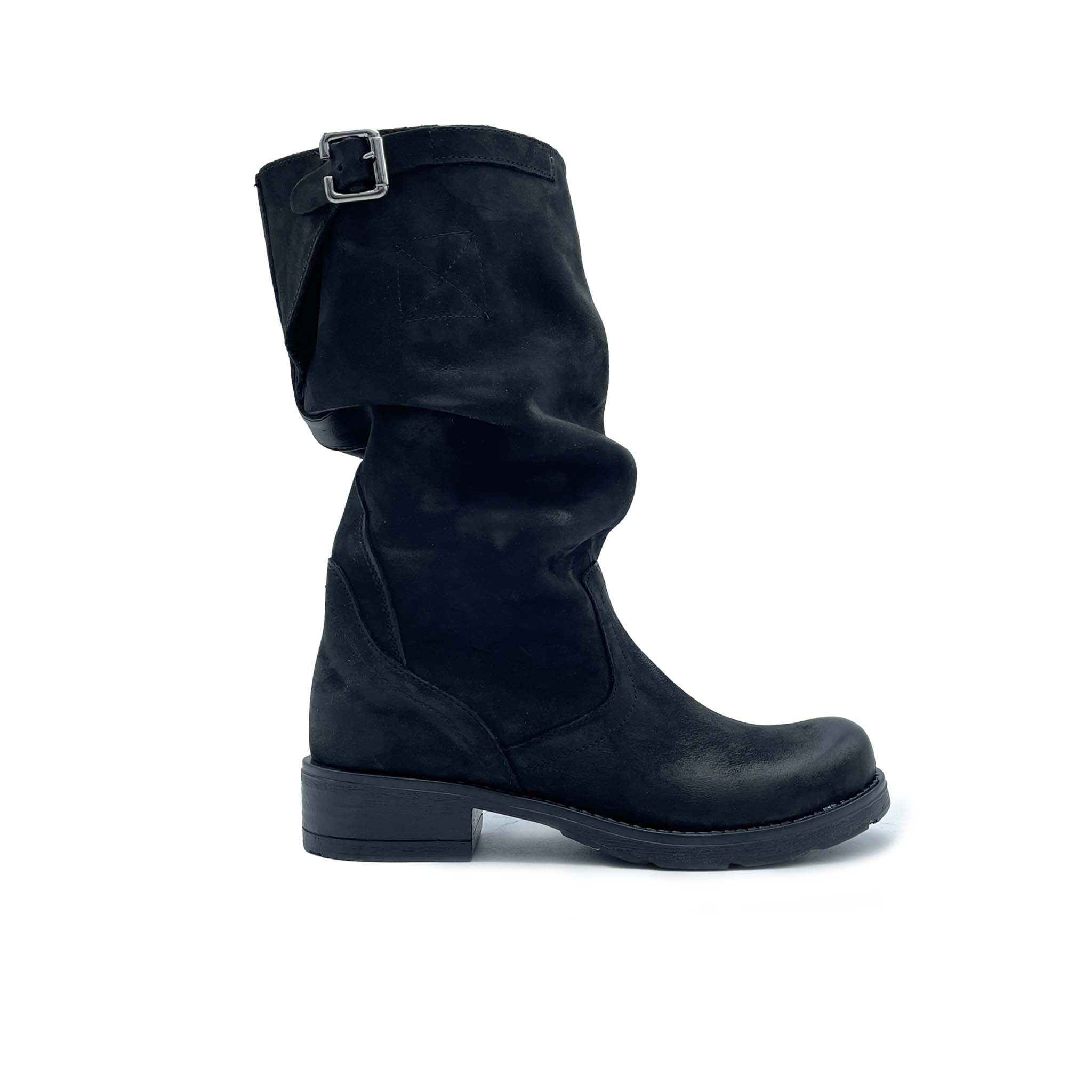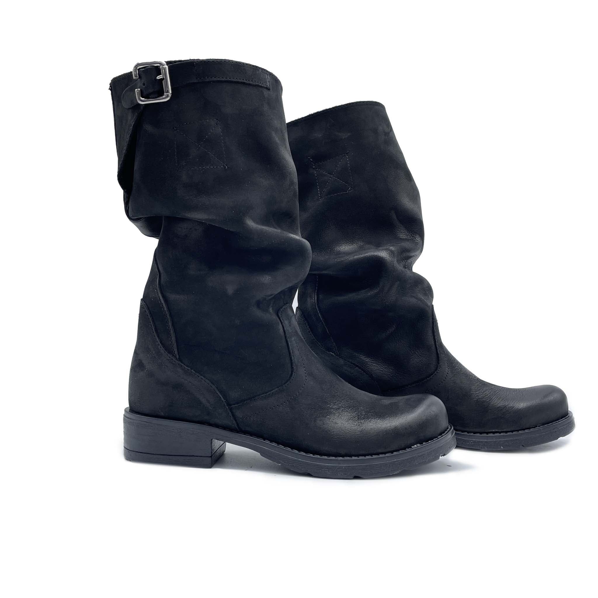 Biker al Polpaccio in Nabuk Nero sfumato - Eccellenza e Stile Firmato Vyjoù
