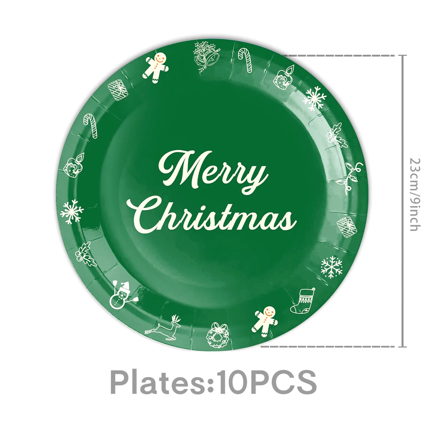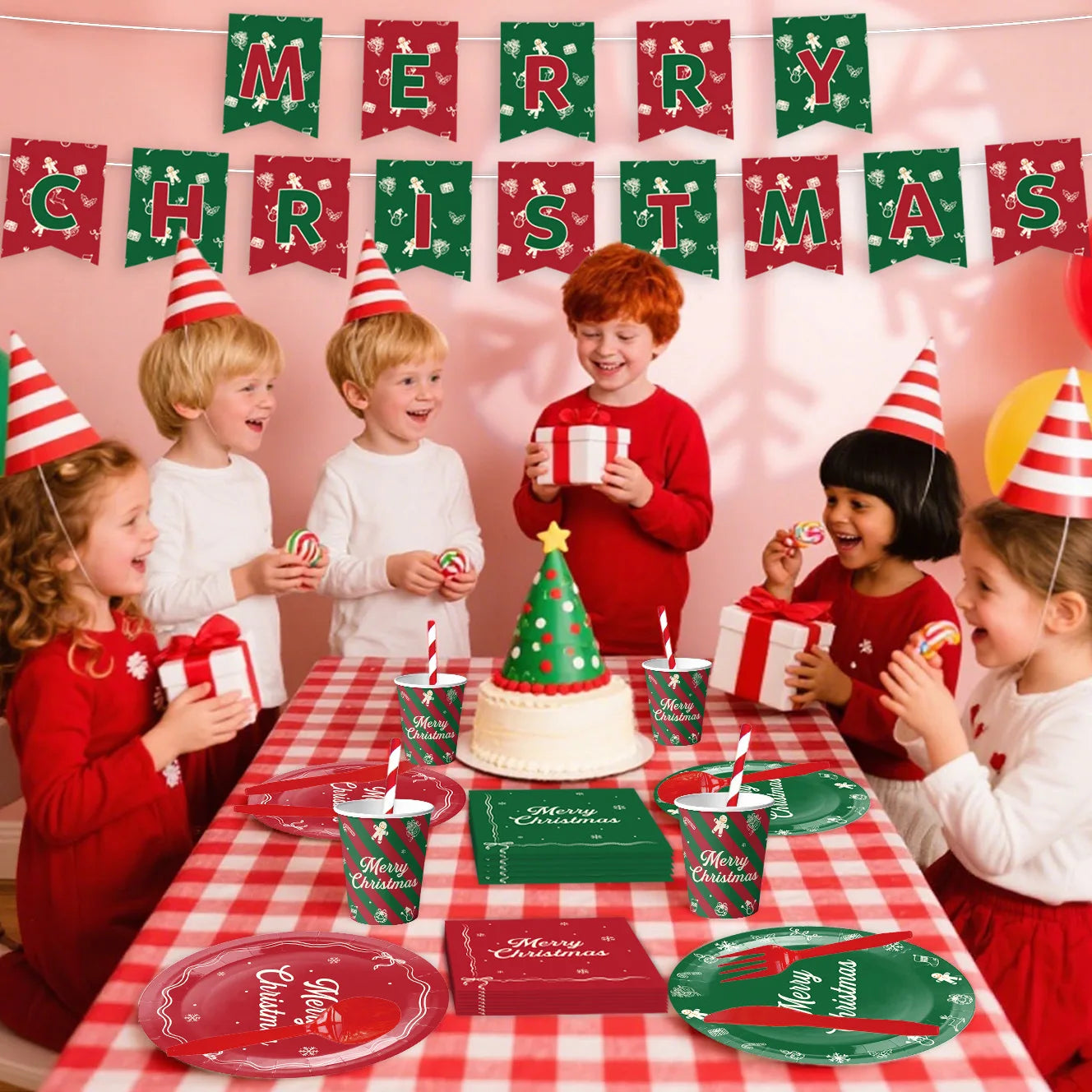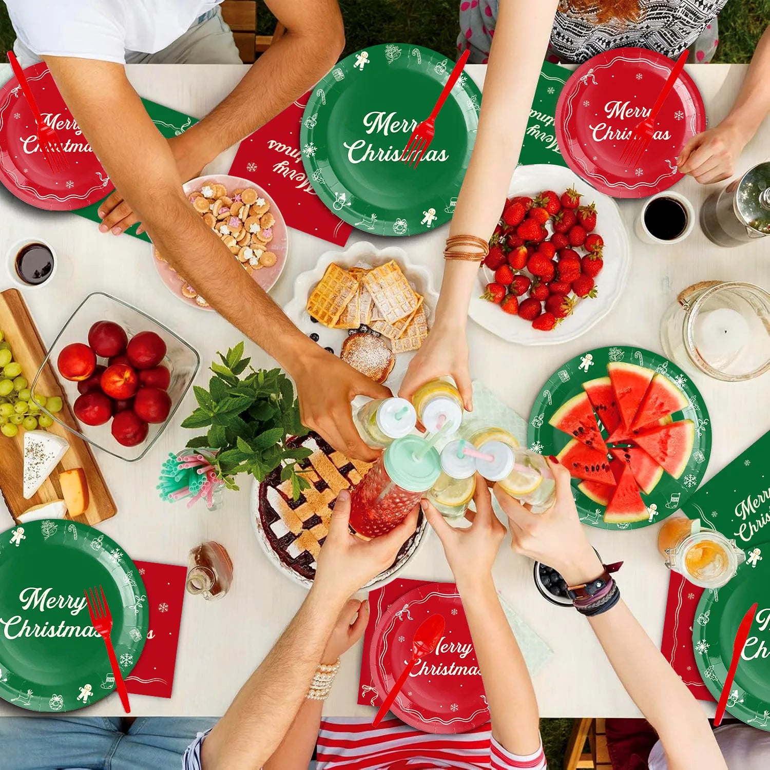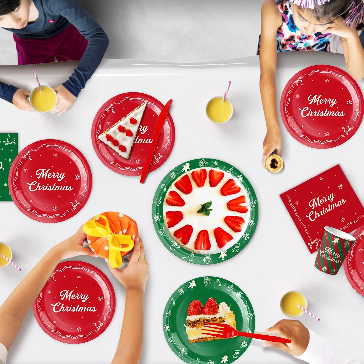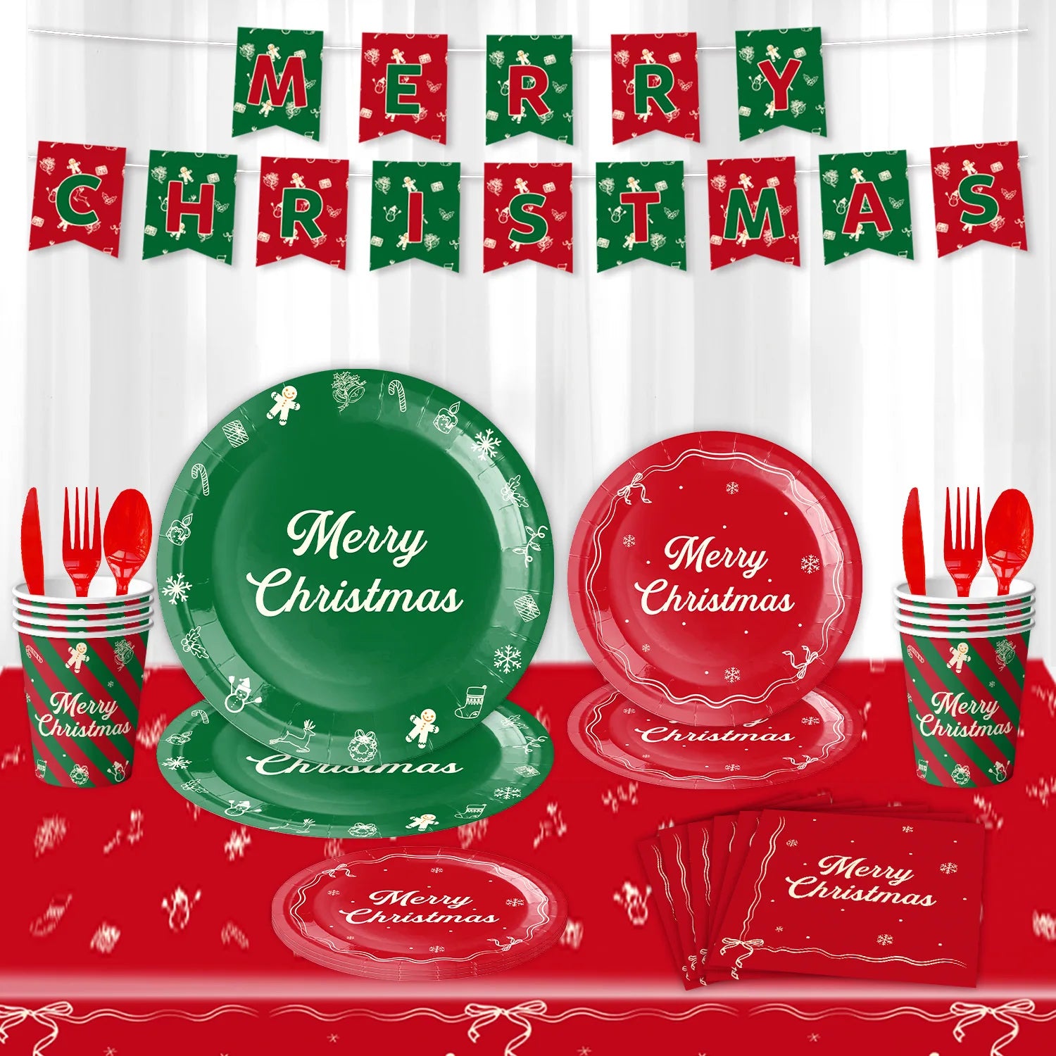 Stoviglie usa e getta a tema natalizio Piatti di carta rosso verde Tazze Tovaglioli Tovaglia Forniture per decorazioni per feste di buon Natale