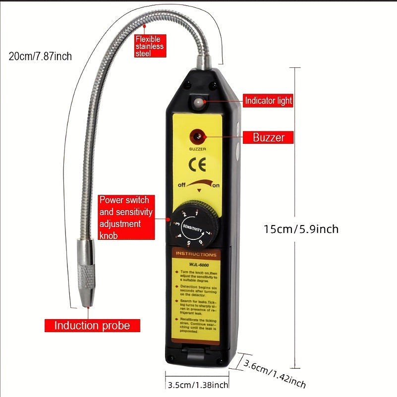 Strumento di rilevamento gas refrigerante, adatto per R22 R410A R134A R1234YF CFCs HCFCs HFC, rilevatore perdite gas con sonde flessibili e indicatori LED, ideale per manutenzione condizionatori, riparazioni auto e industria