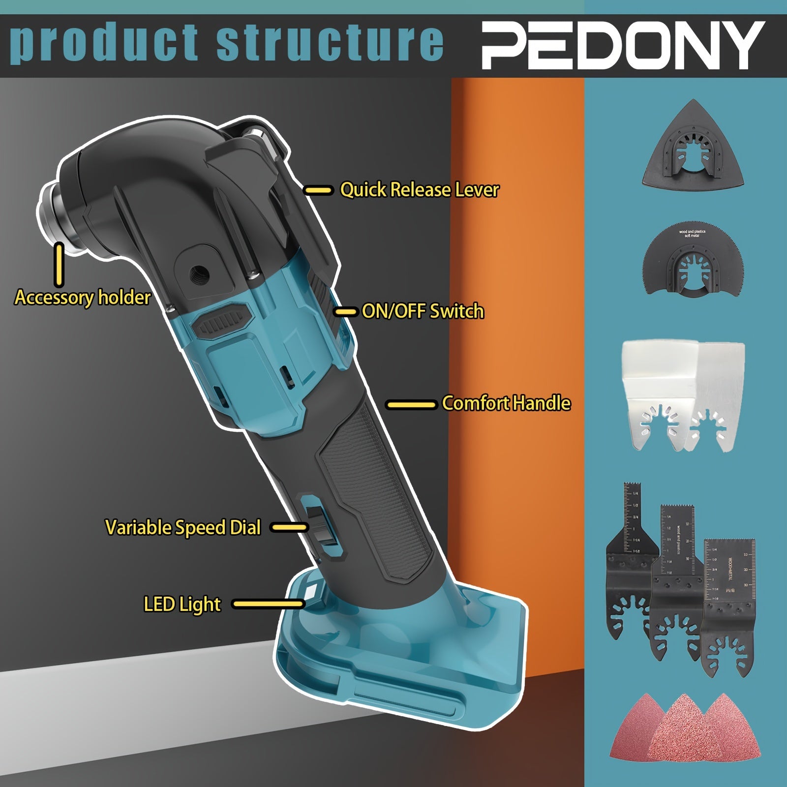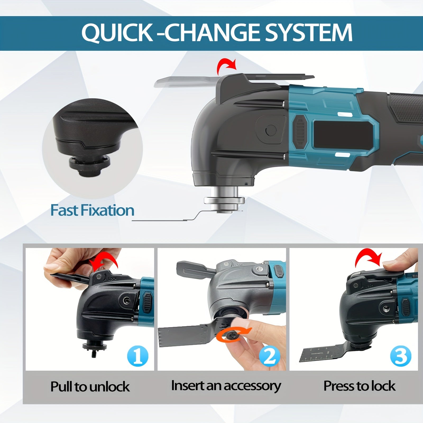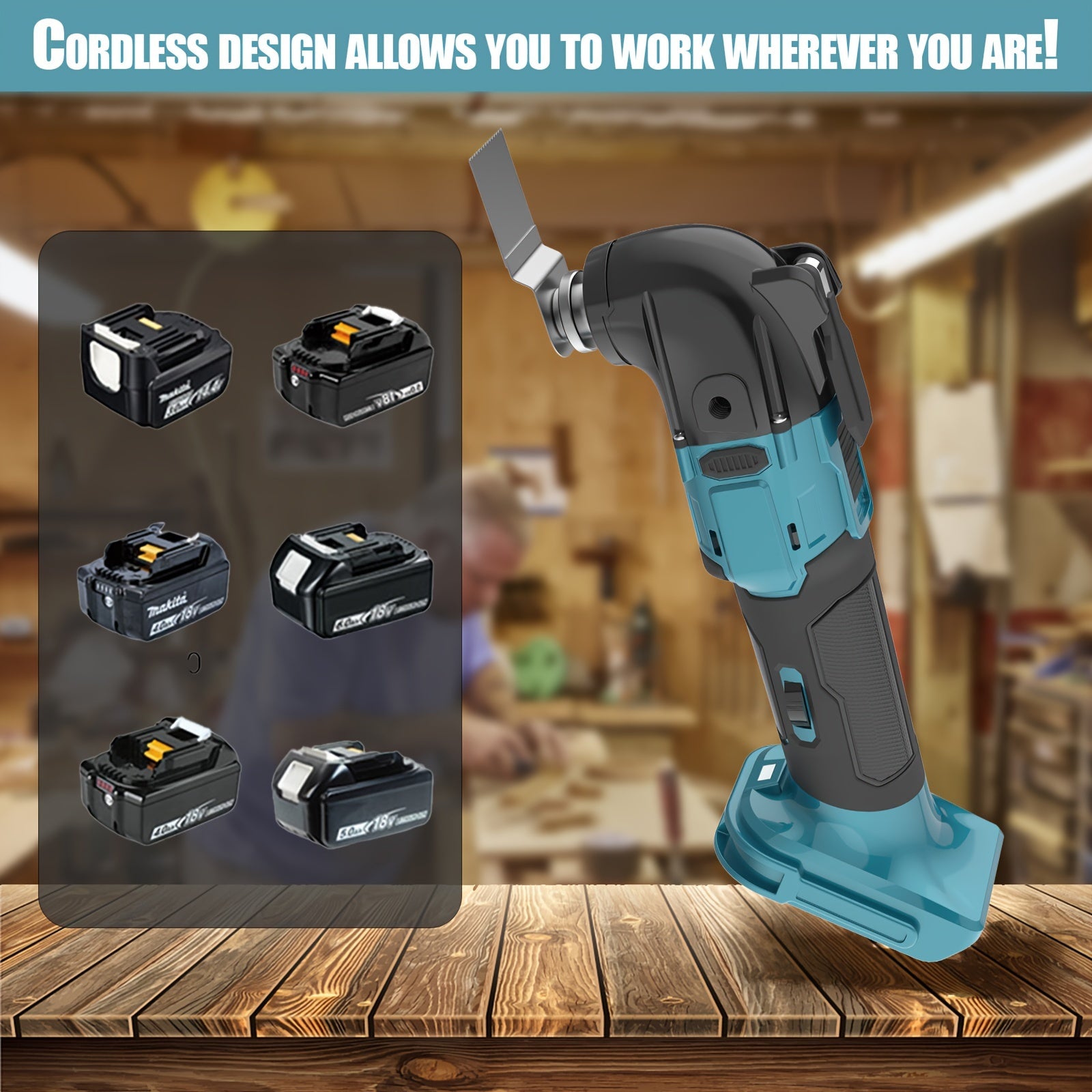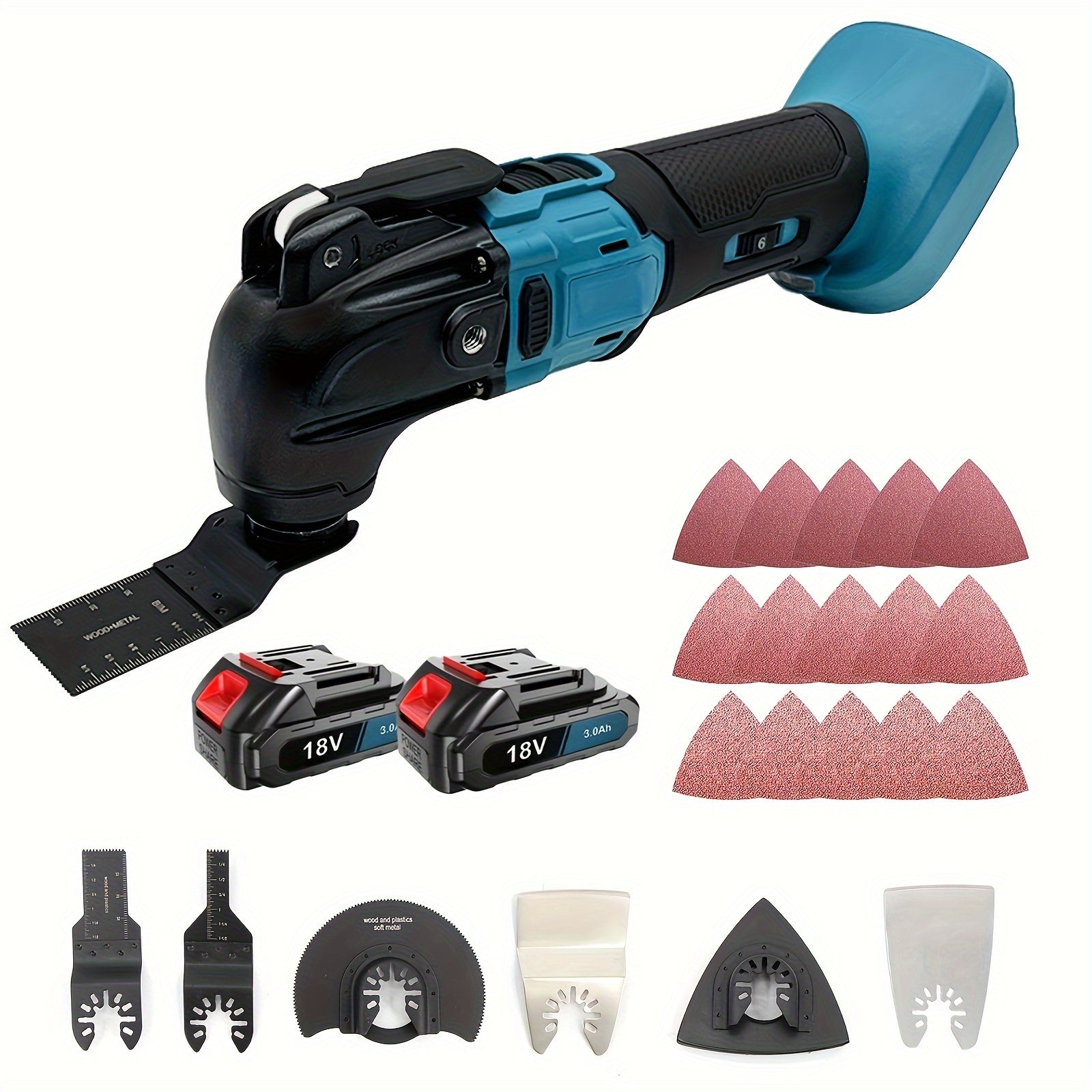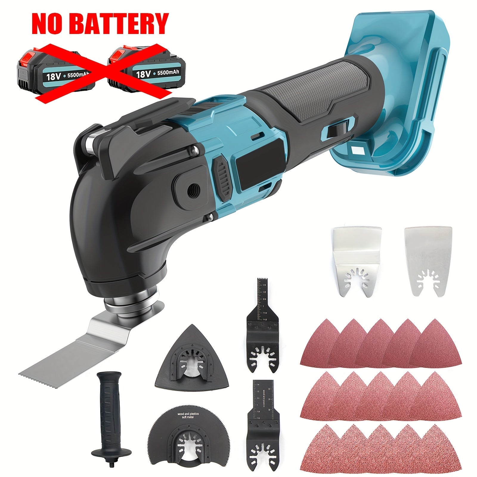 Strumento multiuso oscillante senza spazzole, strumenti multiuso oscillanti senza fili da 18 V con 2 batterie al litio, 6 velocità variabili, angolo di oscillazione di 4°, lama rapida, 22 accessori, nota: Multi-attibuto (2 batterie/batteria no)