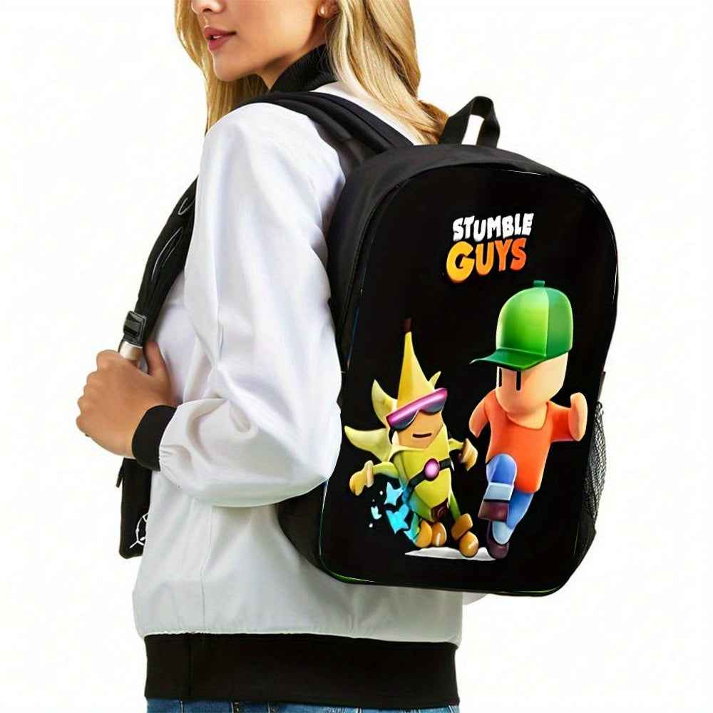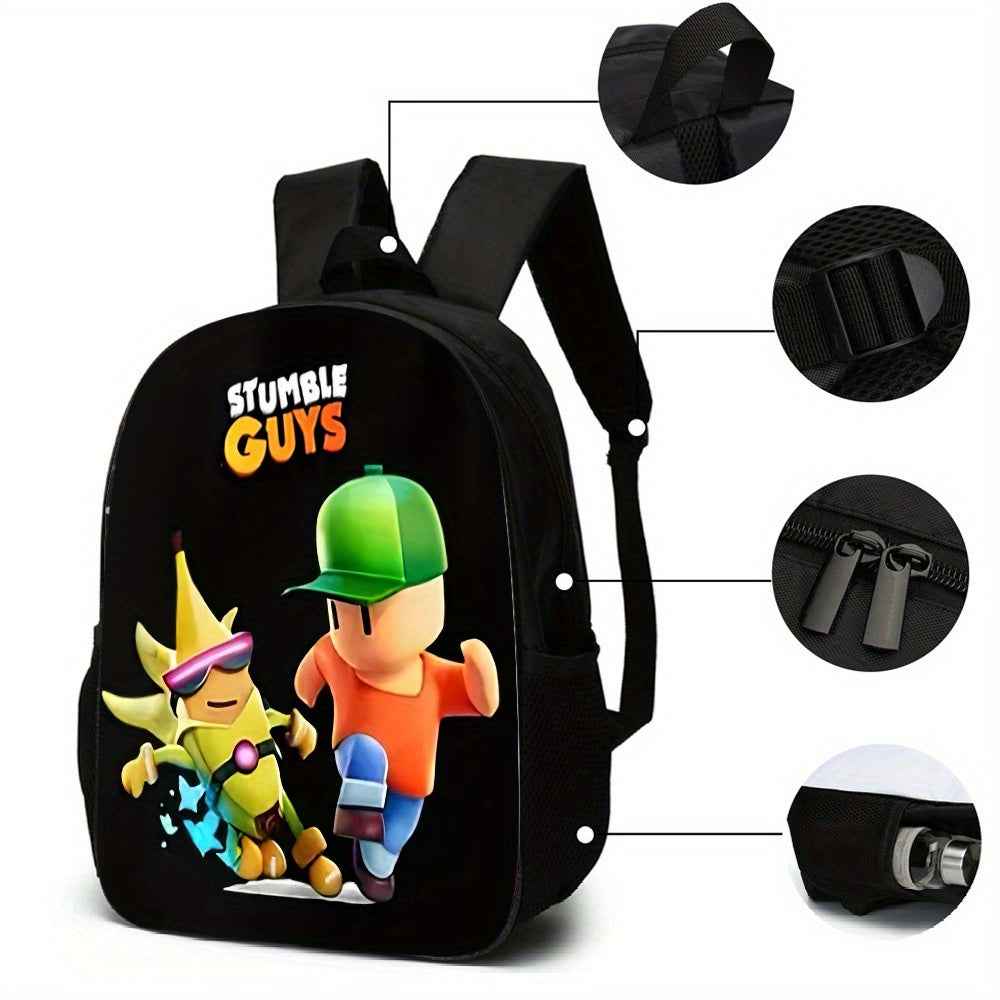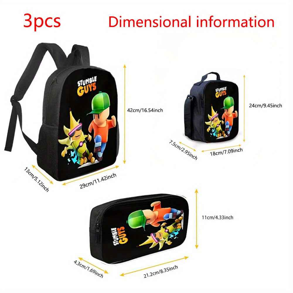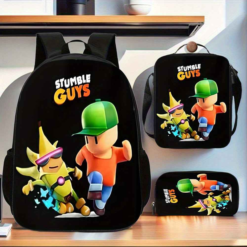 Stumble Guys Set di 3 Pezzi Zaino alla Moda, Borsa Pranzo e Astuccio per Matite con Spallacci Regolabili e Borsetta con Cerniera a Grande Capacità, Set Perfetto per lo Scuola e Viaggi