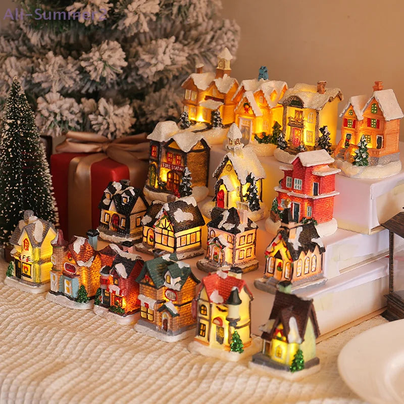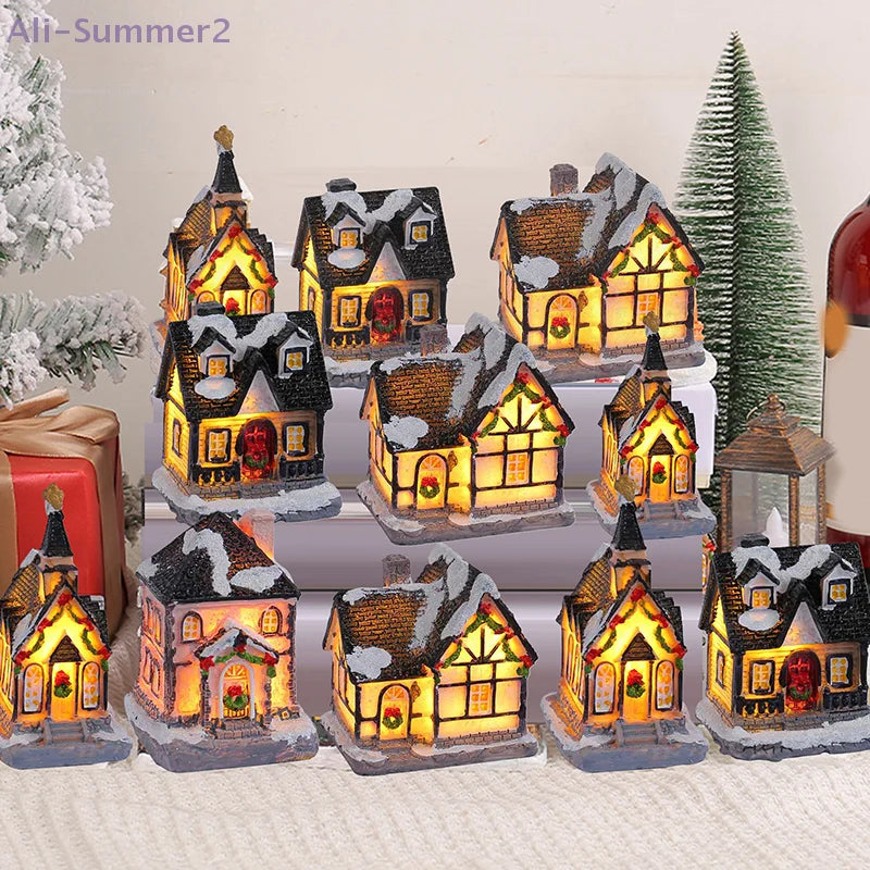 {Summer2}Mini LED Villaggio di Natale Artigianato in resina Edifici di case di neve Luce a LED Decorazione per interni domestici fai da te Regali di Natale