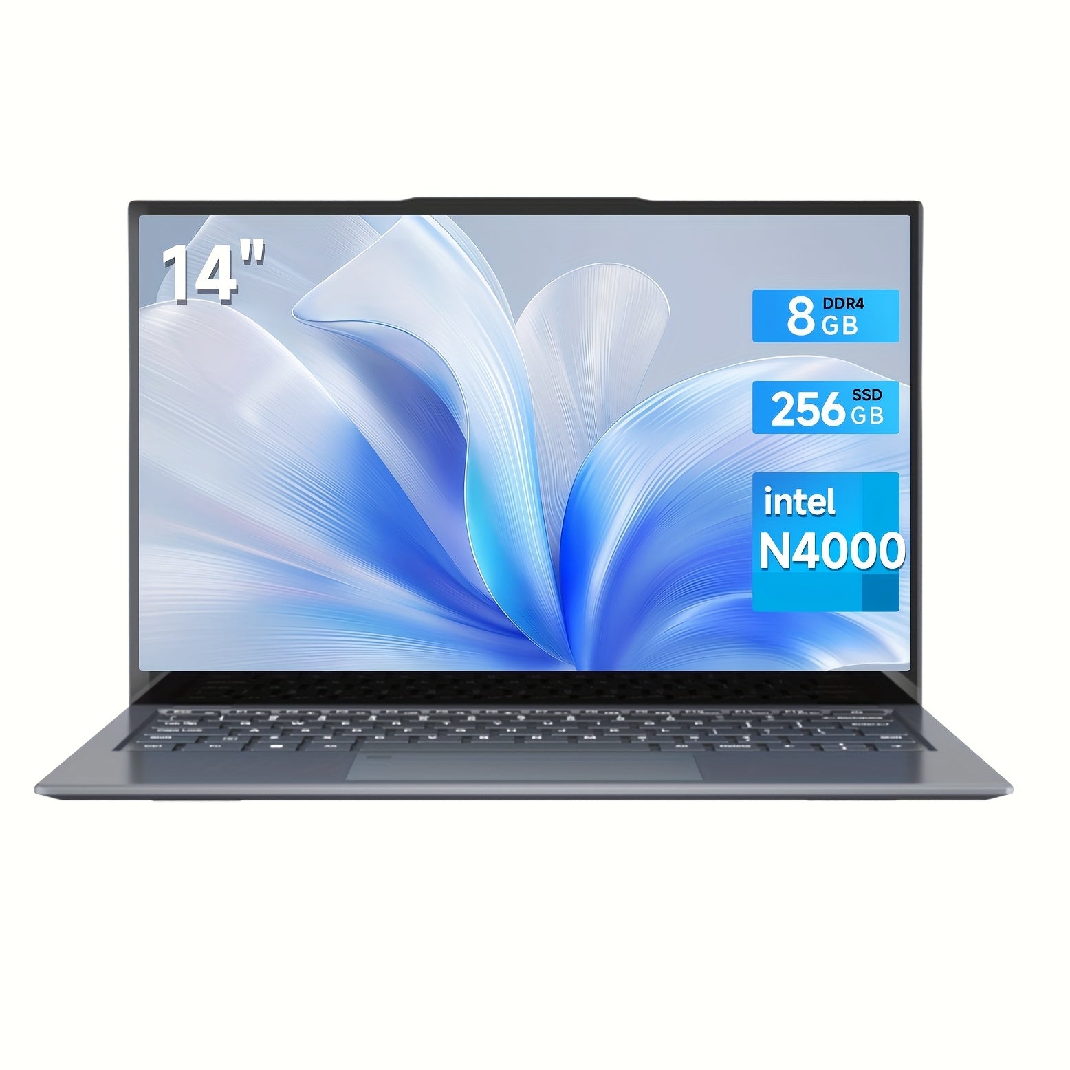 SUXI 2025 nuovo laptop da 14 pollici N4000 2.6GHz 8GB+256GB batteria da 5000mAh fotocamera HD per ufficio, intrattenimento, apprendimento, lezioni online, videoconferenze. Viene fornito con copritastiera, tappetino per il mouse, mouse cablato.