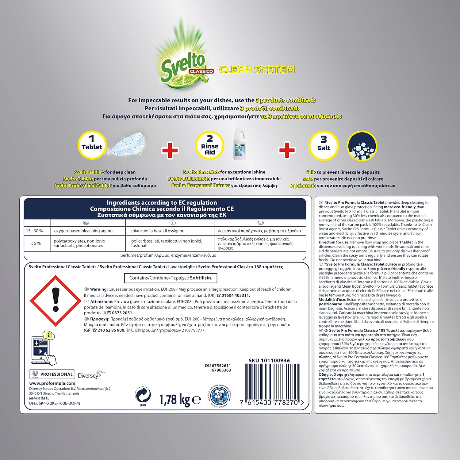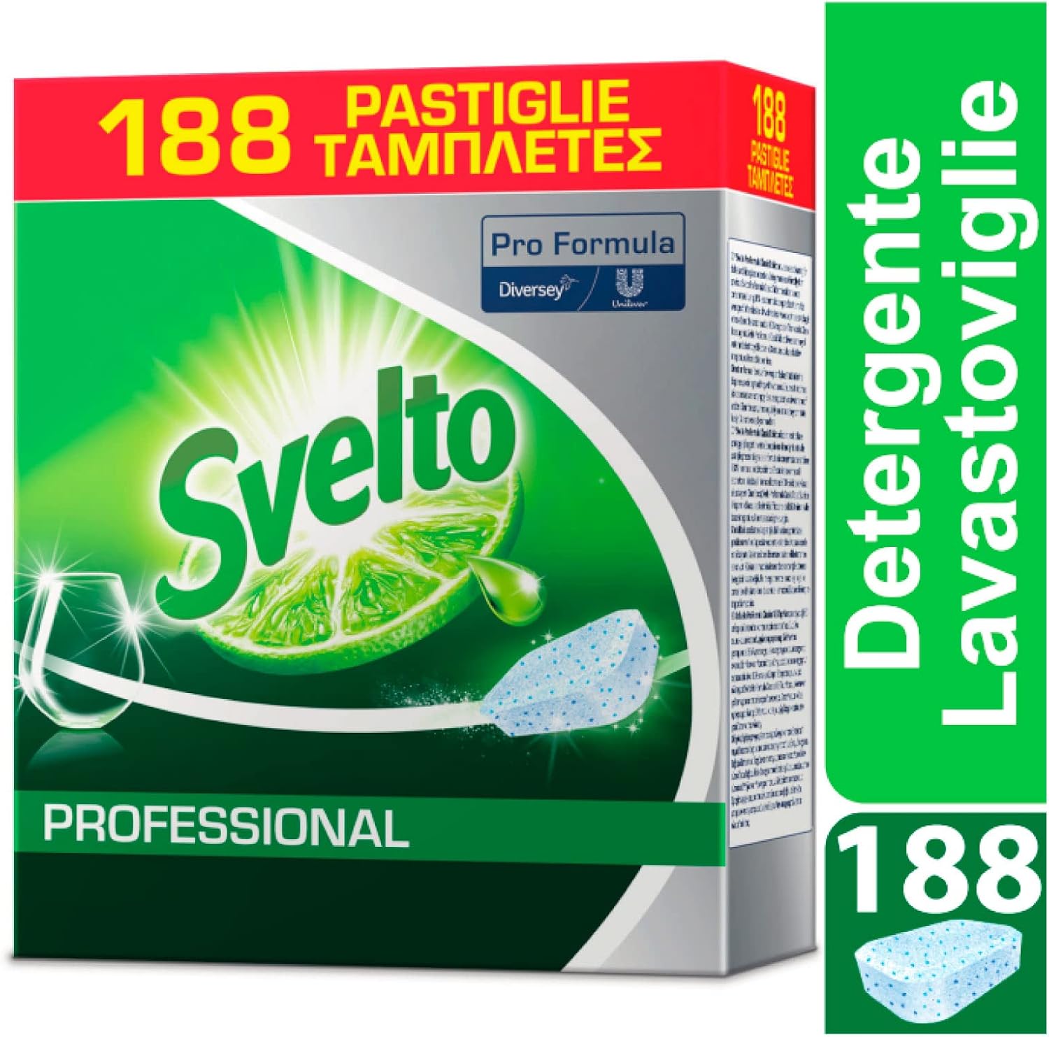 Svelto Professional Detersivo Classico in Pastiglie per Lavastoviglie Pro Formula Eco Detergente - Confezione da 188 Tabs
