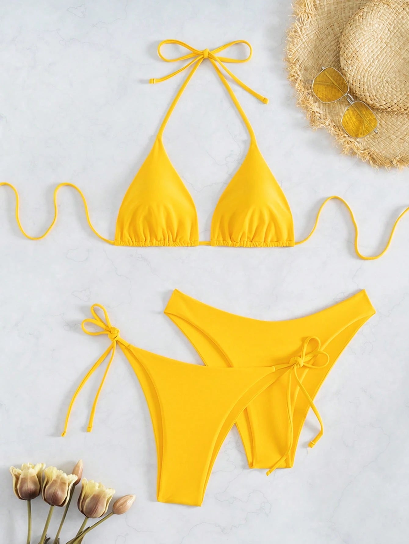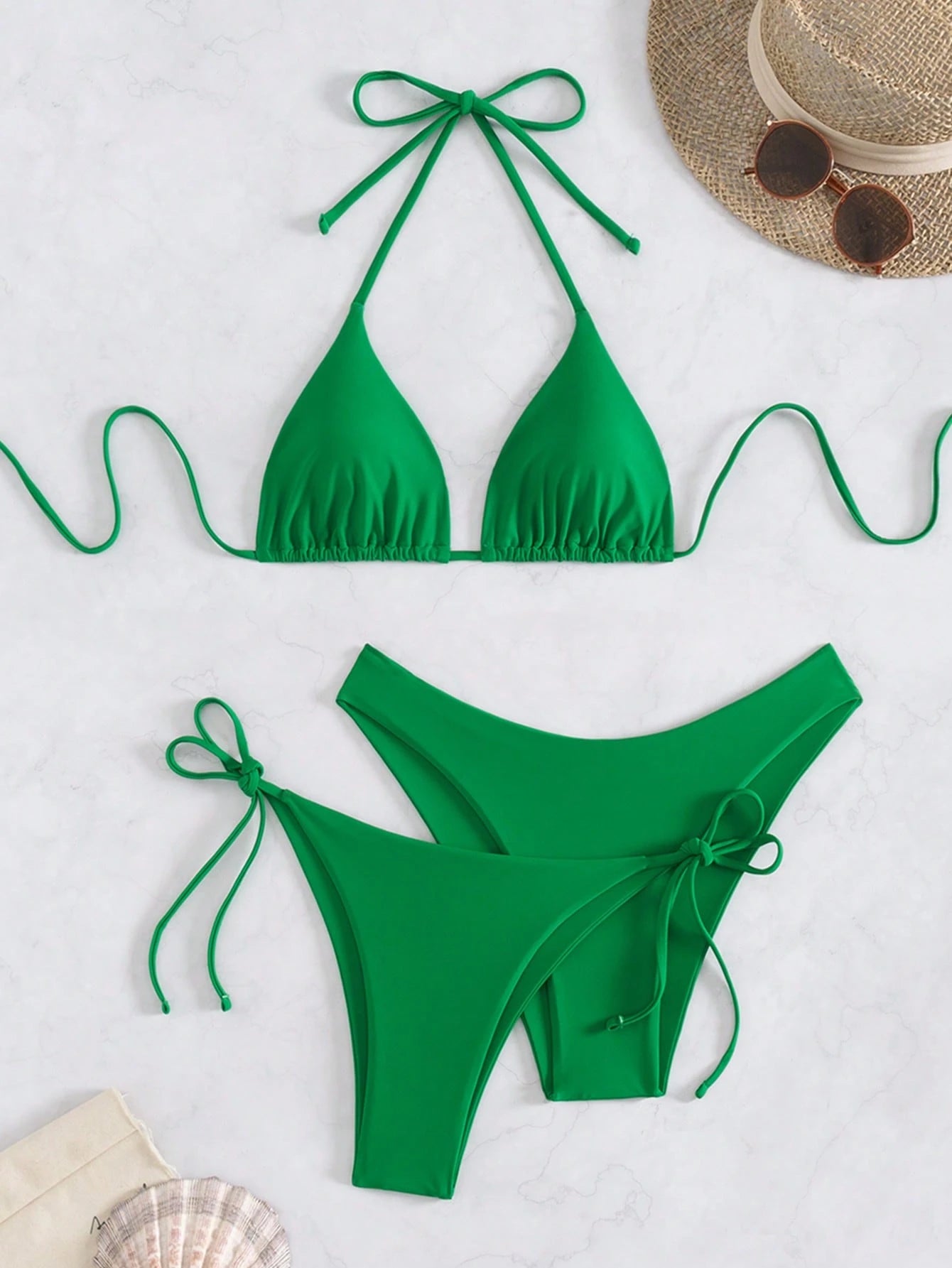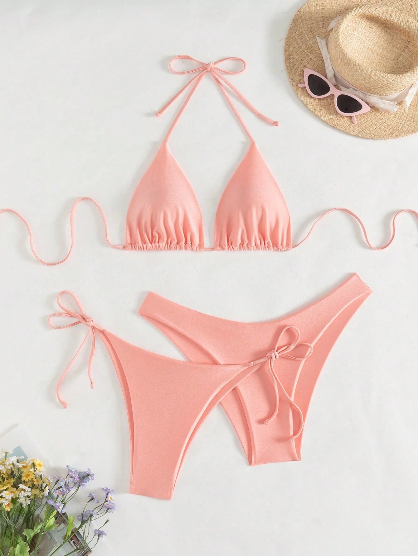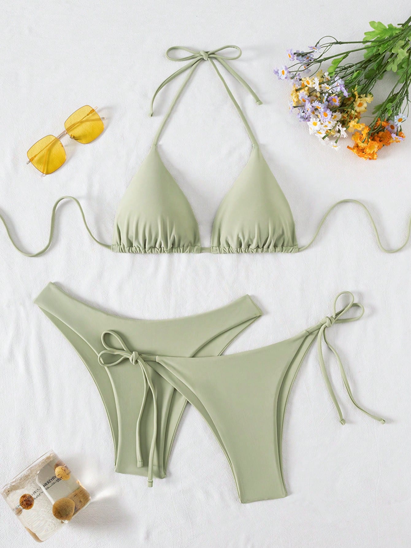 Swim Basics Summer Beach 3pcs/Set Women's Plain Bikini Set