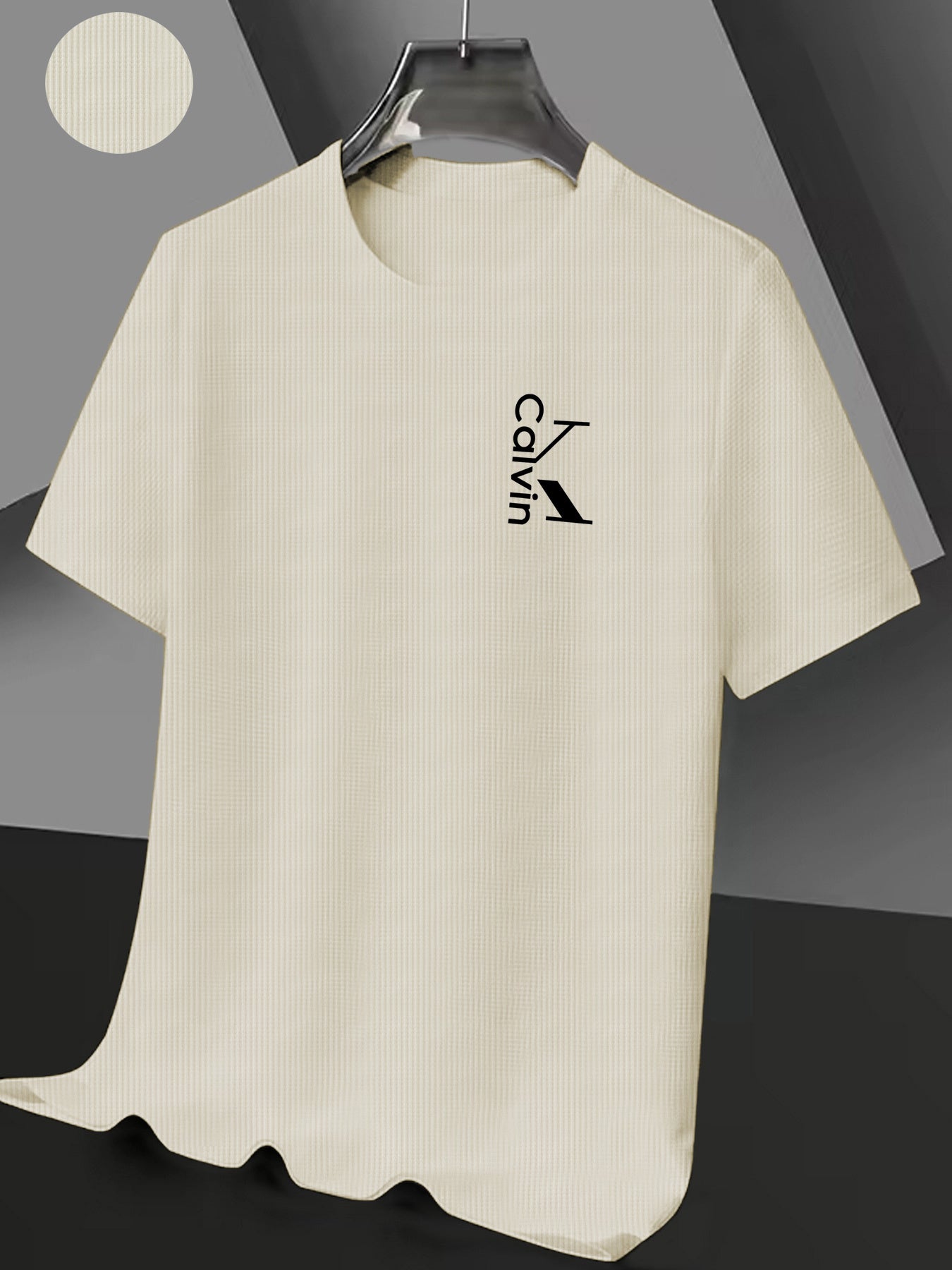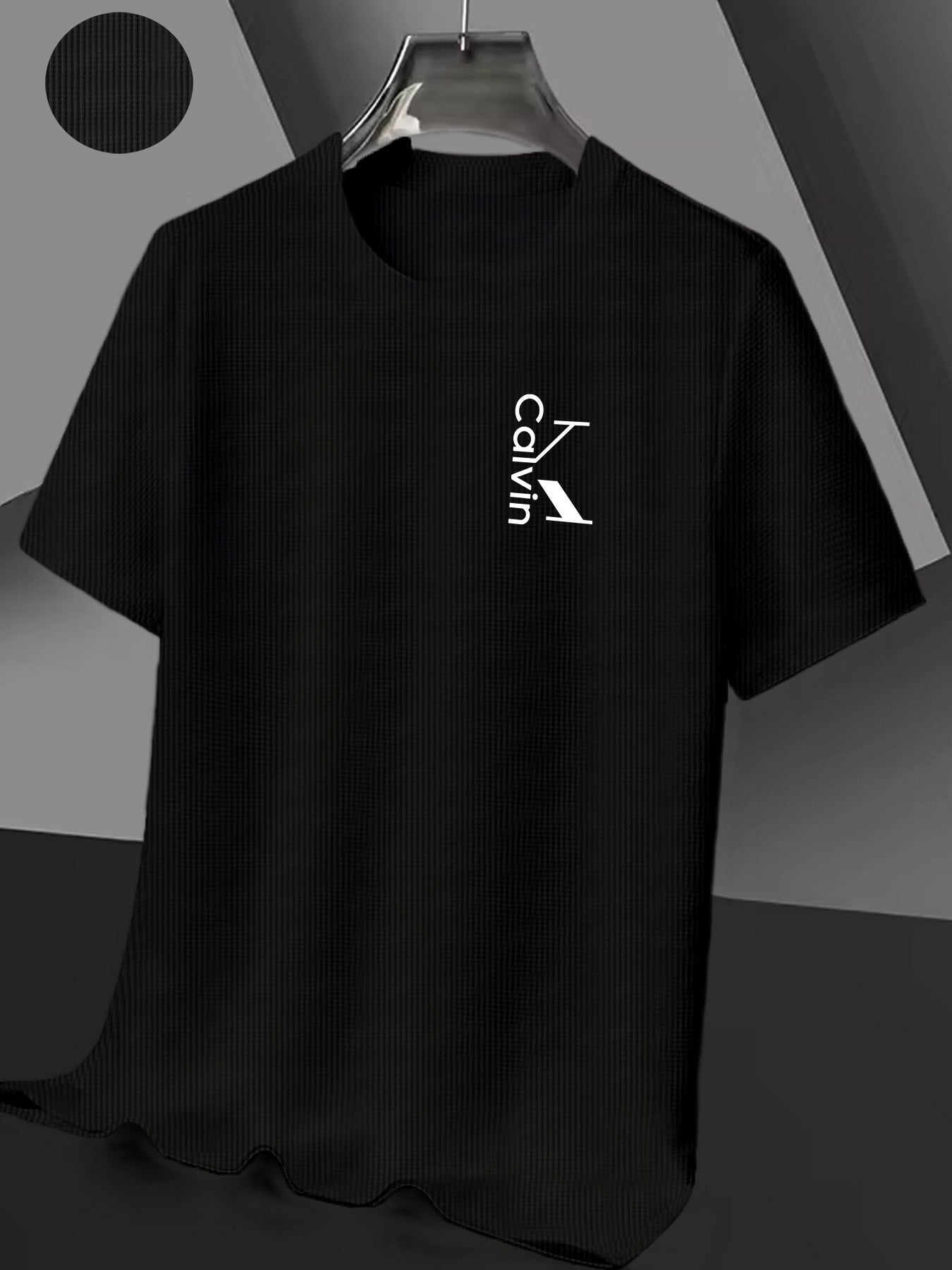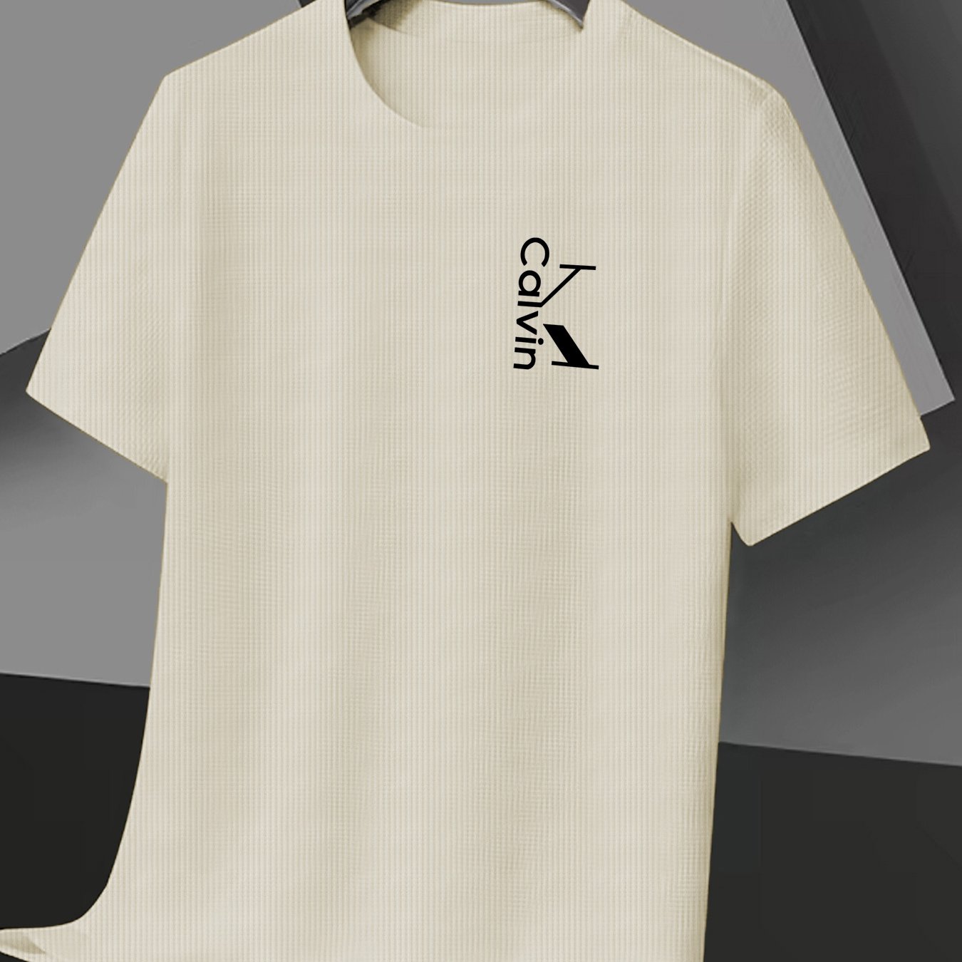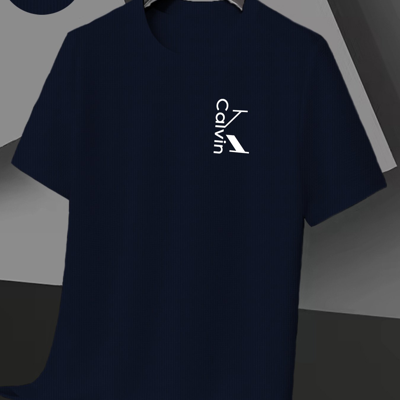 T-shirt con stampa grafica Calvin da uomo - Leggero in pizzo a quadri, abbigliamento estivo traspirante con design audace "CALVIN", collo rotondo casual a maniche corte per un look casual, t-shirt da tutti i giorni | T-shirt con grafica audace | Aderenza