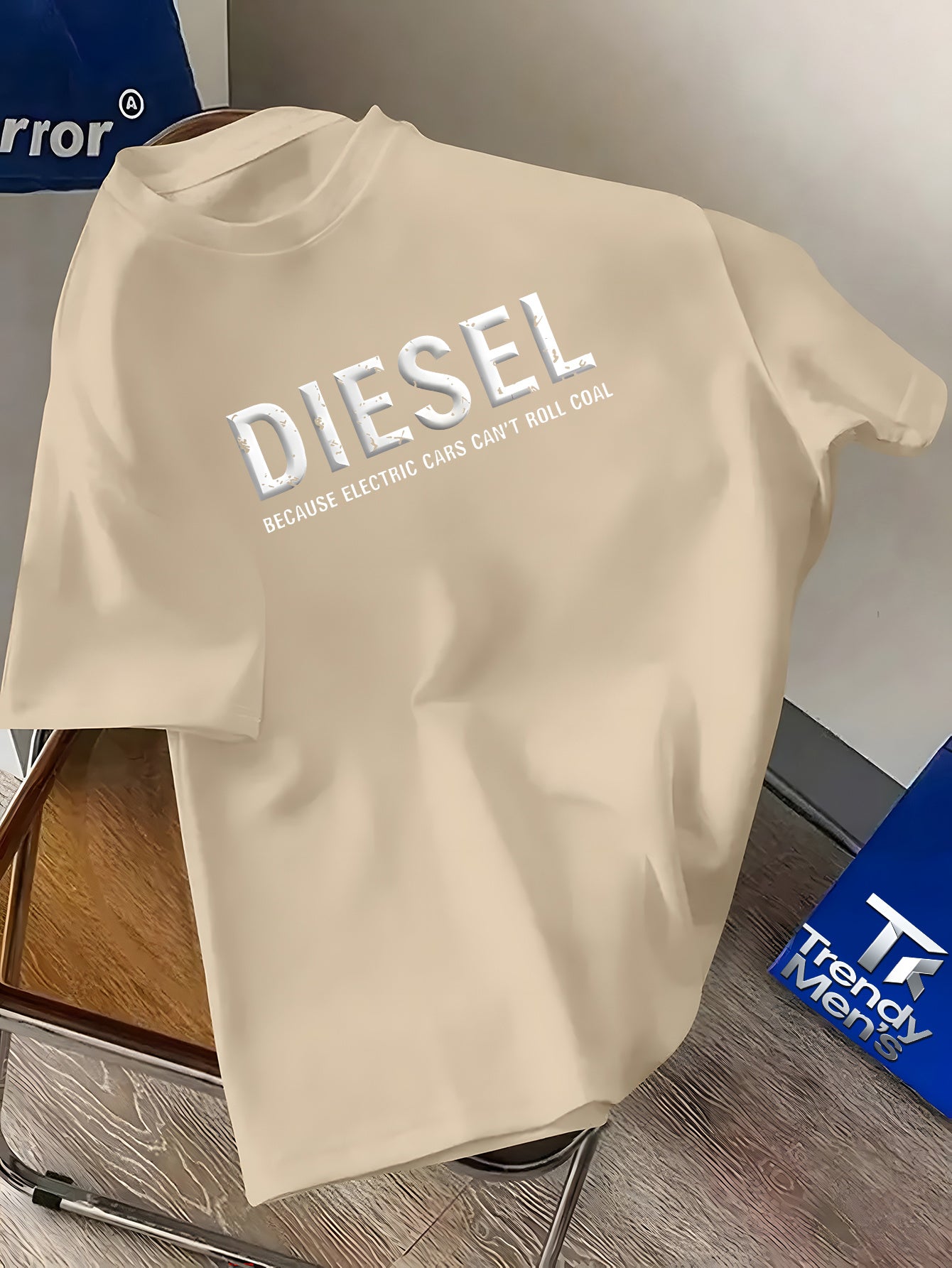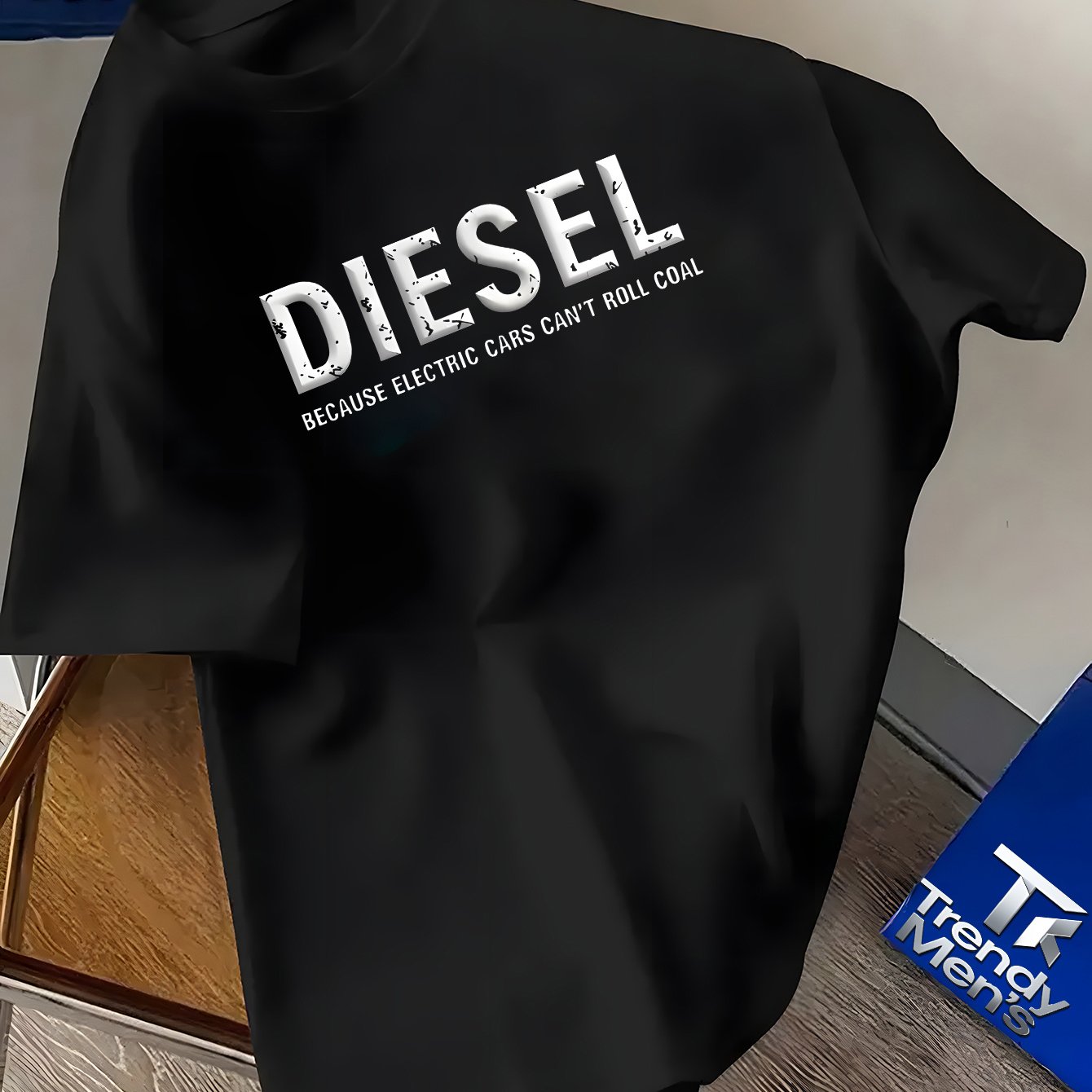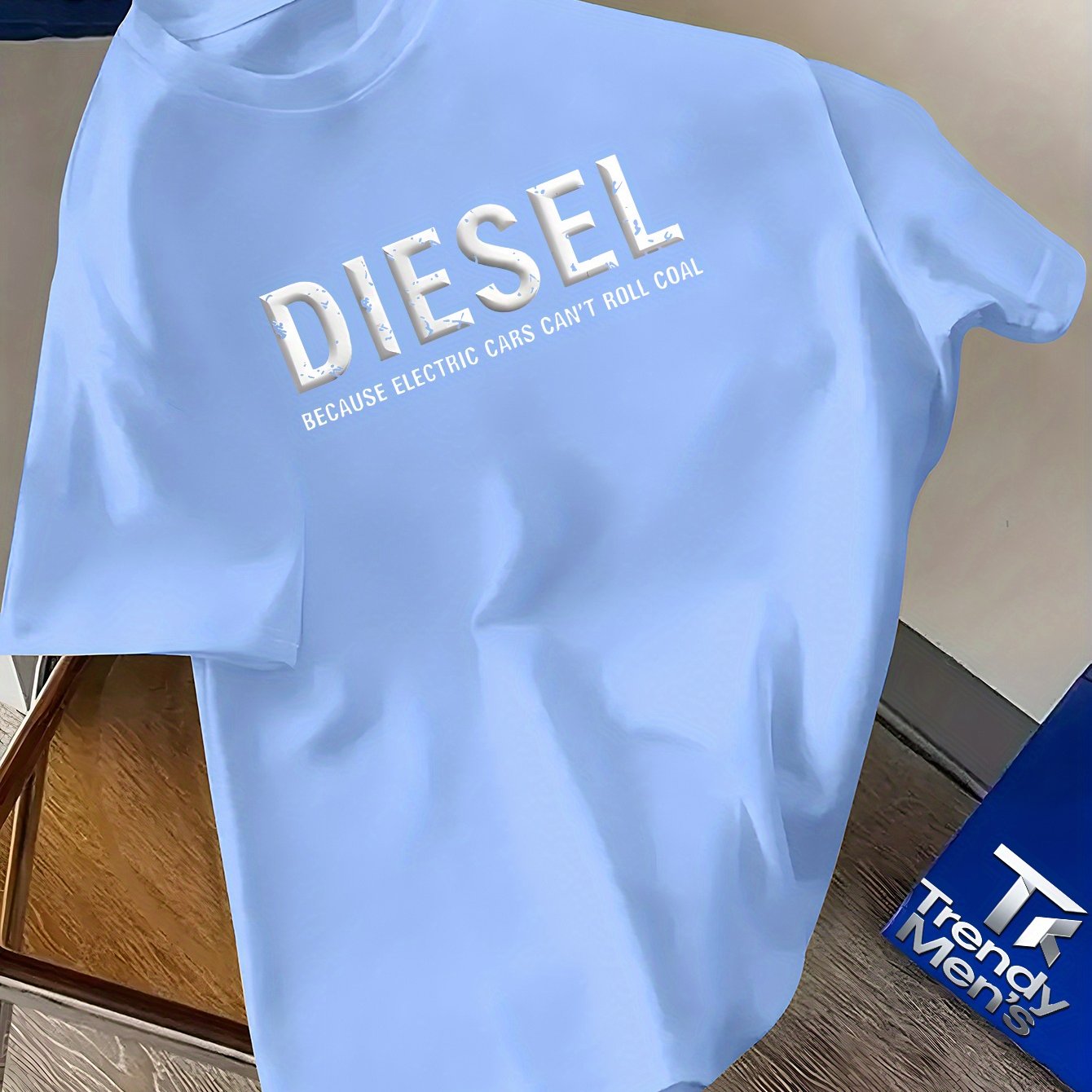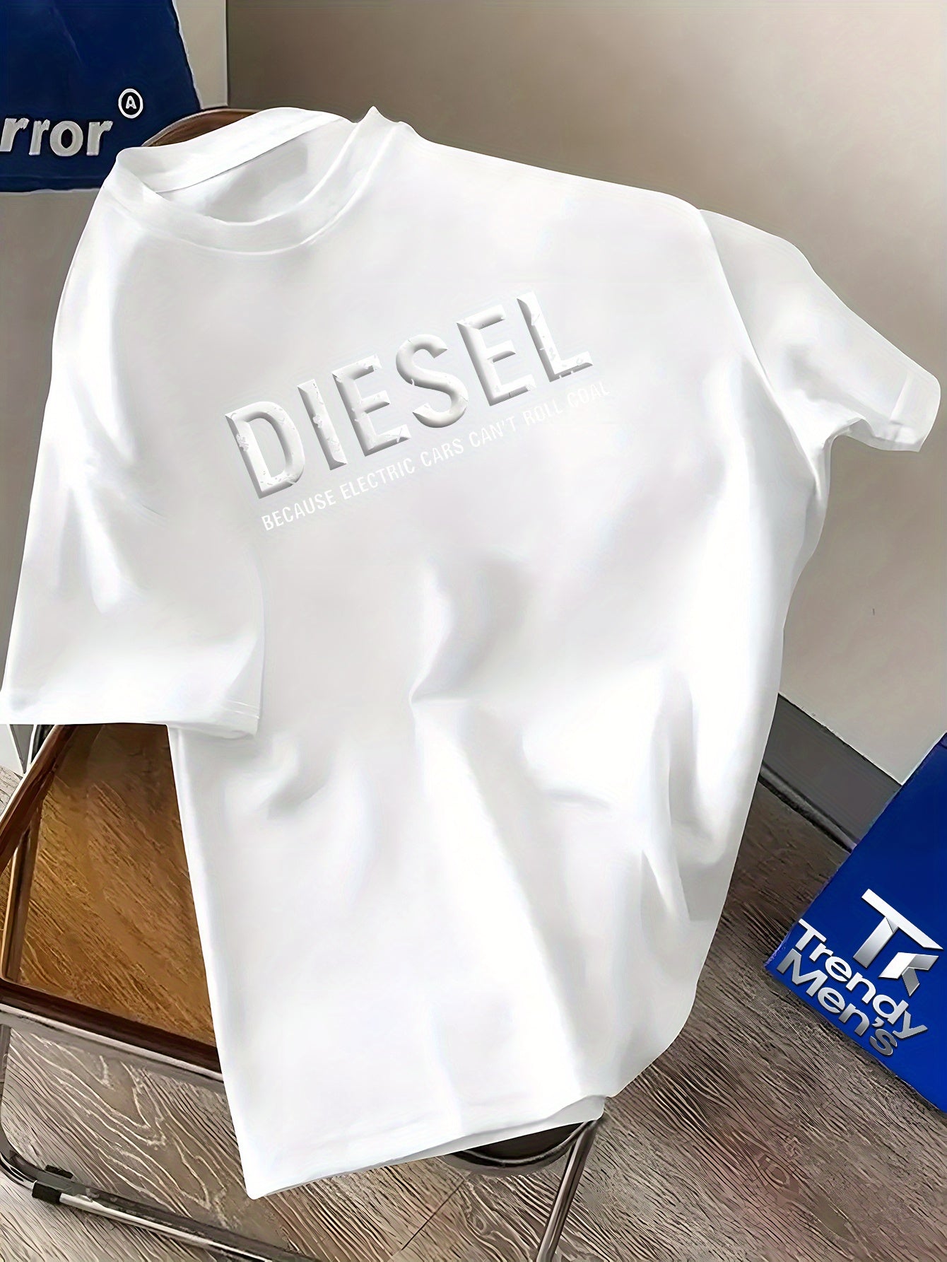 T-shirt grafica Diesel da uomo - Stampa "DIESEL", maglietta estiva casual con tessuto leggermente elasticizzato, scollo rotondo, stile sportivo, abbigliamento casual|Stile casual|Tessuto elasticizzato