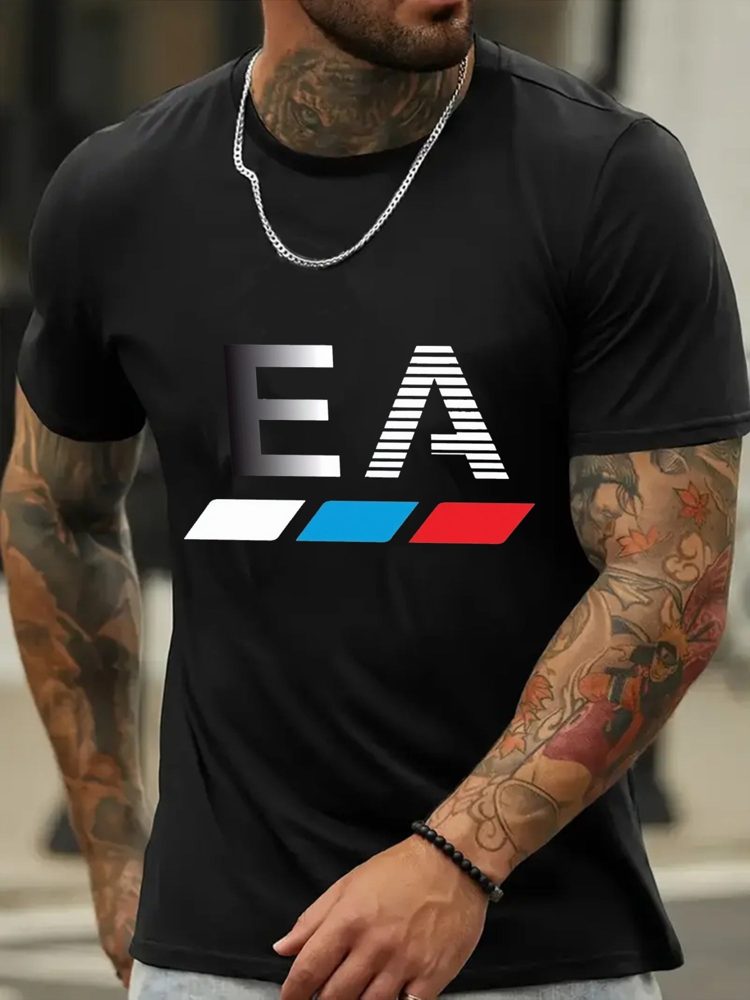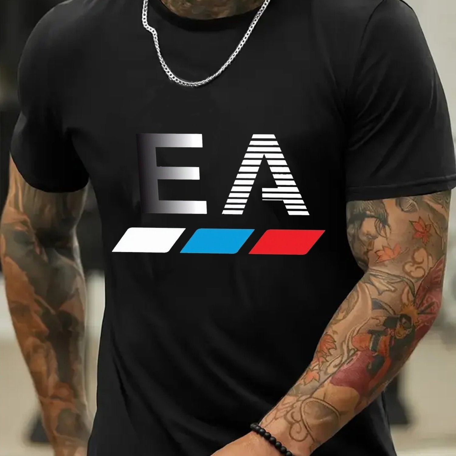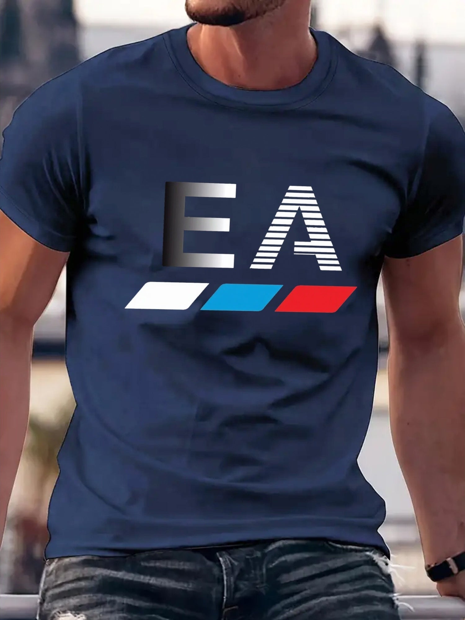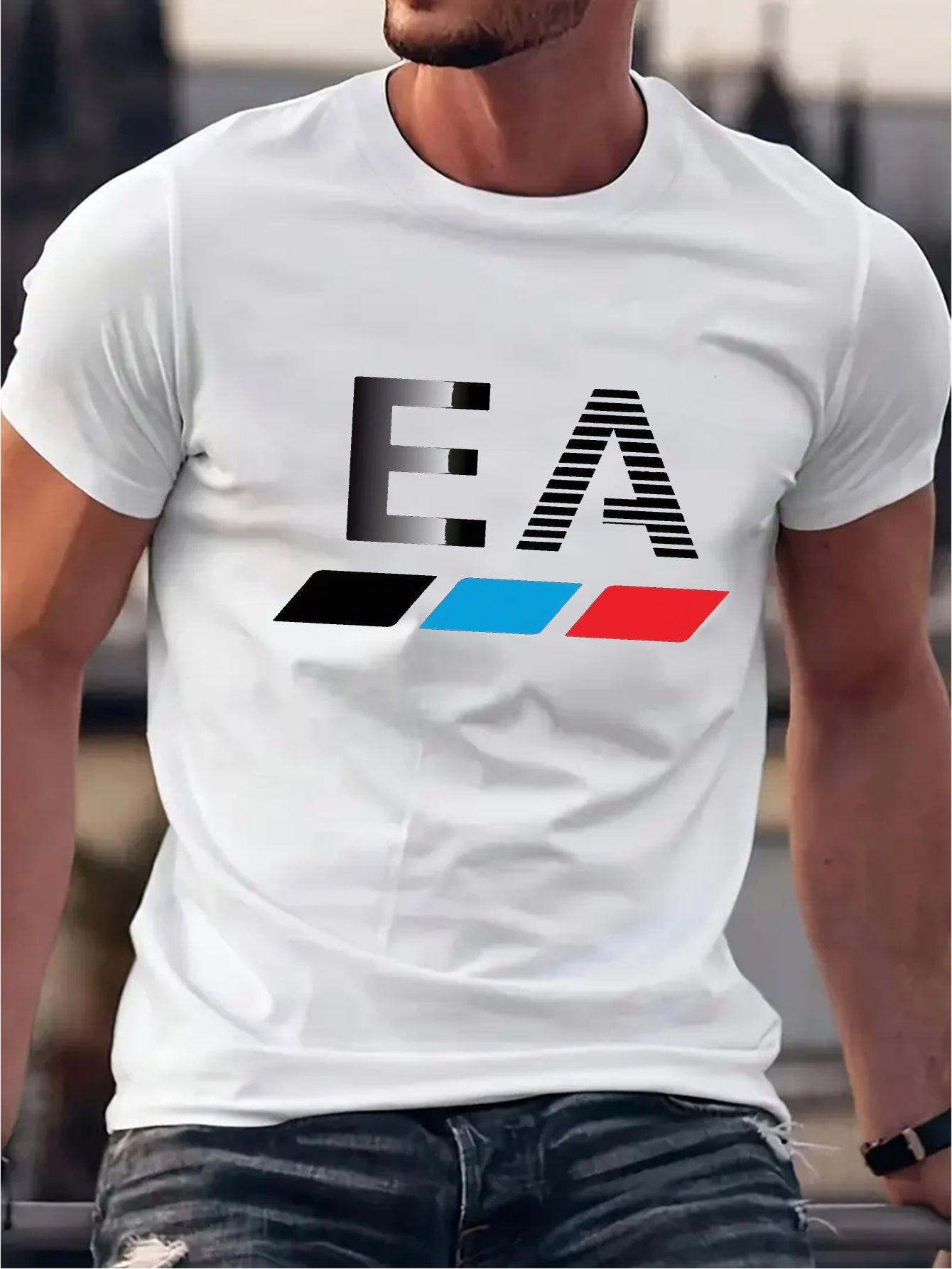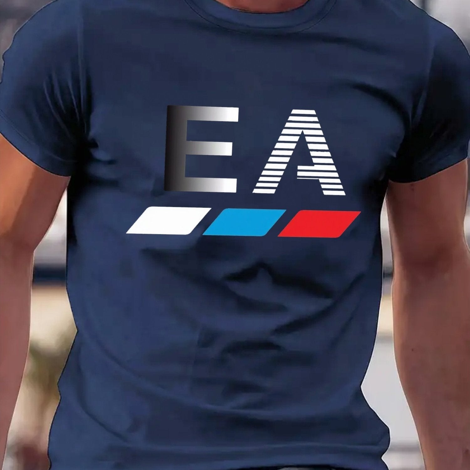 T-shirt in da uomo 413, stile estivo, maglietta sportiva, realizzata in tessuto a maglia micro-stretch, con stampi, taglio regolare, abbigliamento micro-stretch, camicia a righe, design casual, perfetta per l'estate.