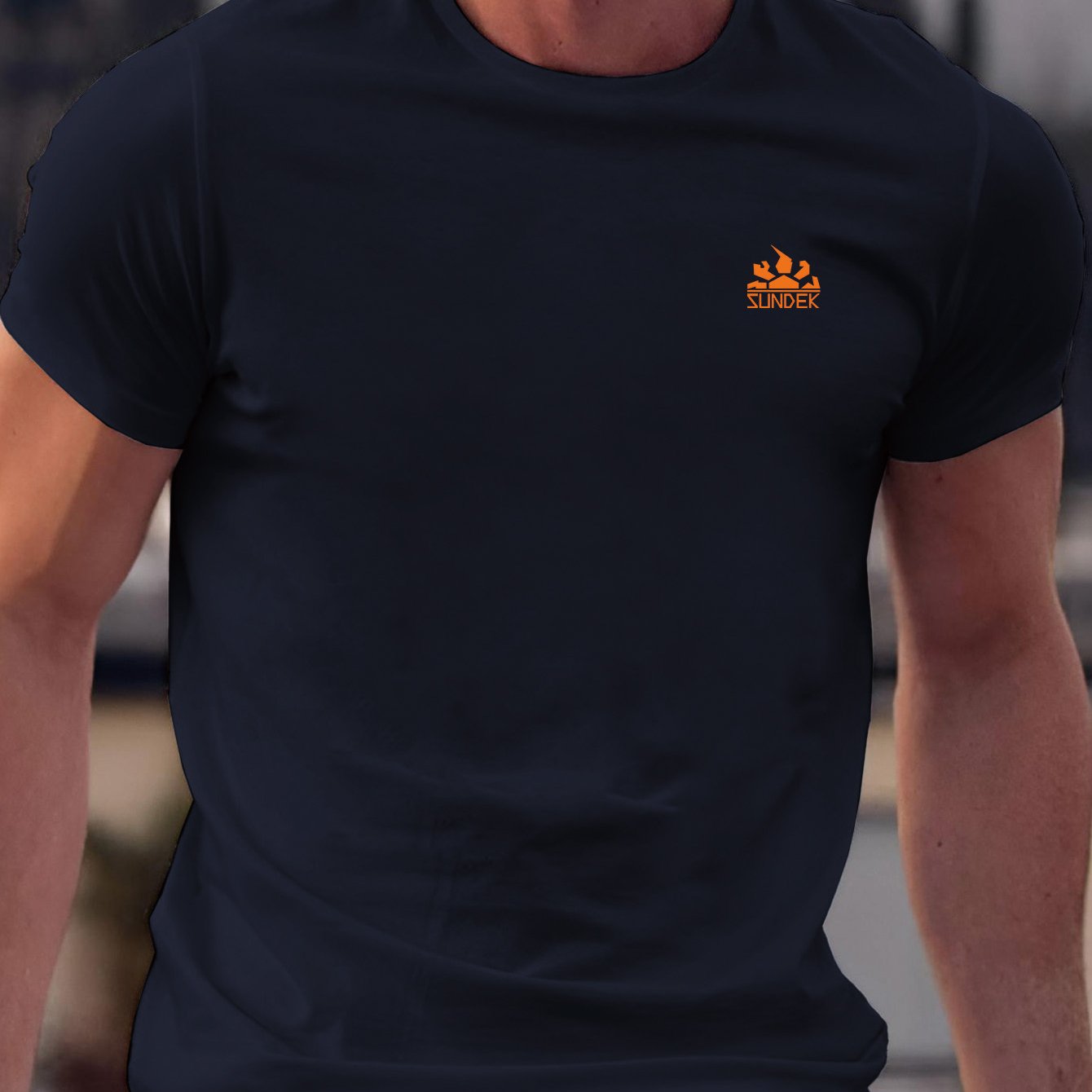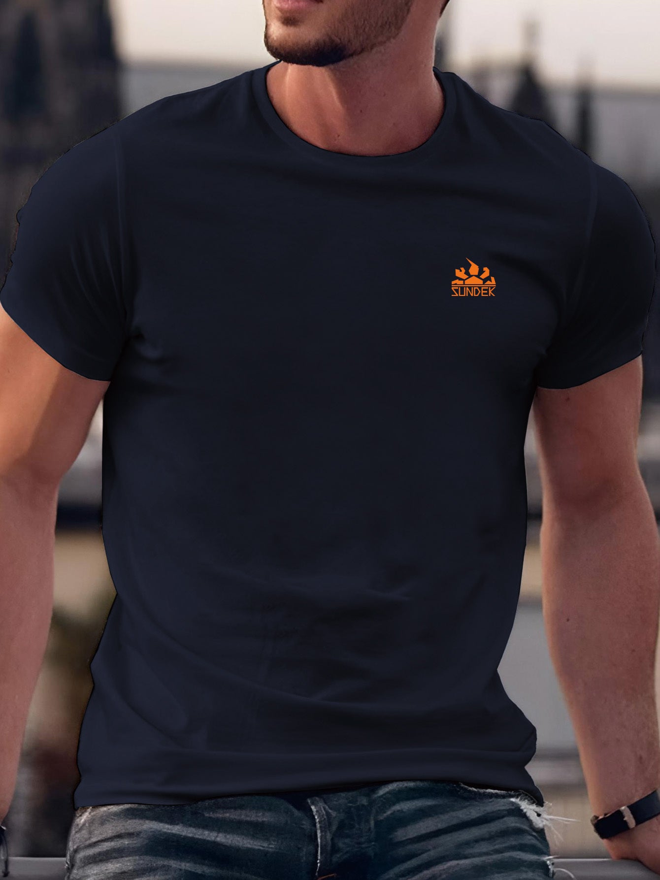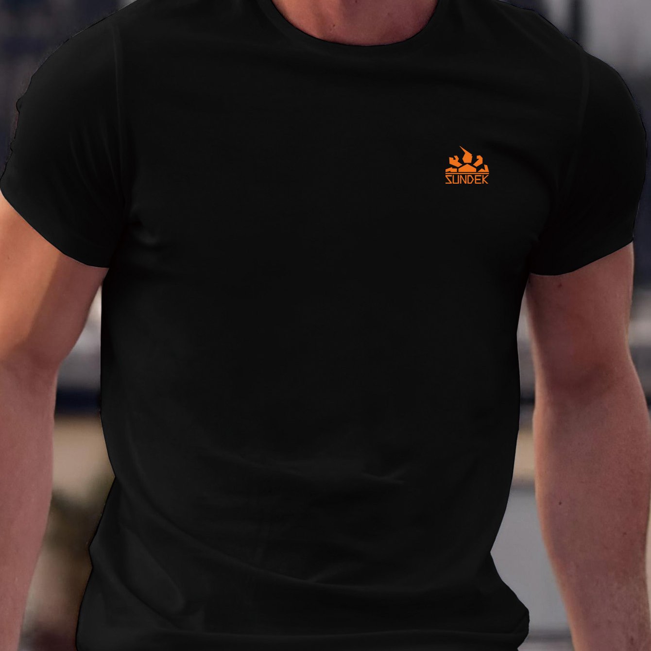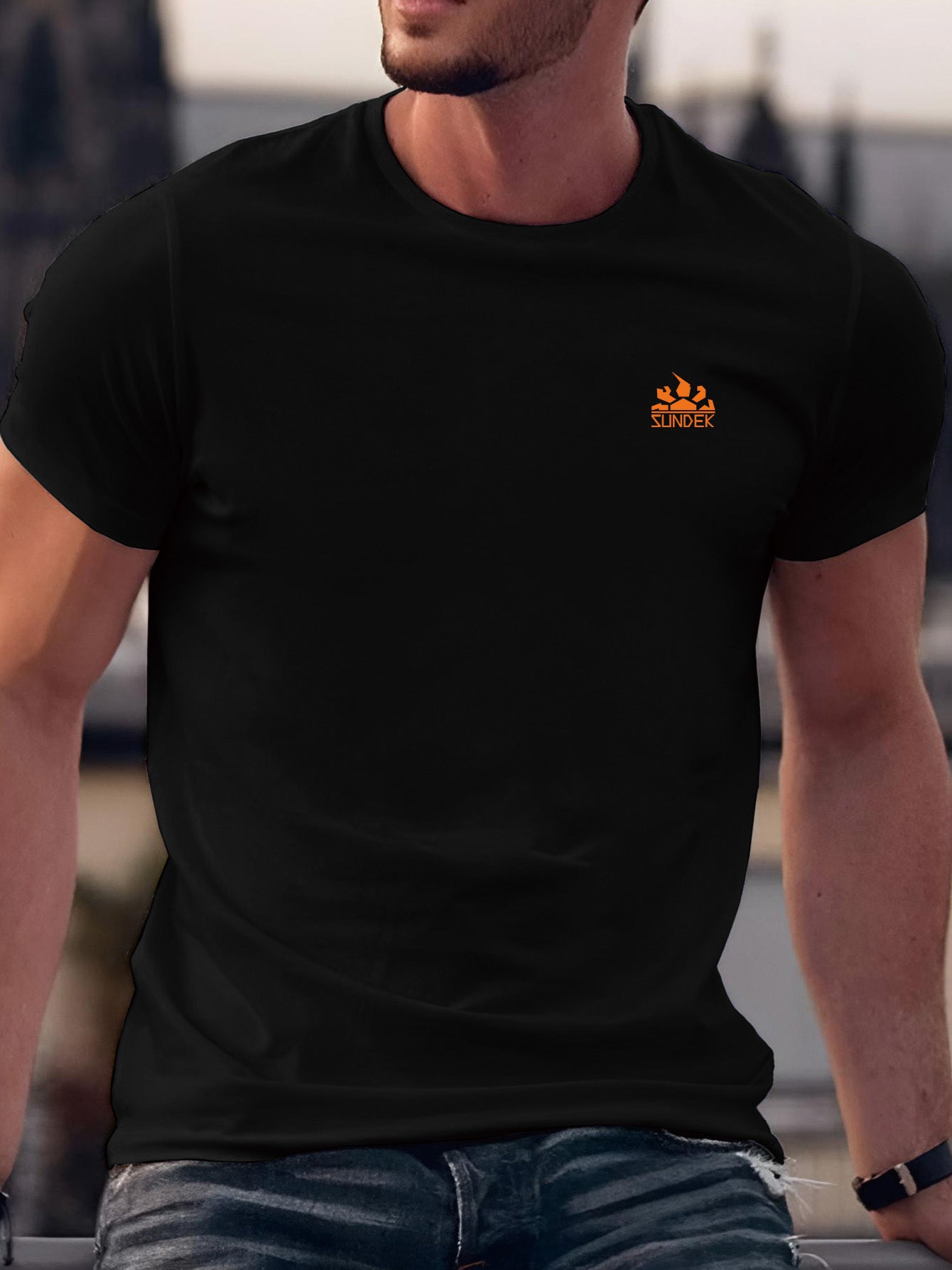 T-shirt nera con stampa del logo "SUNDEK" per uomo - Casual, a maglia larga, maniche corte, scollo rotondo, tessuto in poliestere resistente, per tutti i giorni | Abbigliamento casual alla moda | Abbigliamento confortevole